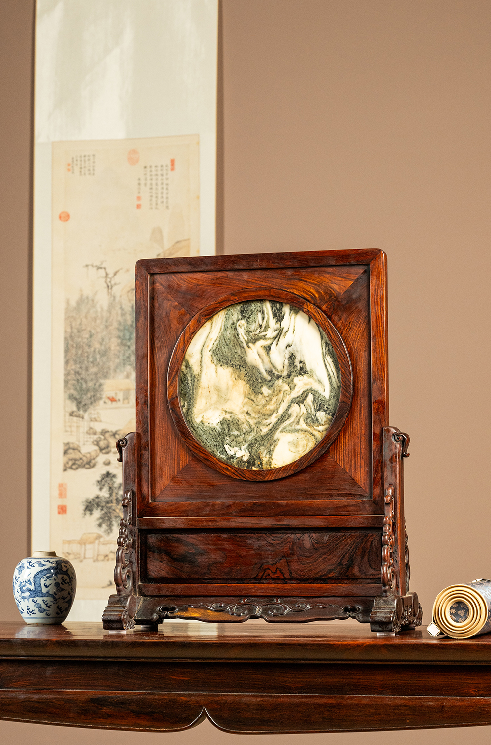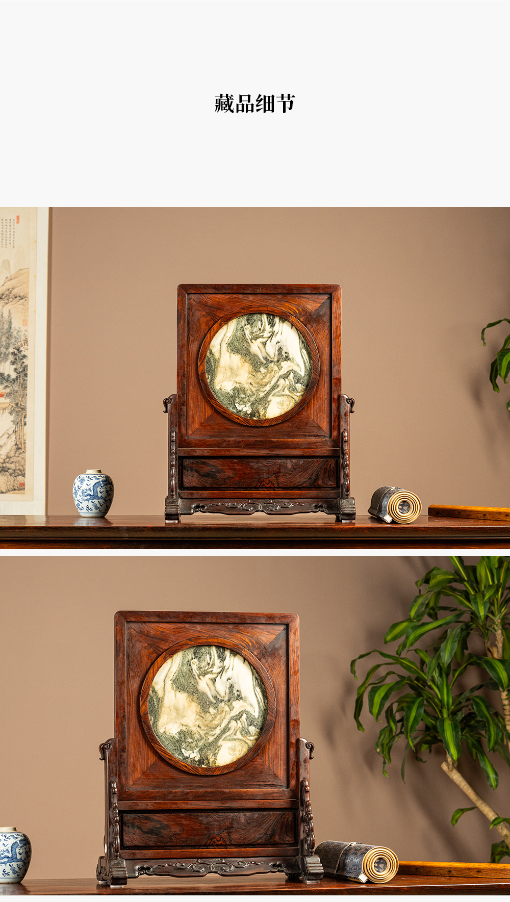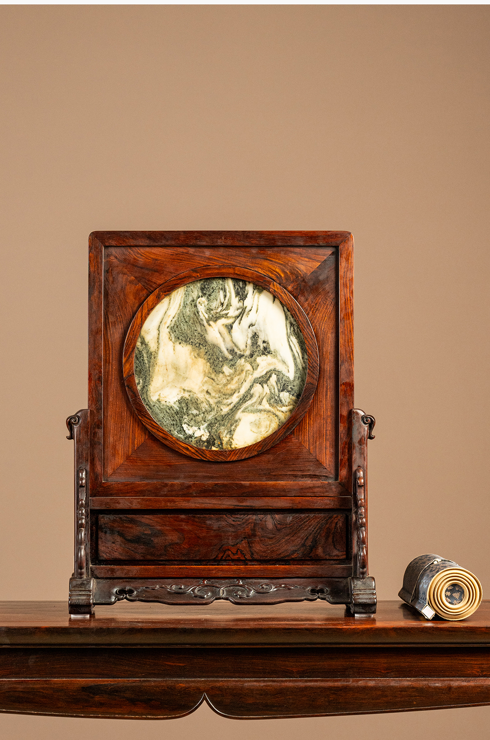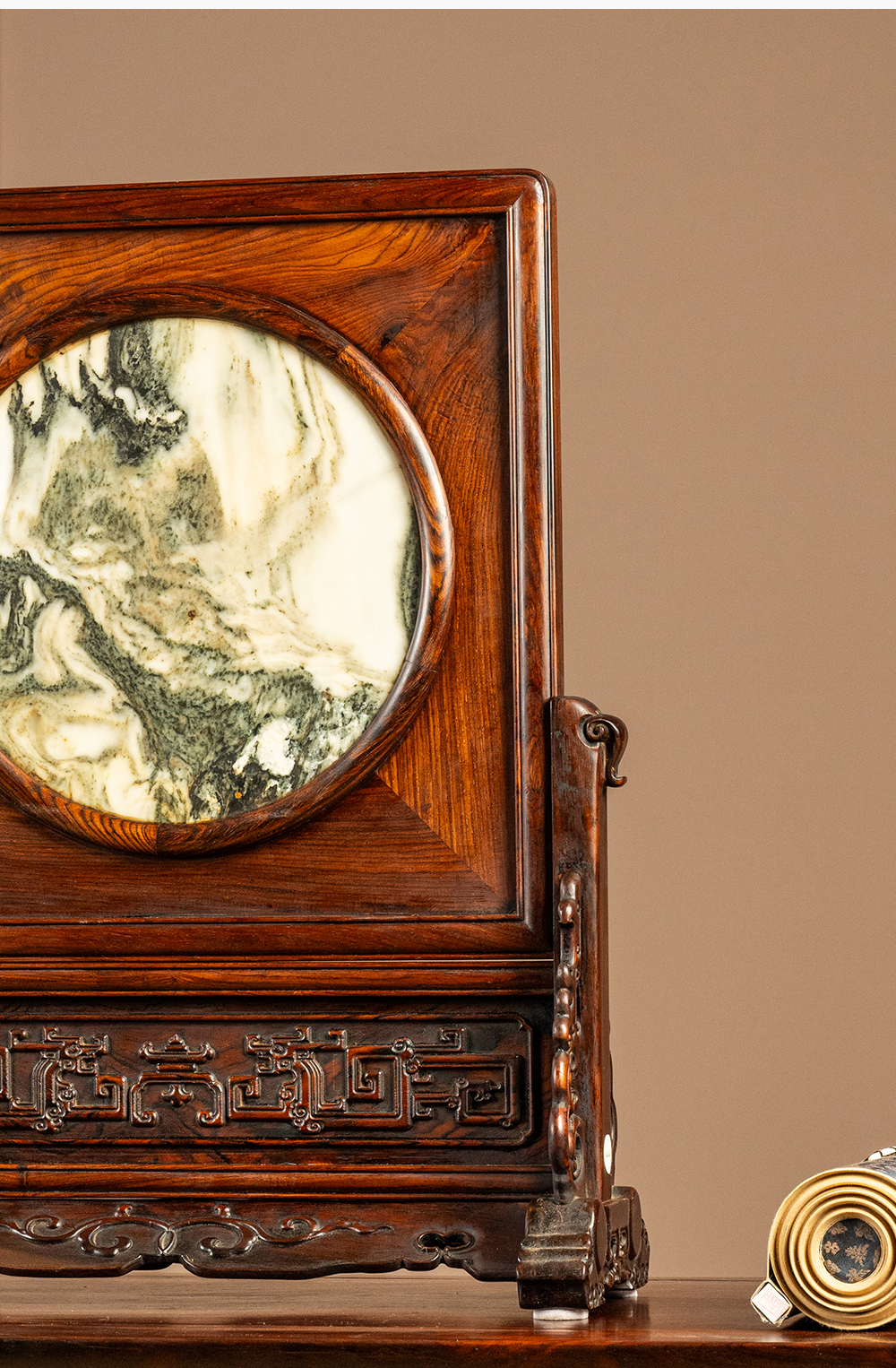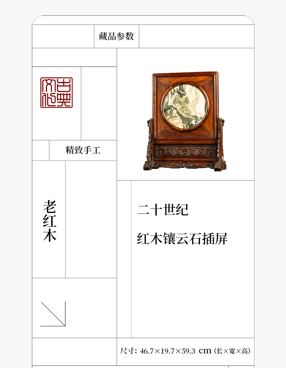 二十世纪 红木镶云石插屏