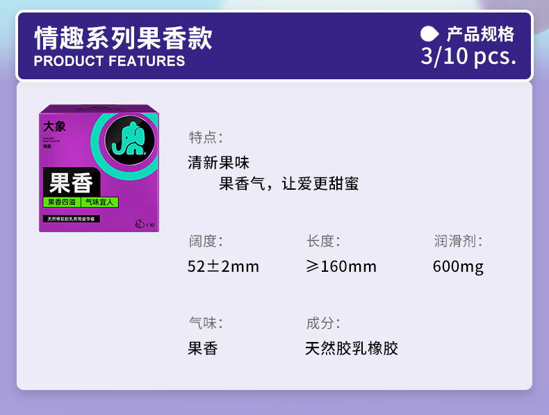 【年末亏本清仓】大象情趣系列果香款安全避孕套 10只装(升级款)