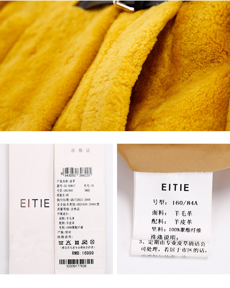 EITIE爱特爱季新款女装羊皮毛一体保暖修身皮草外套大衣5293917