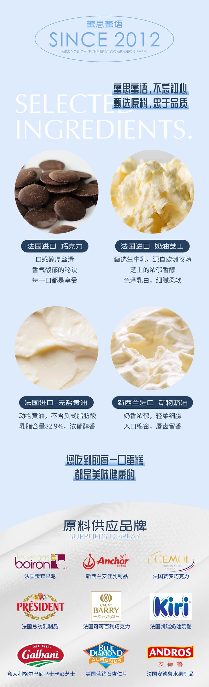 保鲜条件: 0-4℃冷藏,收到蛋糕后2小时内食用最佳.