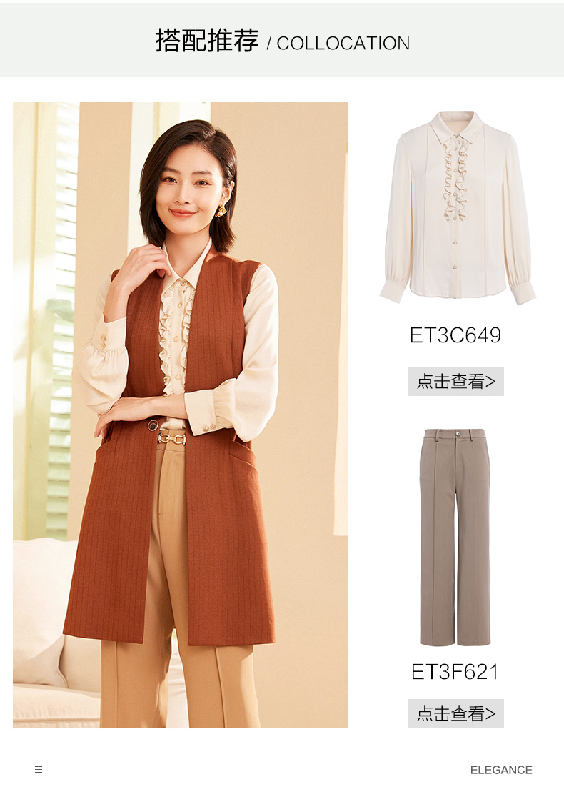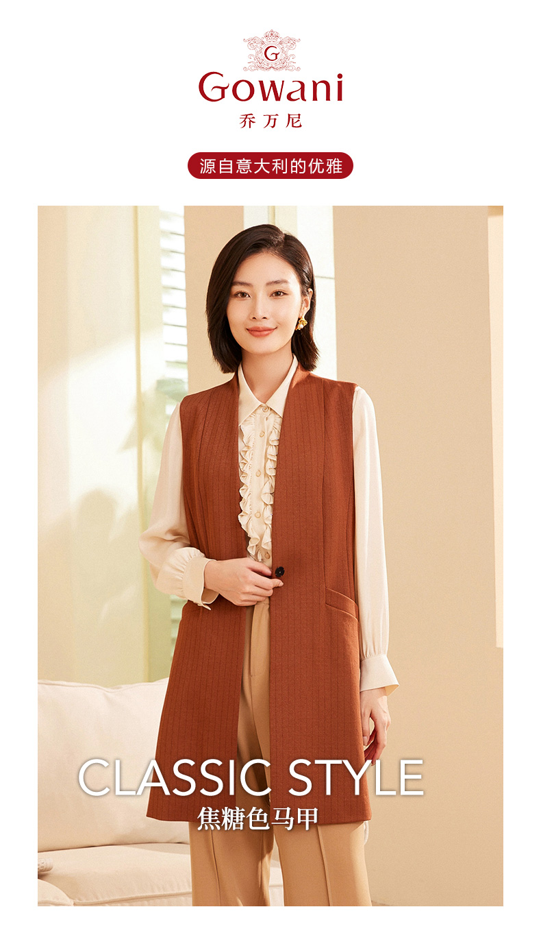 乔万尼秋新品中长款马甲收腰设计显瘦ET3H631