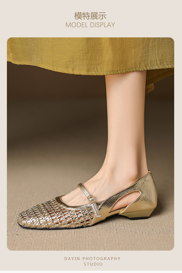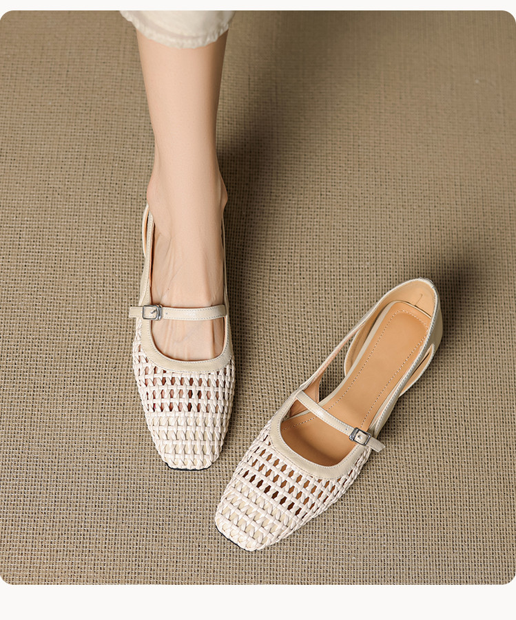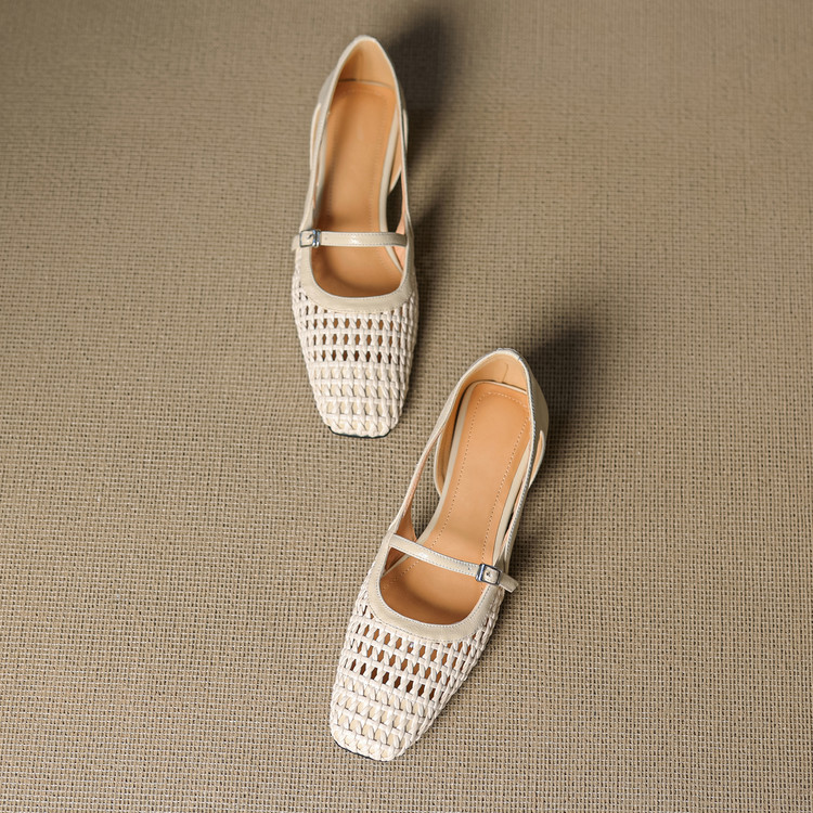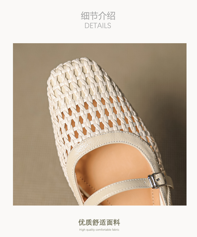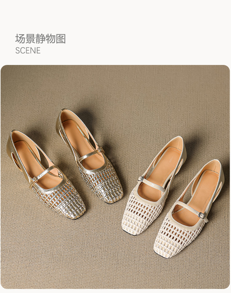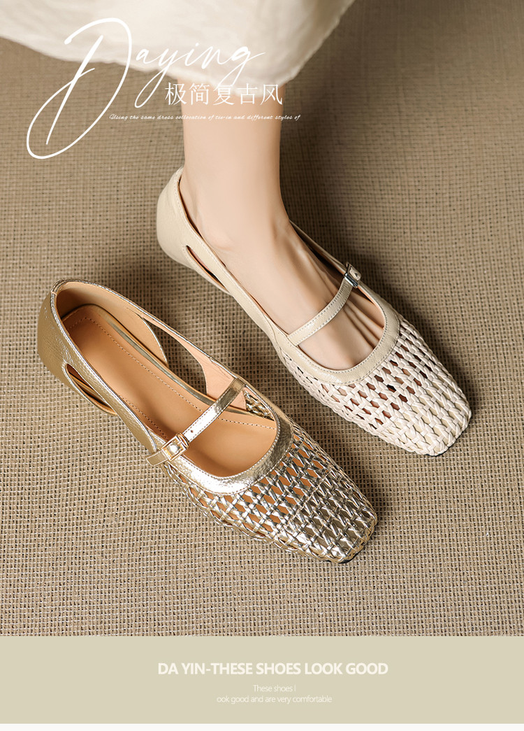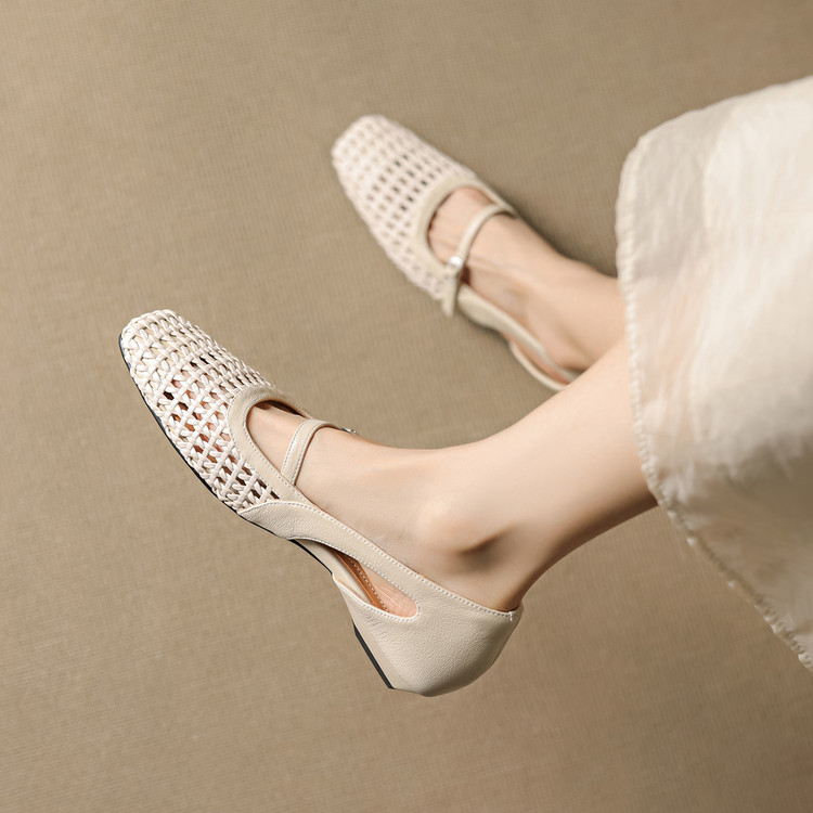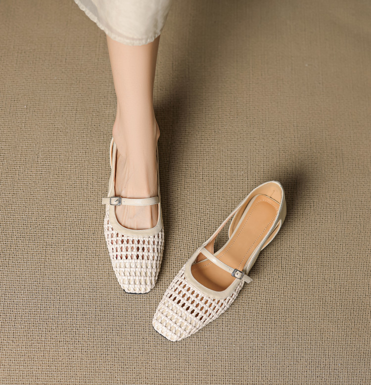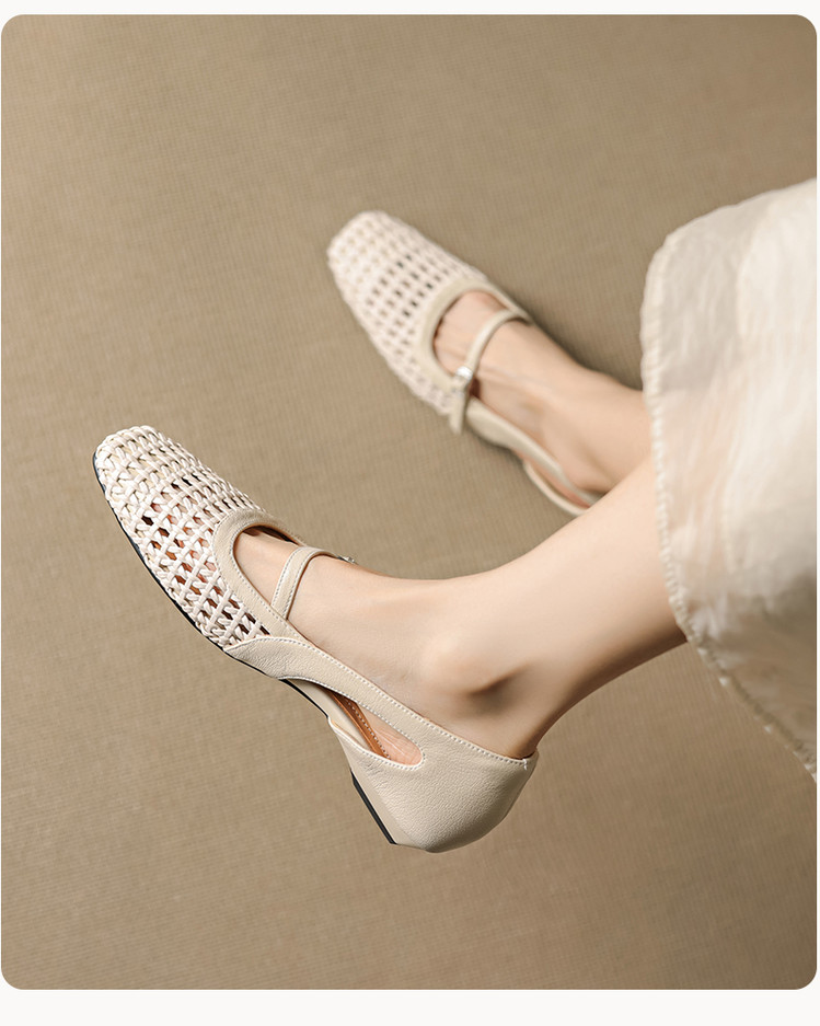 【预售5天】法式赫本风方头粗跟编织镂空包头凉鞋浅口单鞋女夏新款玛丽珍SY& G1438