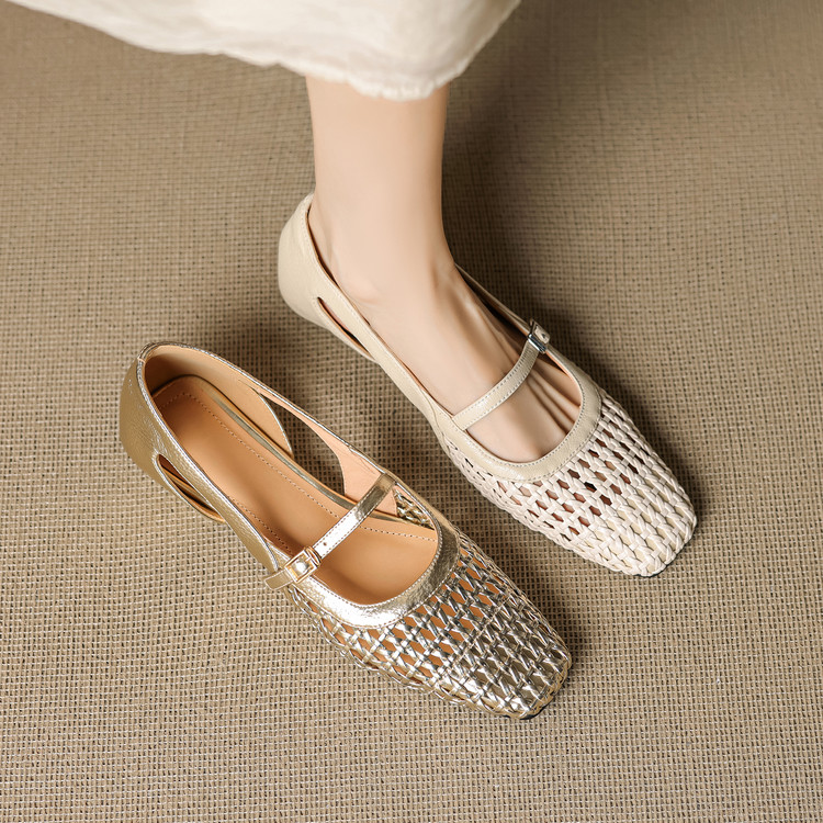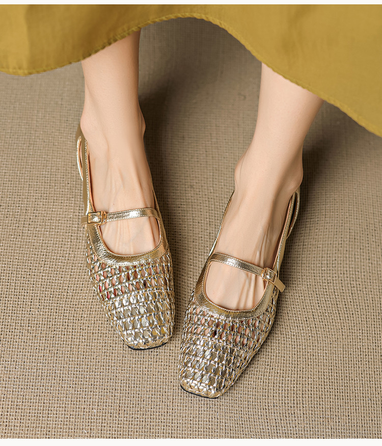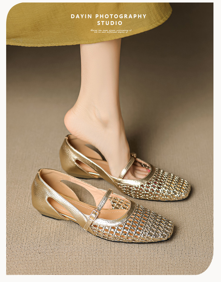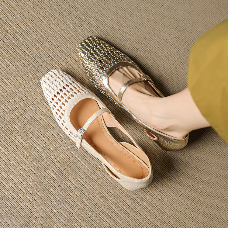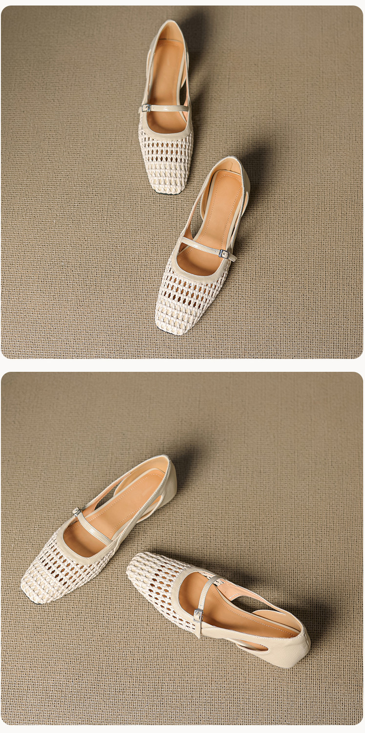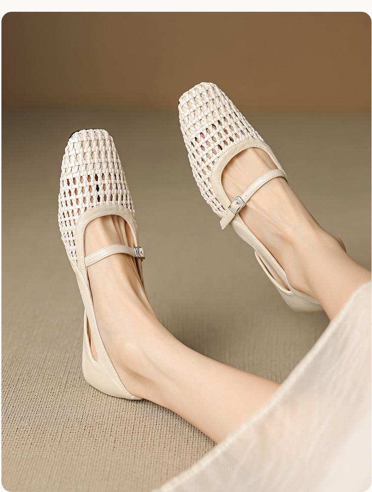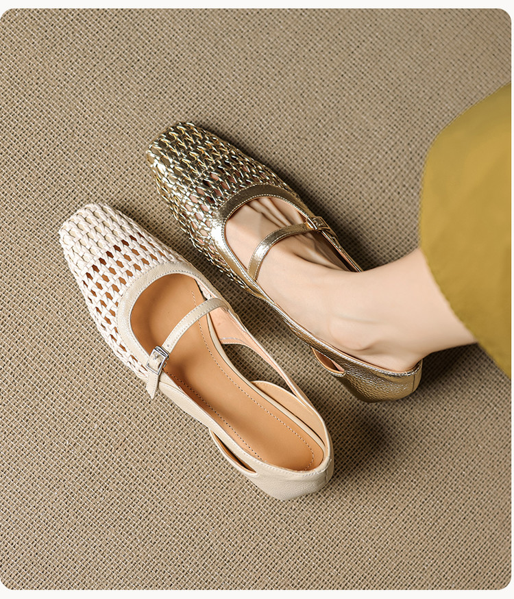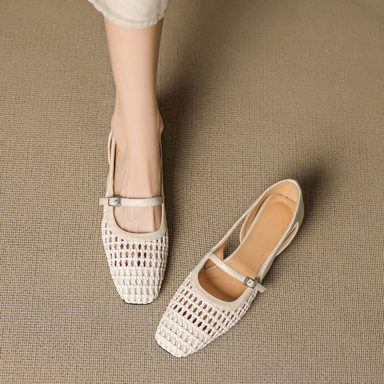 【预售5天】法式赫本风方头粗跟编织镂空包头凉鞋浅口单鞋女夏新款玛丽珍SY& G1438