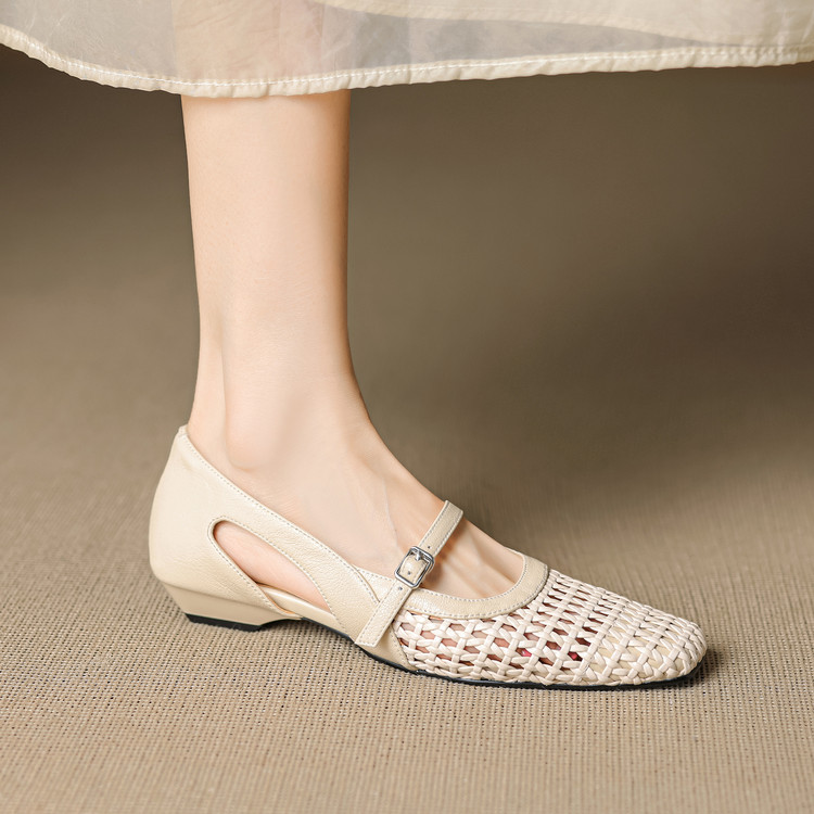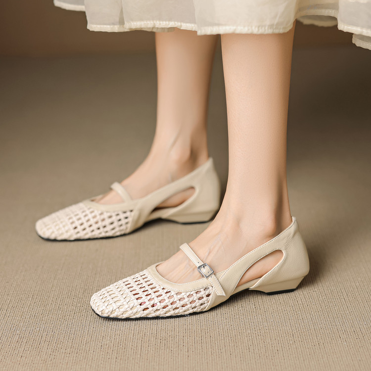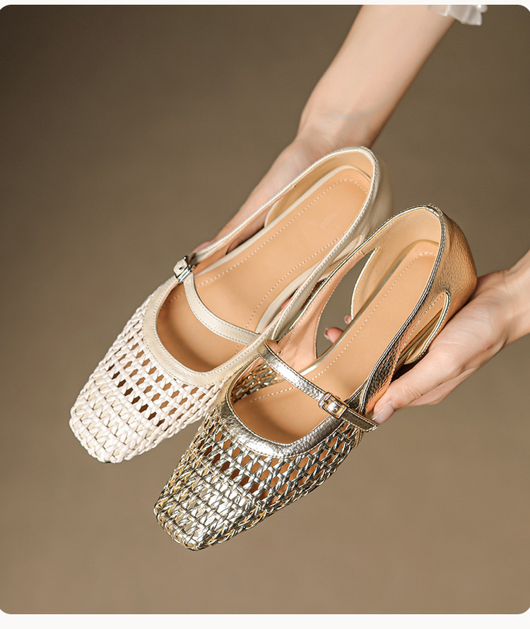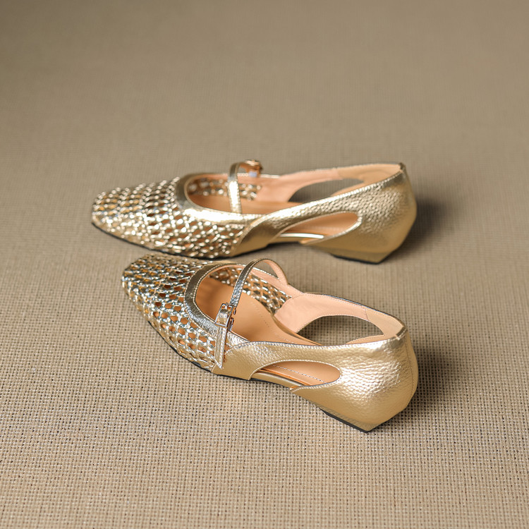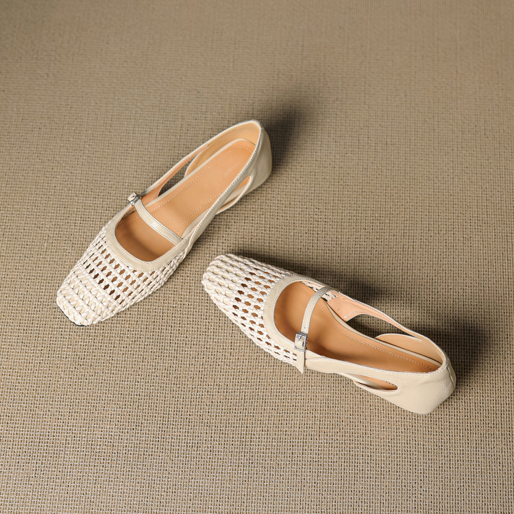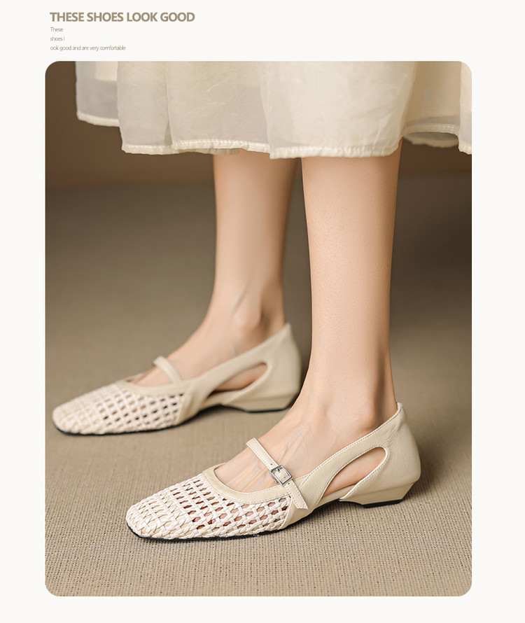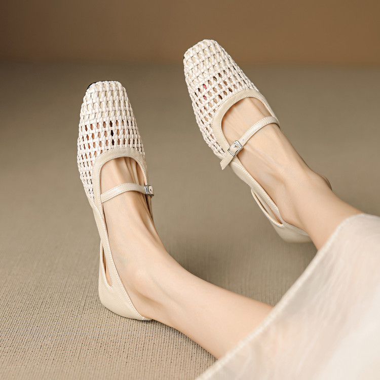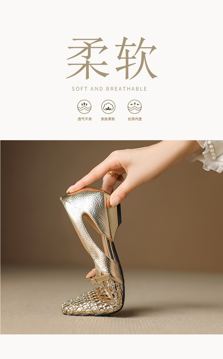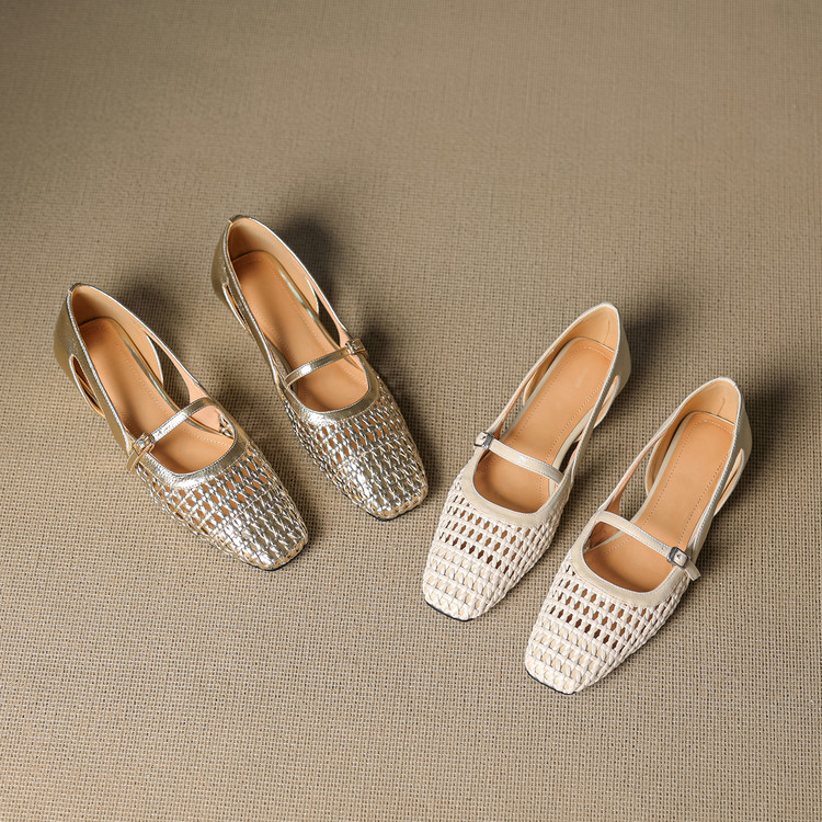 【预售5天】法式赫本风方头粗跟编织镂空包头凉鞋浅口单鞋女夏新款玛丽珍SY& G1438