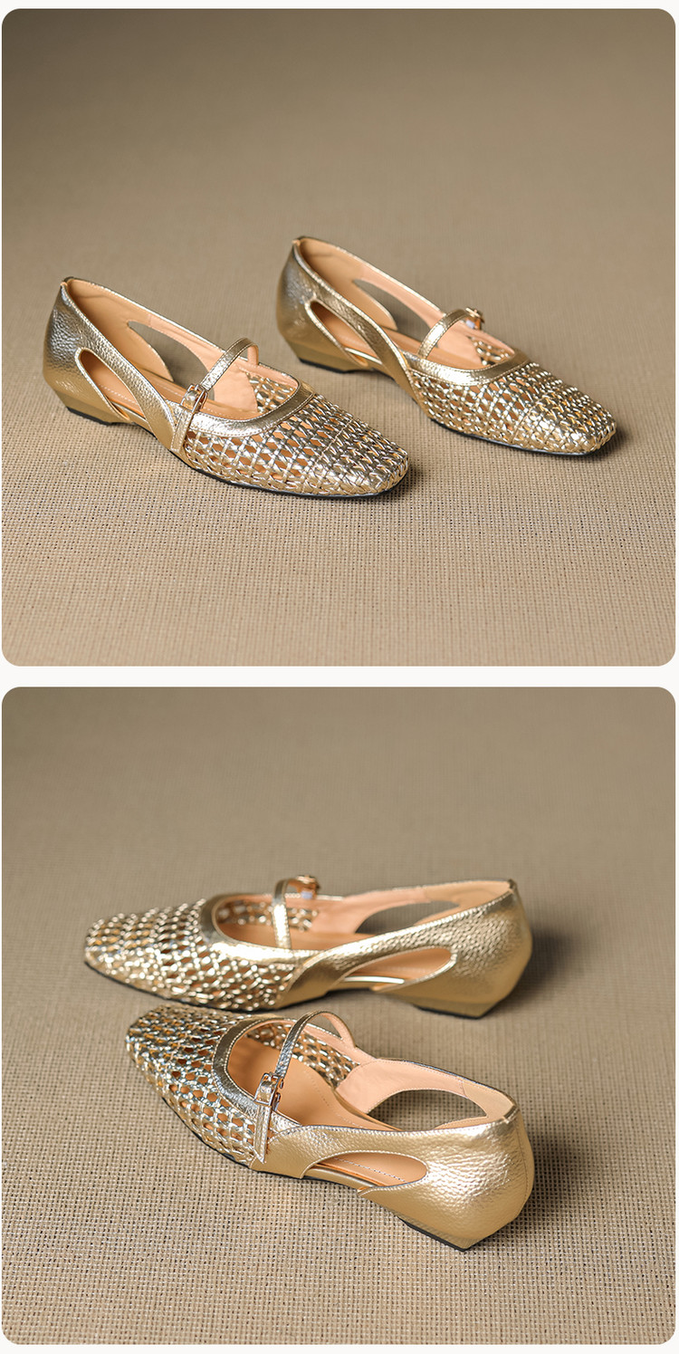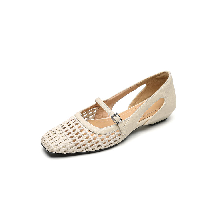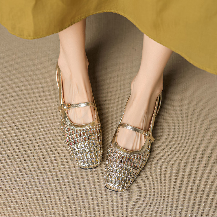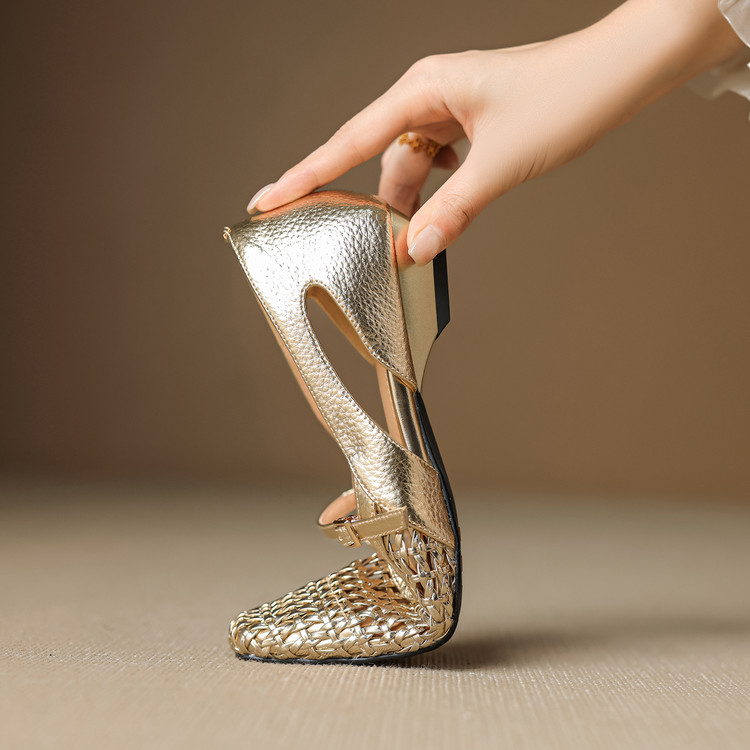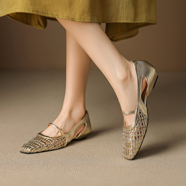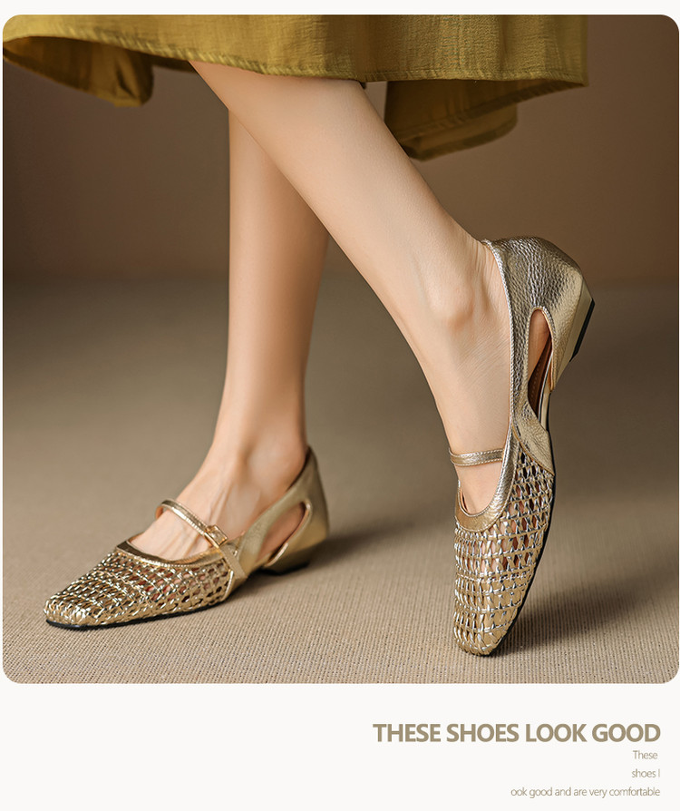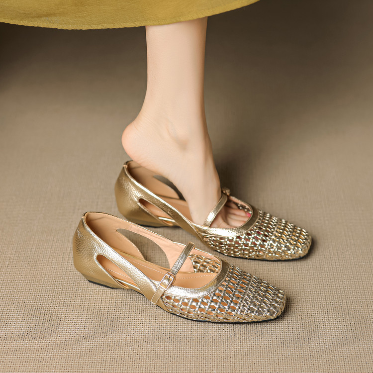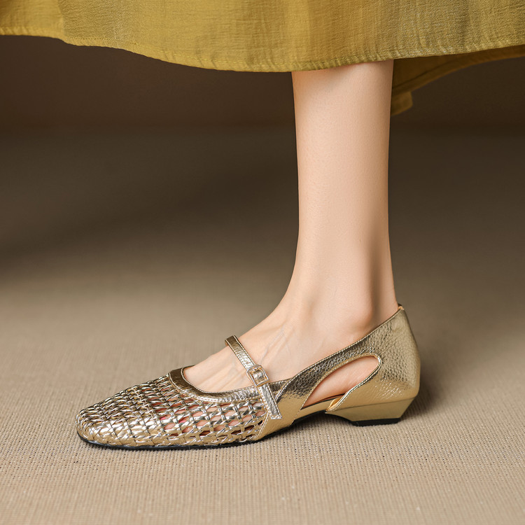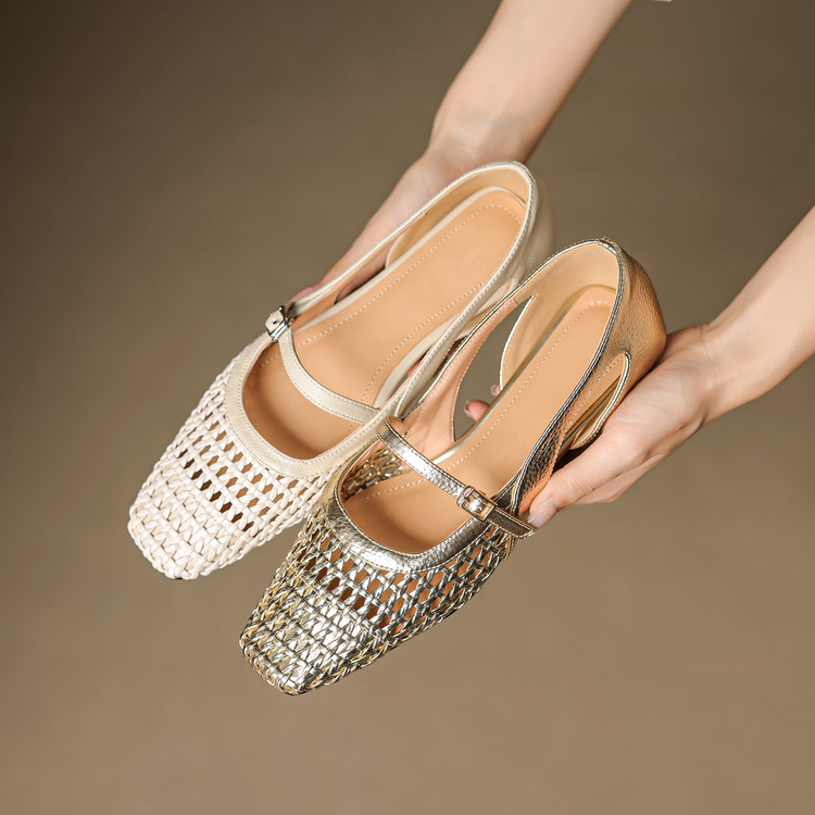 【预售5天】法式赫本风方头粗跟编织镂空包头凉鞋浅口单鞋女夏新款玛丽珍SY& G1438