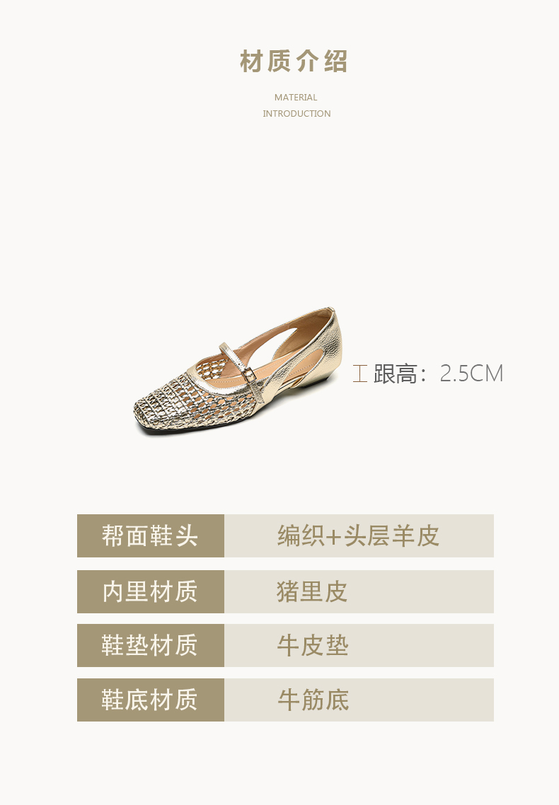 【鞋面材质】PU编织+头层羊皮