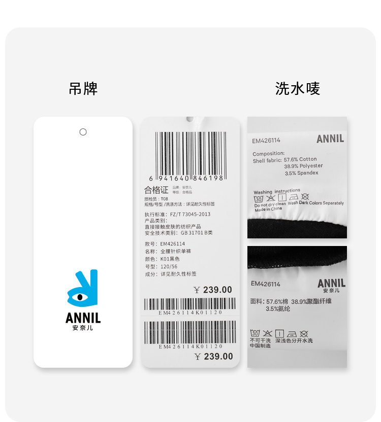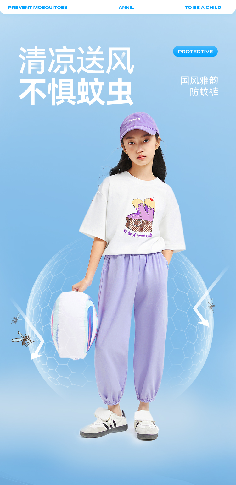 男女童弹力国风清凉防蚊裤单裤新款安奈儿童装EM426114