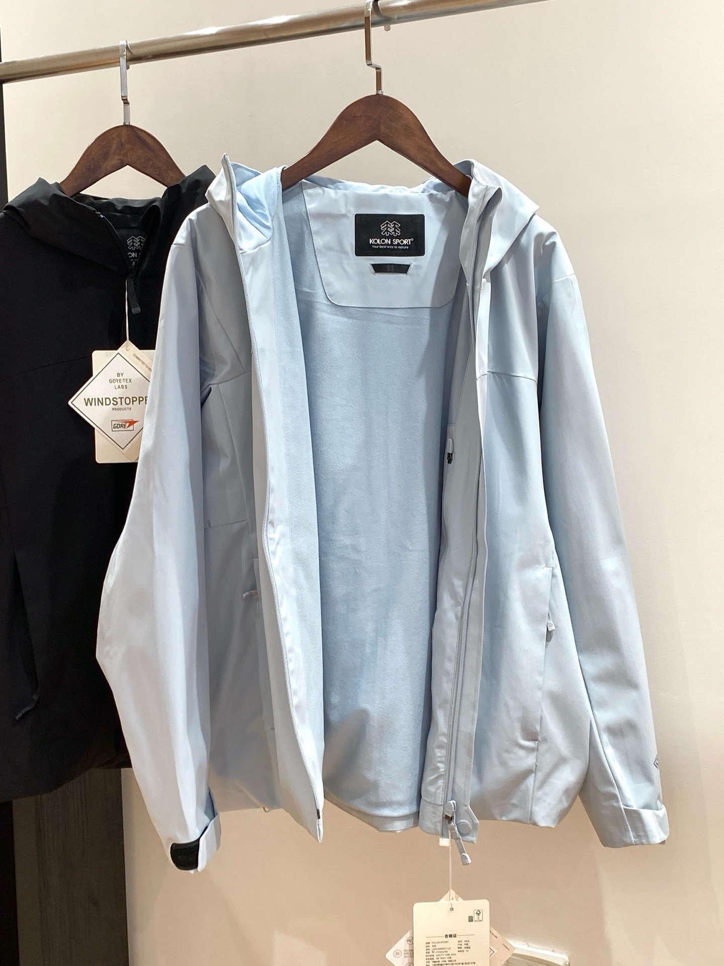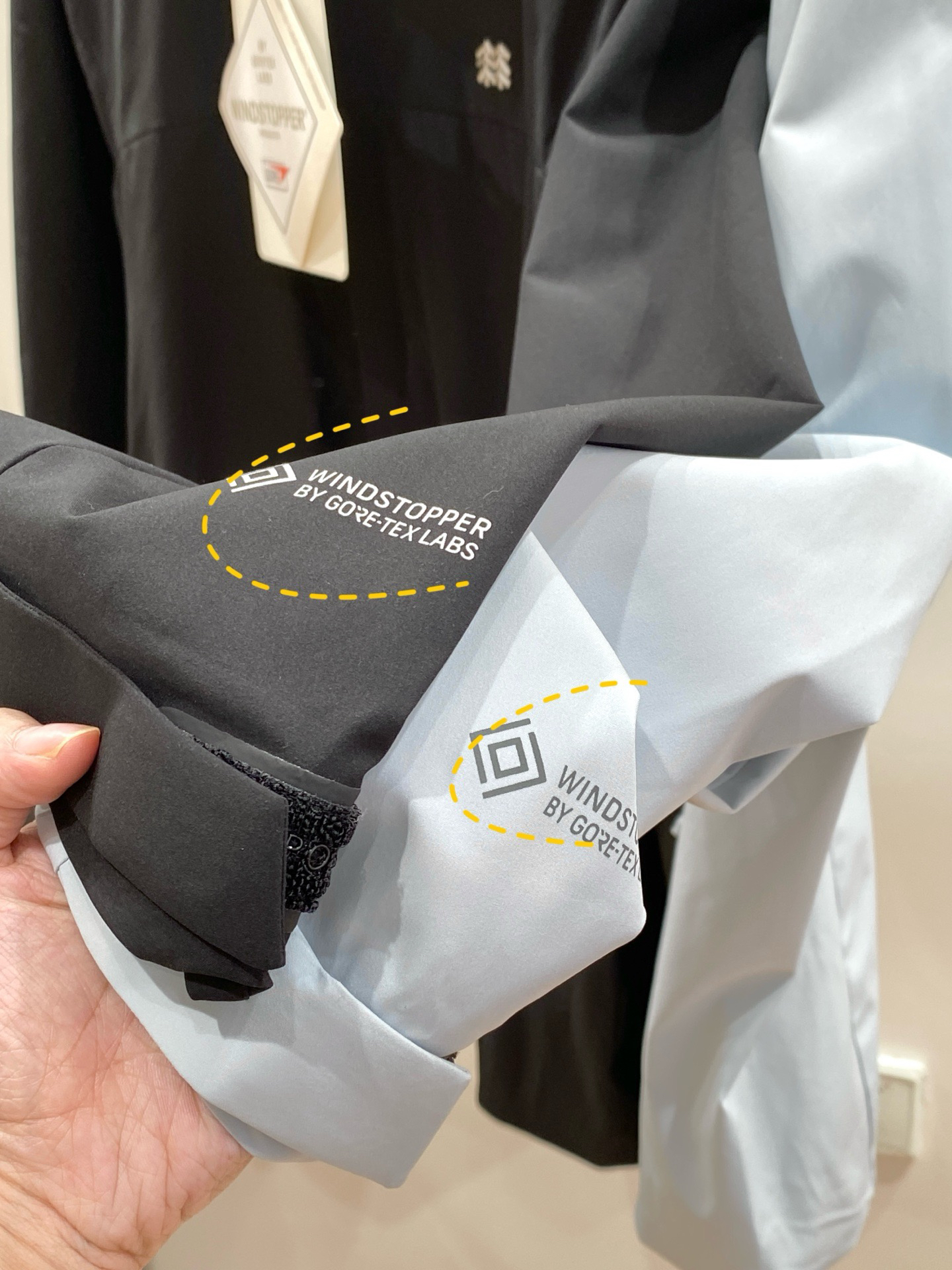 完整的冲锋衣面料复合结构,薄膜被很好地保护,因而坚固耐用!⚠️注意,内层是细腻的抓绒材质,贴身穿软乎乎的不扎人,中午升温或者走得热了也不会闷汗,透气性比我之前买的冲锋衣好太多