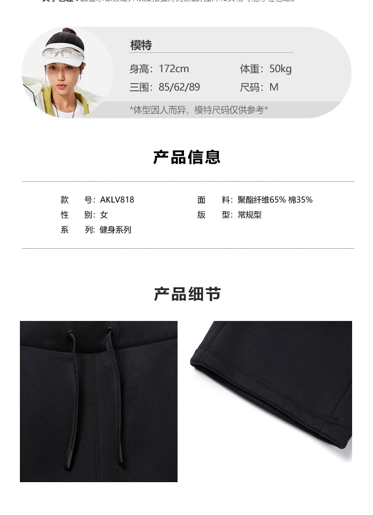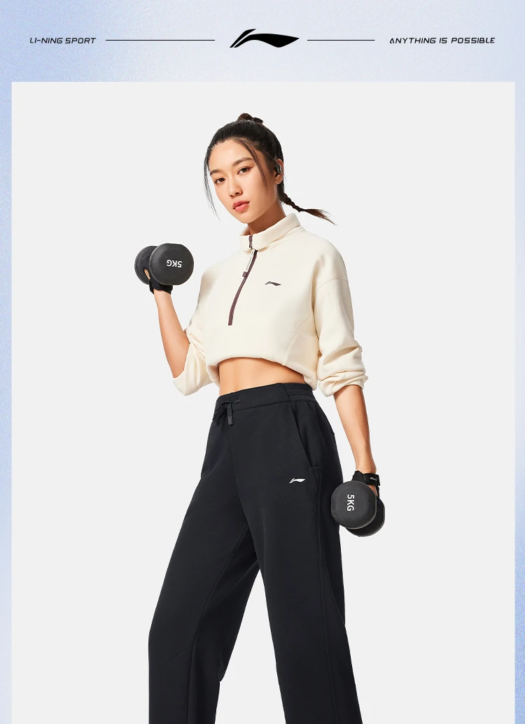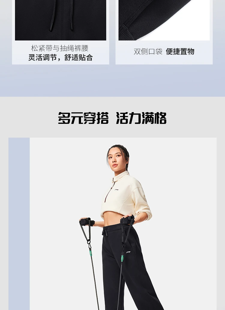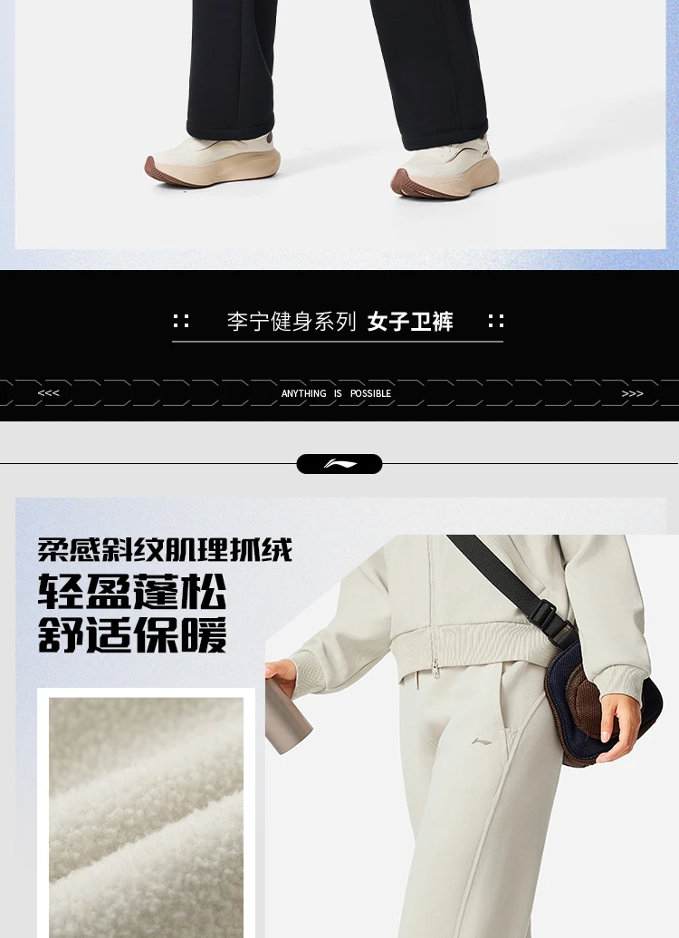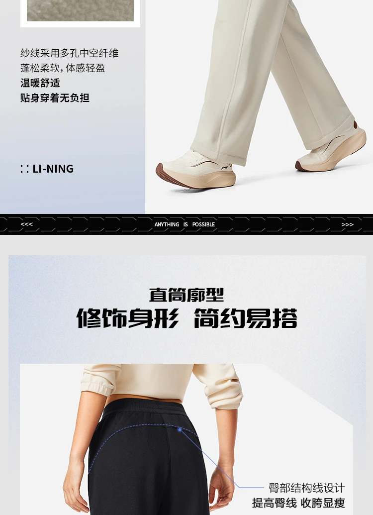 李宁女子直筒加绒保暖锁温干爽卫裤AKLV818