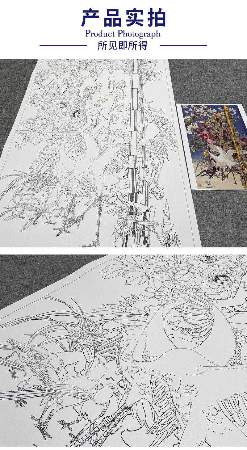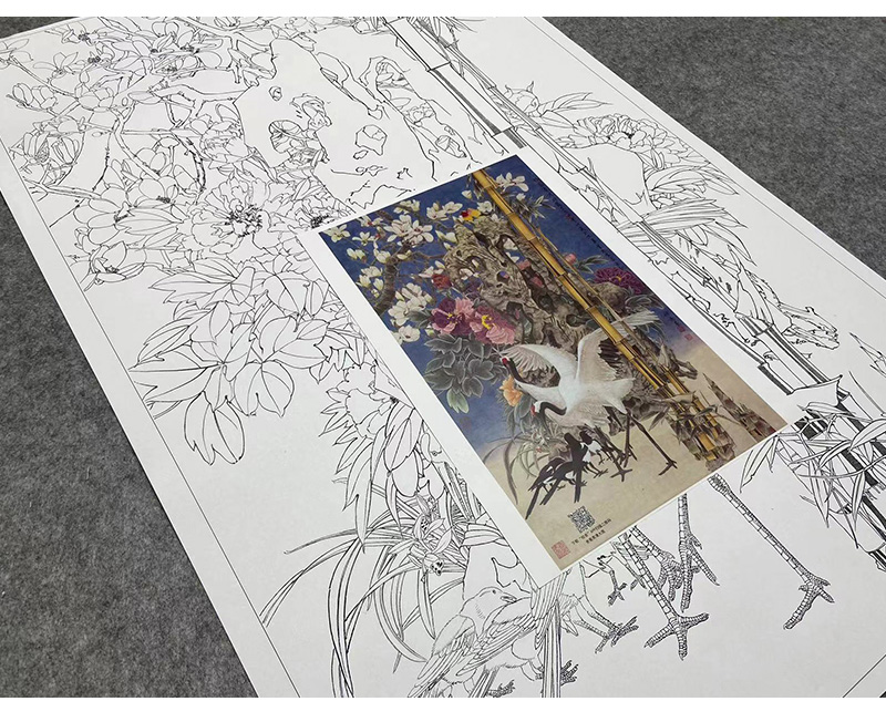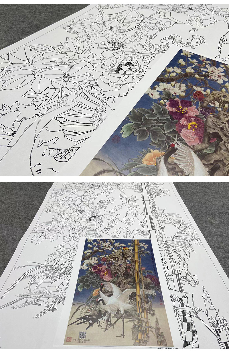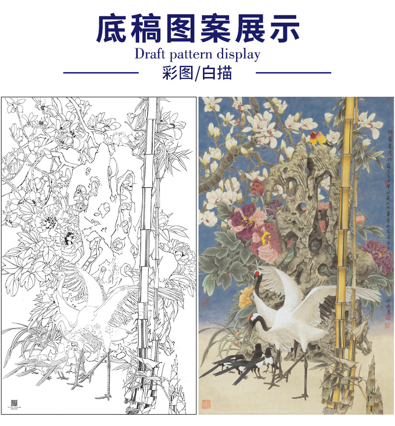 【大彩图】窦绅卿工笔画白描底稿《雅园春芳好》仙鹤临摹勾线花鸟线稿HN13