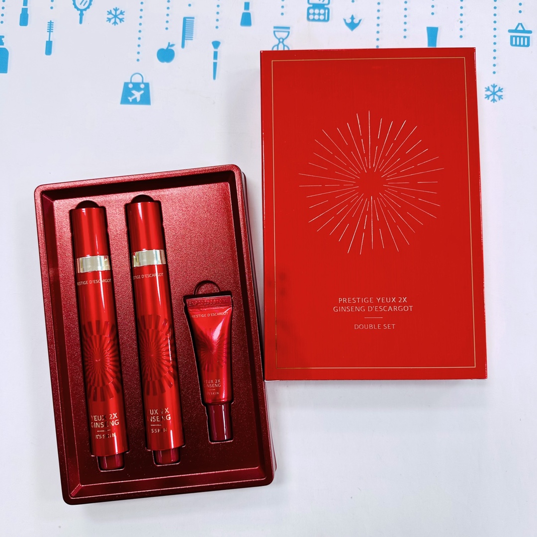 👑伊思2X晶鑽红参蜗牛焕新滚珠眼霜套装 👍针对各类眼周问题💯,矩阵抗老,涂抹式线雕眼霜💥。 ✅修护抗老,✅焕亮眼周,✅提拉紧致,✅抚眼周纹。 🙌复配多重抚纹成分,360度冰感滚珠按摩头,高效吸收,营养深入眼肌✨。 【套装包括】:眼霜15ml*2+精华10ml