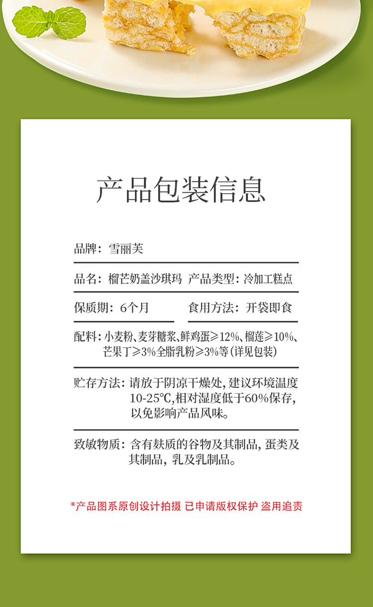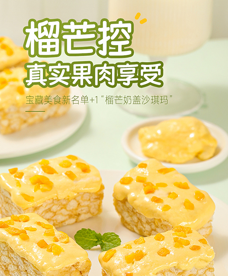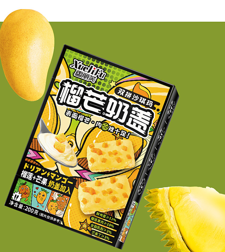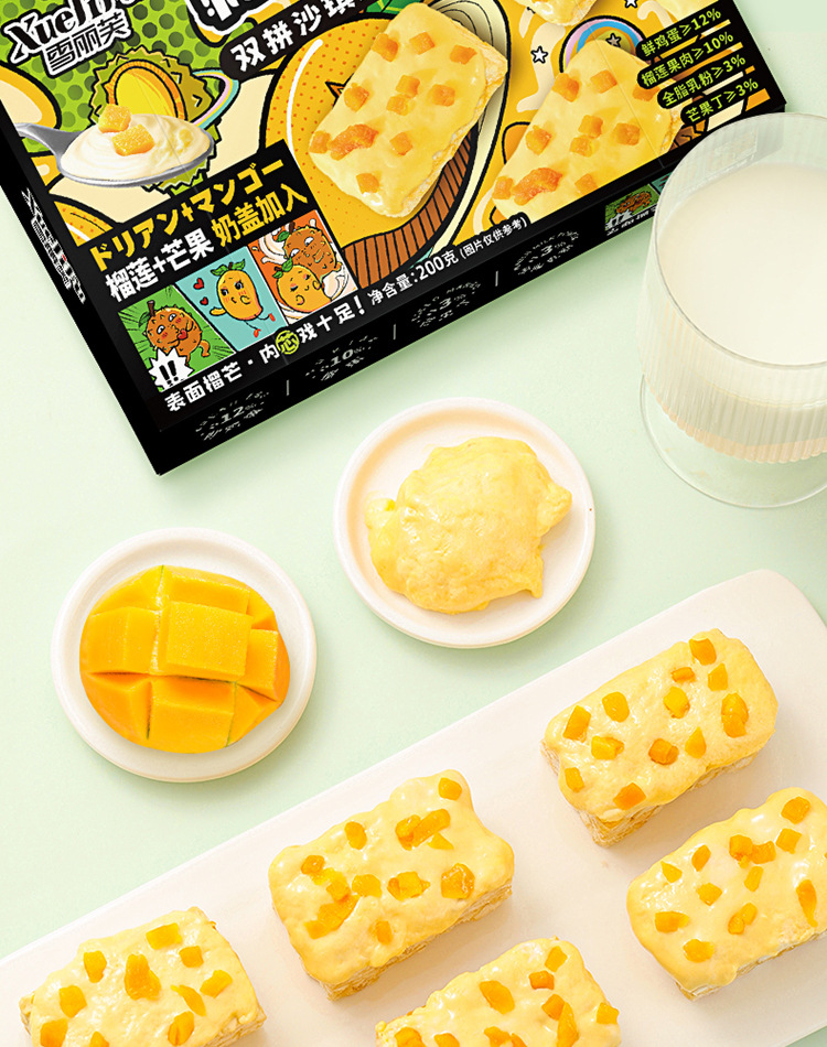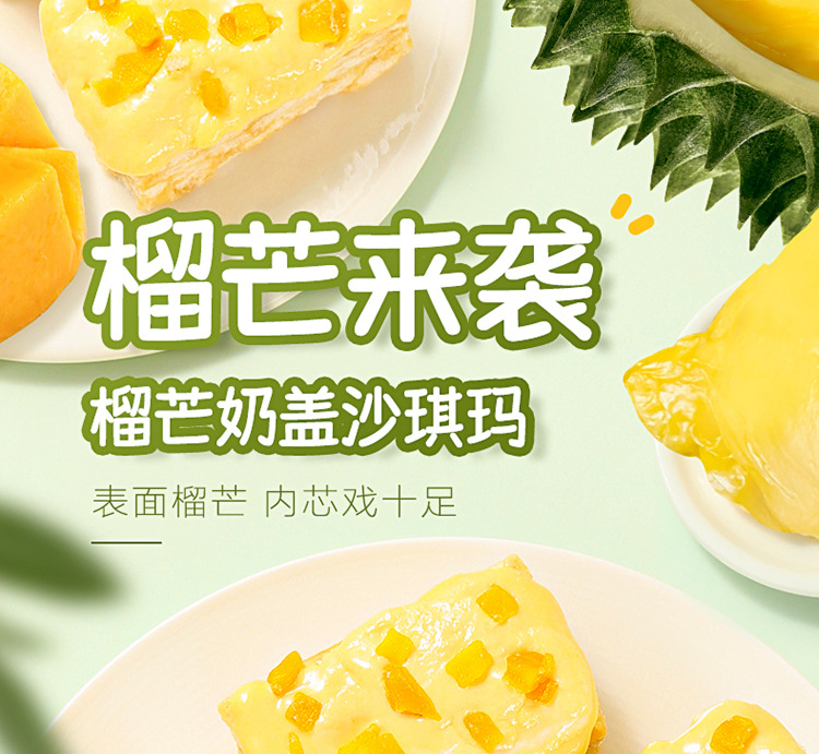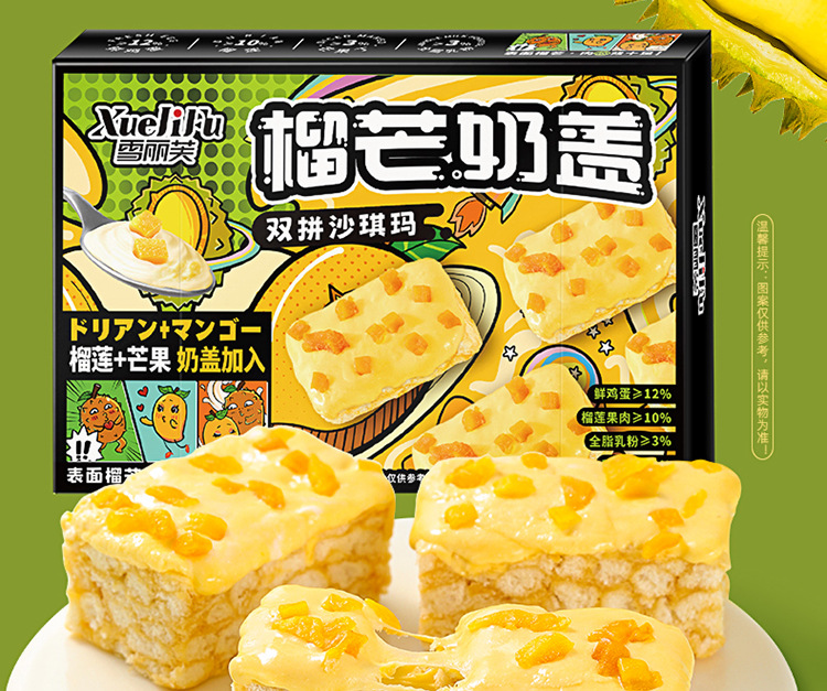 【用料超足❗解馋抗饿】榴芒奶盖沙琪玛500g/40枚榴莲+芒果双拼休闲零食品糕点心。xb