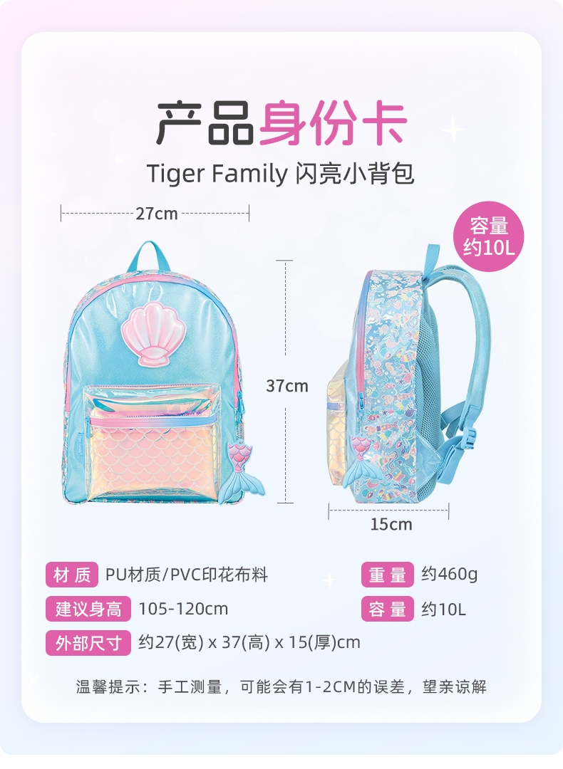 tigerfamily虎米 闪亮小背包小学生书包出行旅游小背包女双肩创意可爱儿童节礼物