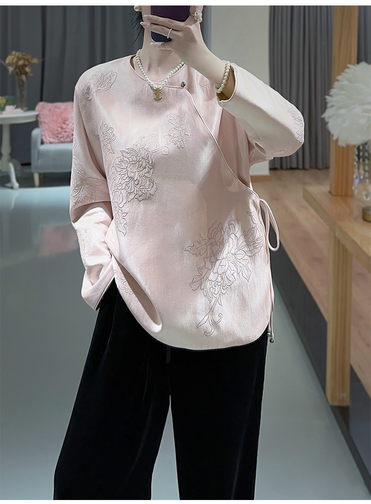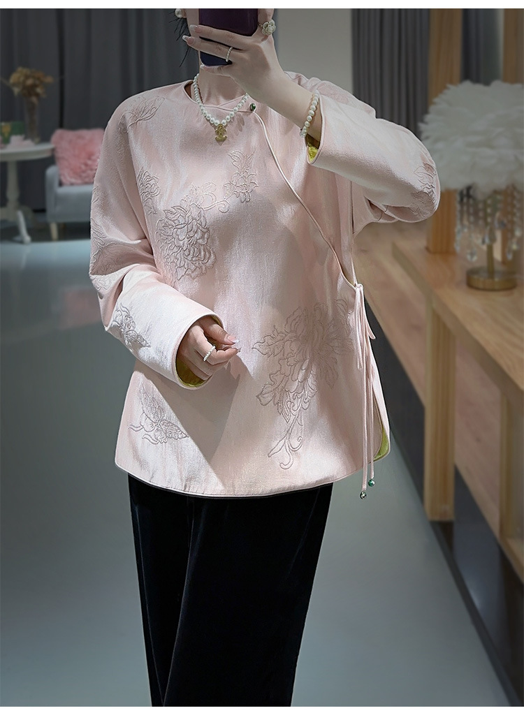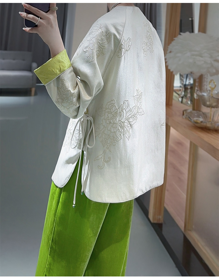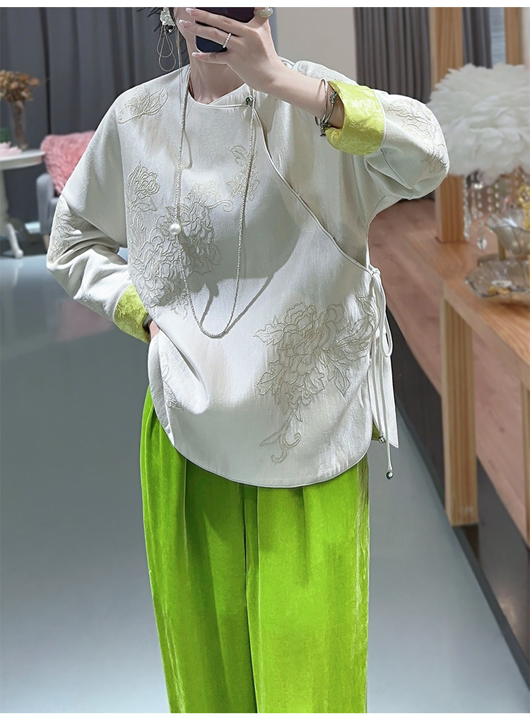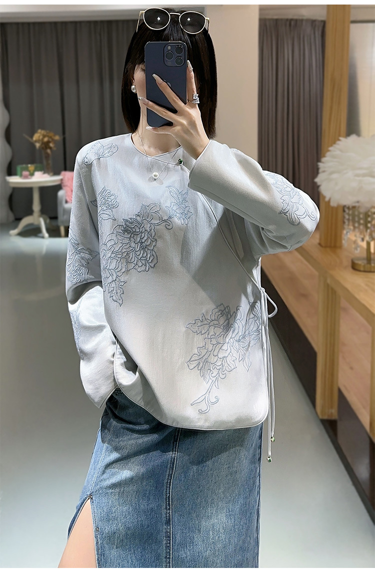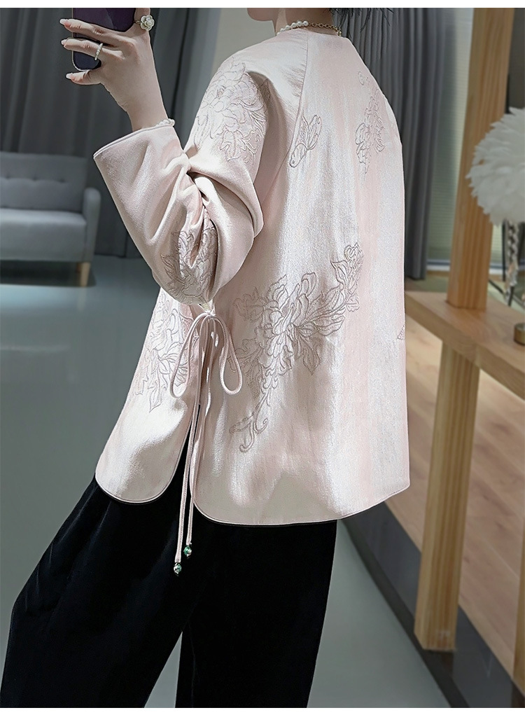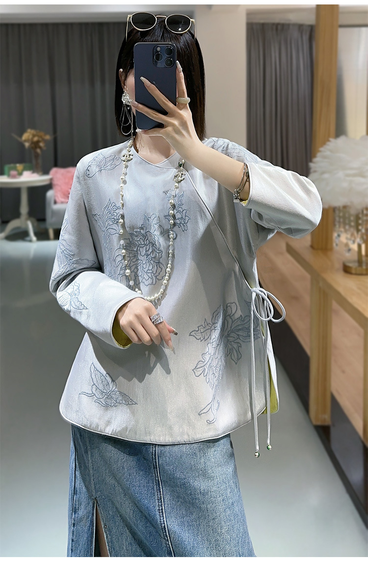 KDS中式国风刺绣上衣女2023春秋款斜襟百搭气质唐装