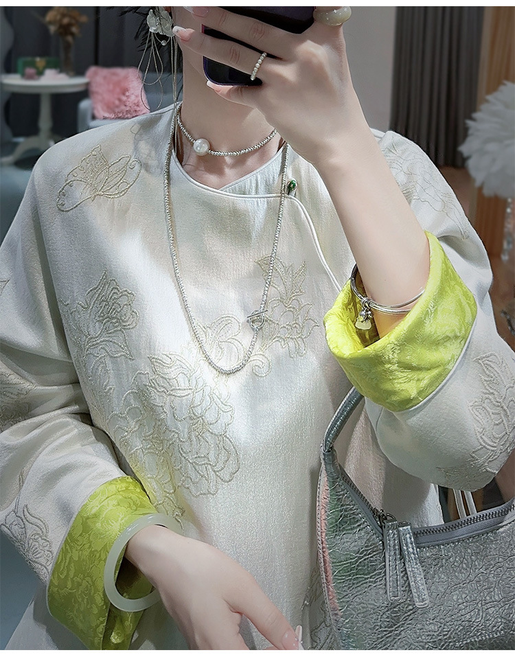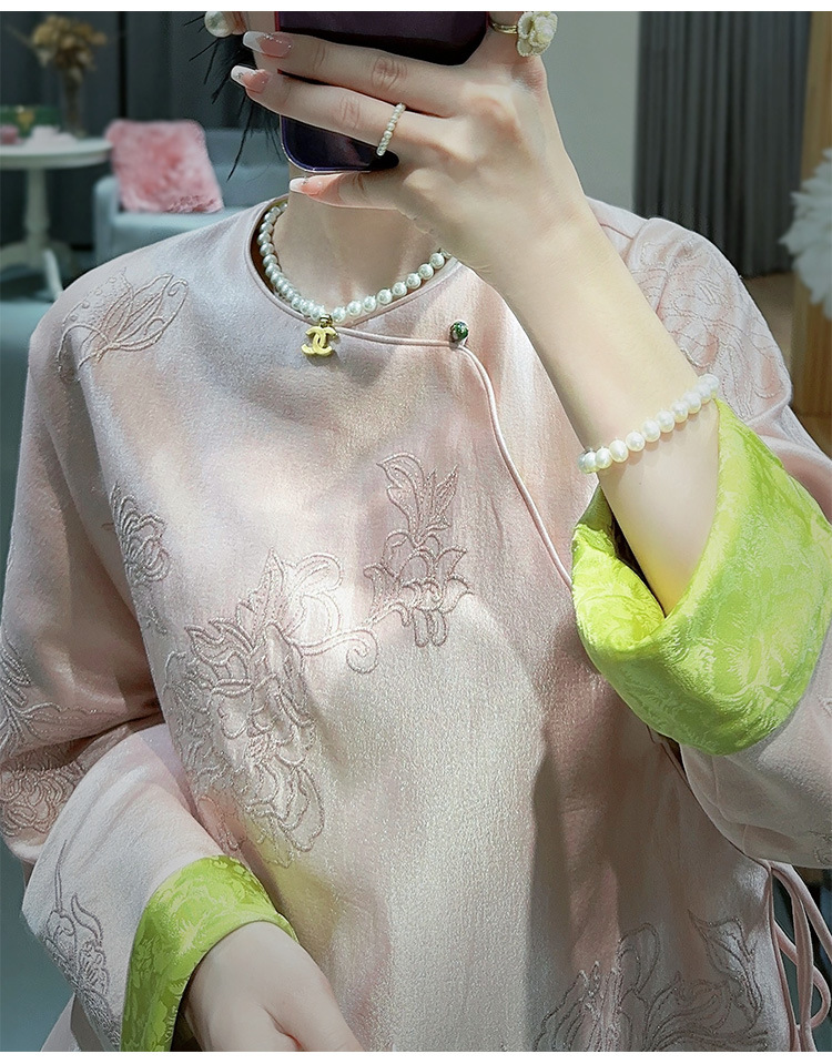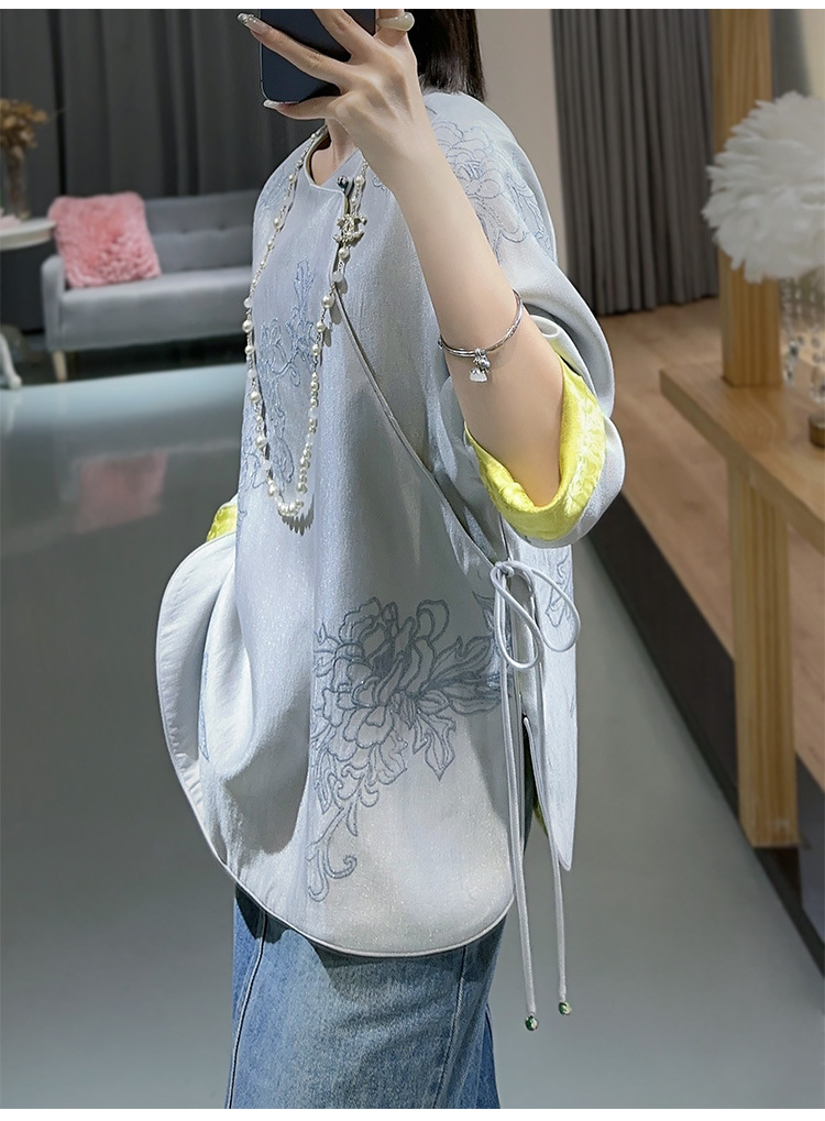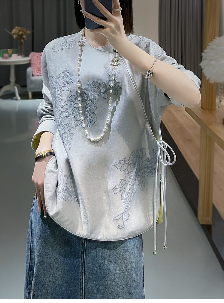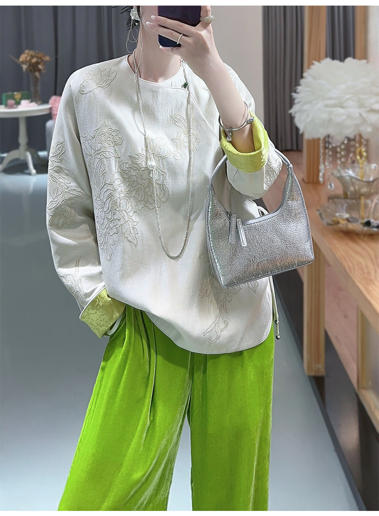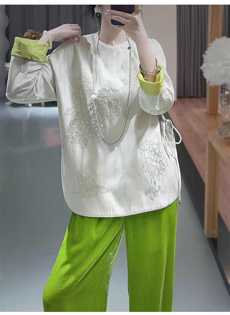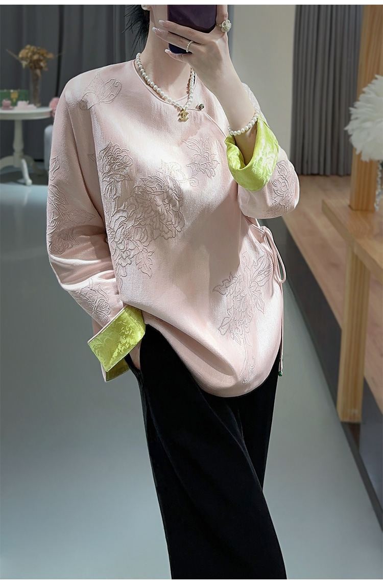 KDS中式国风刺绣上衣女2023春秋款斜襟百搭气质唐装