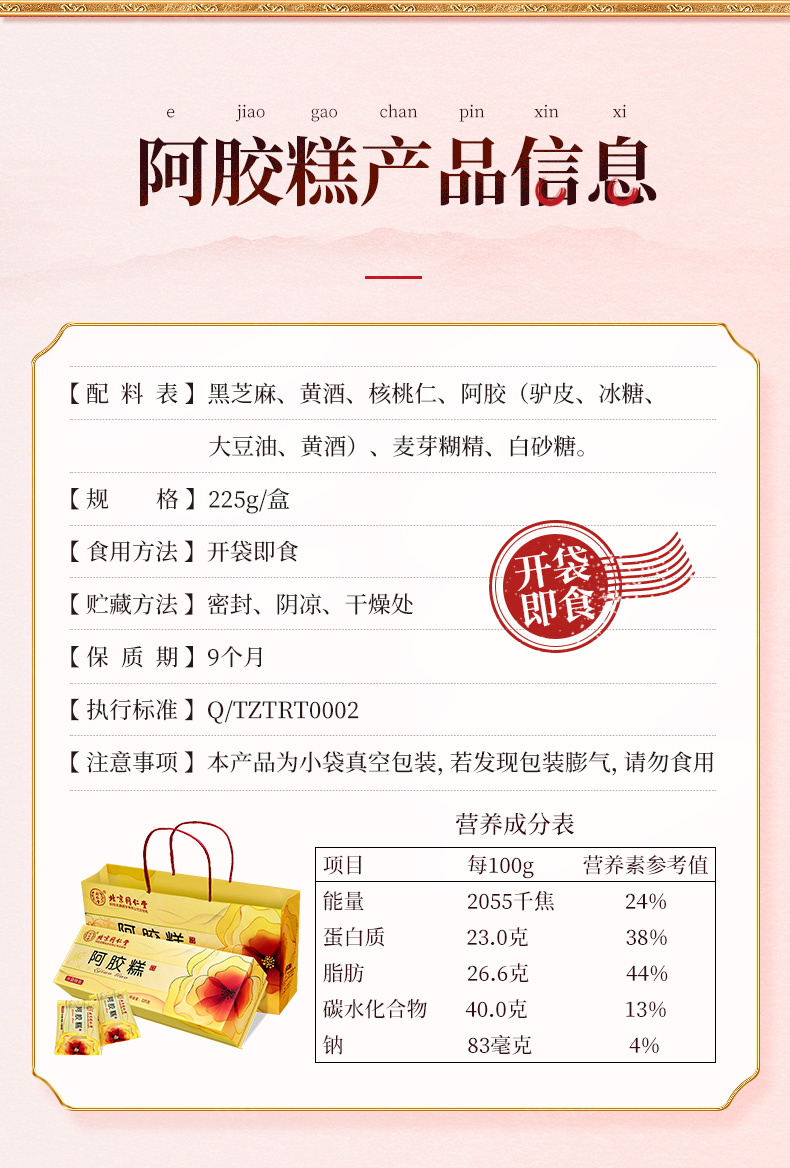北京同仁堂阿胶糕礼盒 225g 正品驴皮固元膏 传统即食