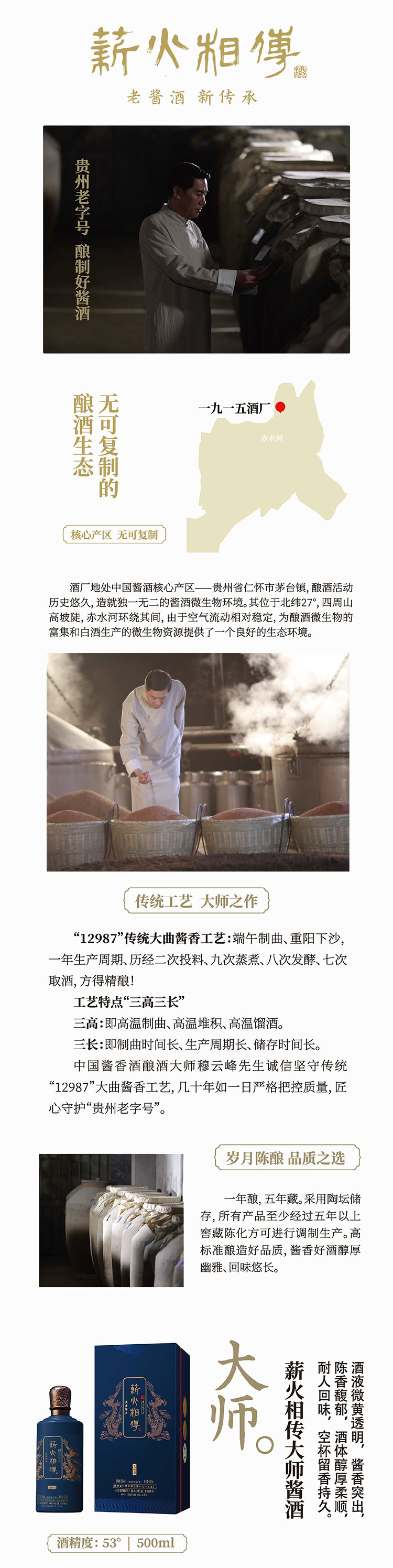 【茅台镇酱酒核心产区】53°薪火相传大师酱酒6瓶装500ml