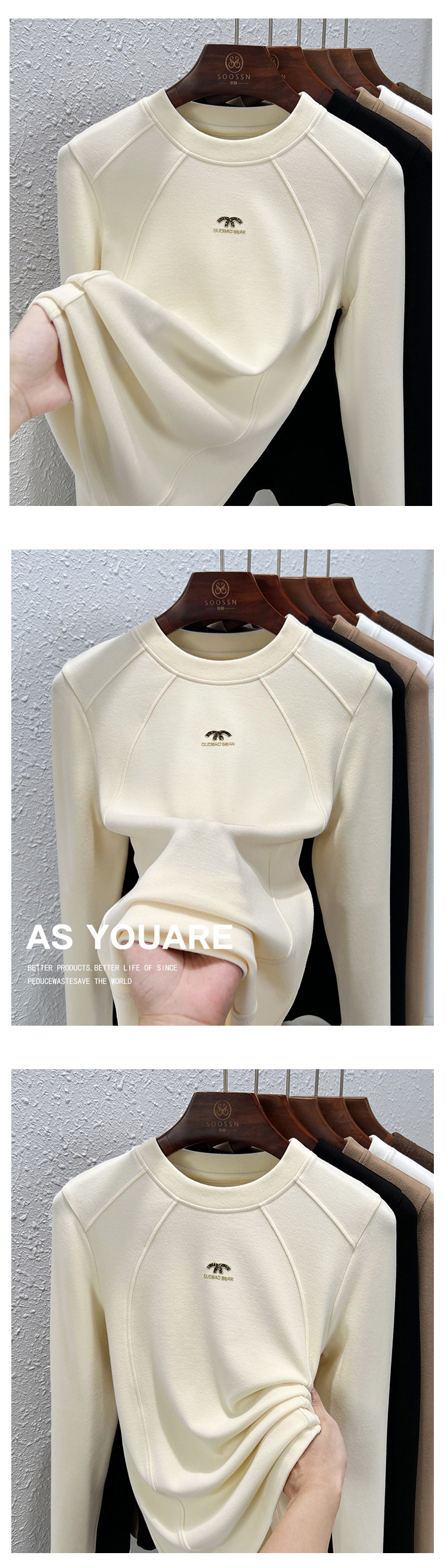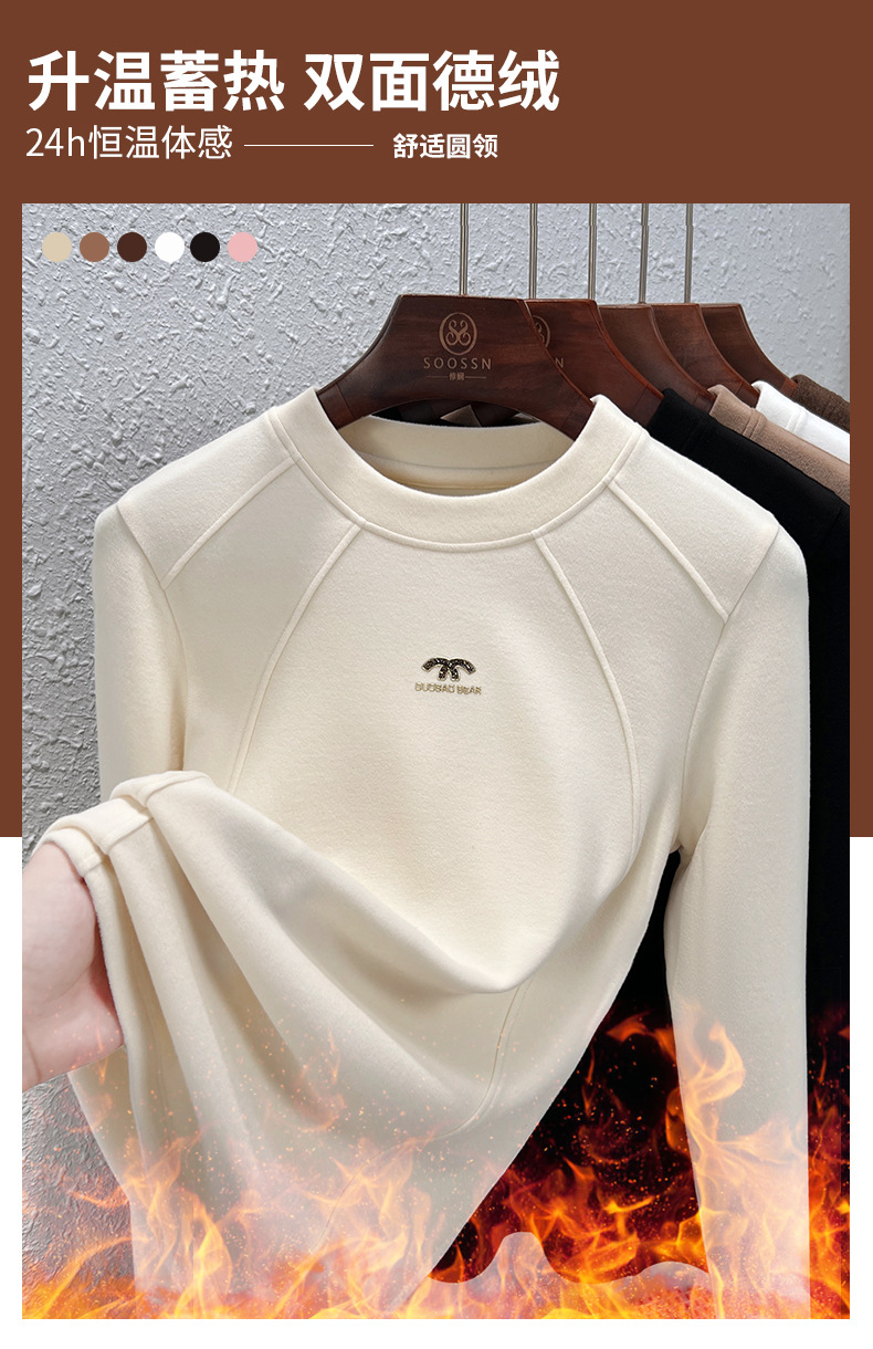 丁摩 圆领德绒打底衫女内搭秋冬上衣新款加厚双面绒保暖t恤女5ZF-6507