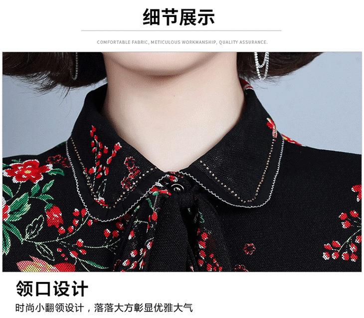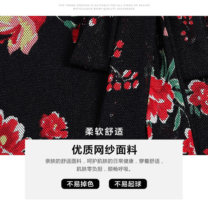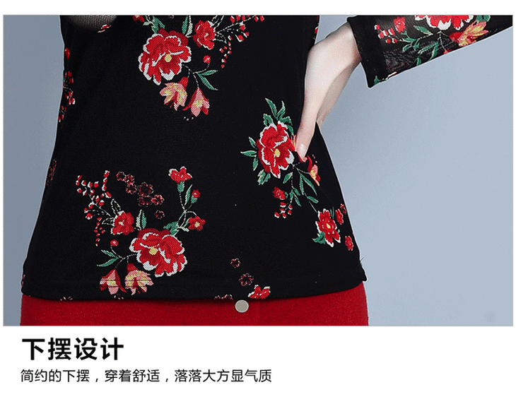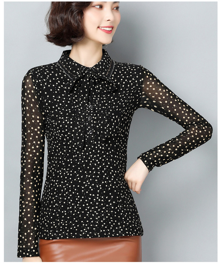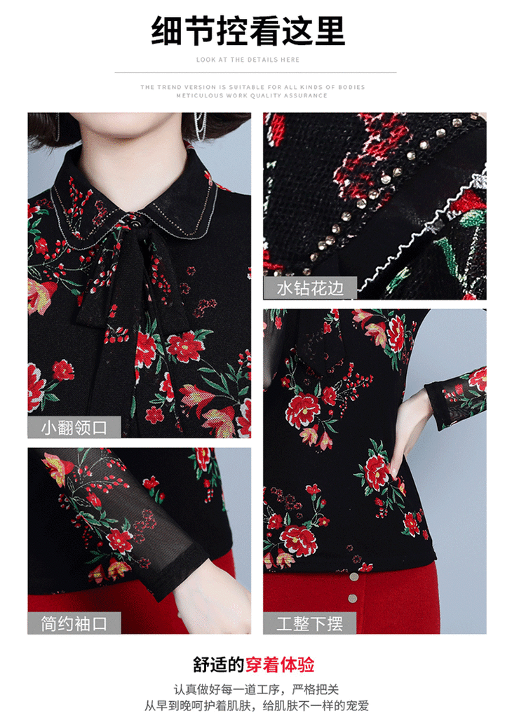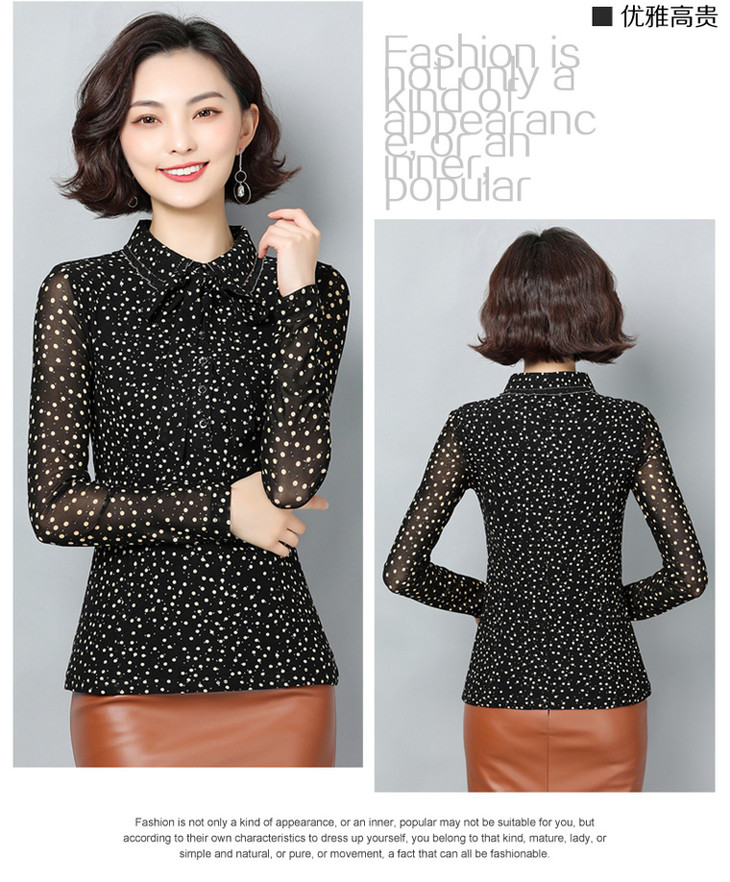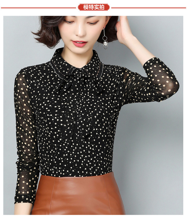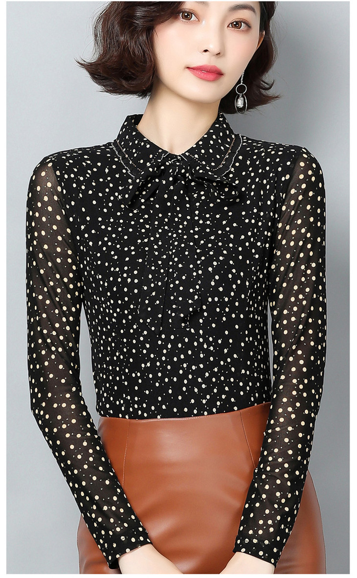 MZ-MZ6200秋季新款时尚翻领弹力网纱印花小衫