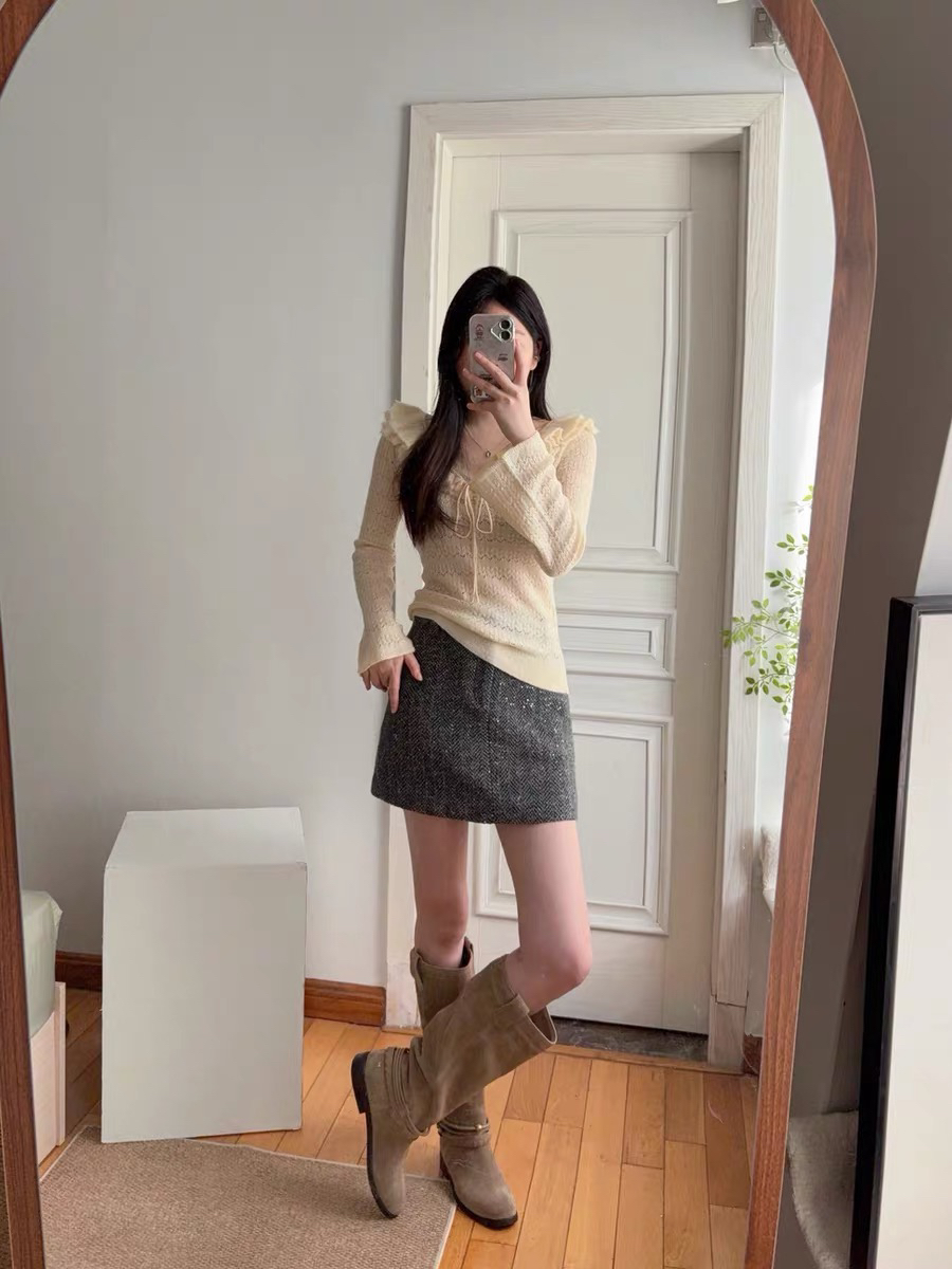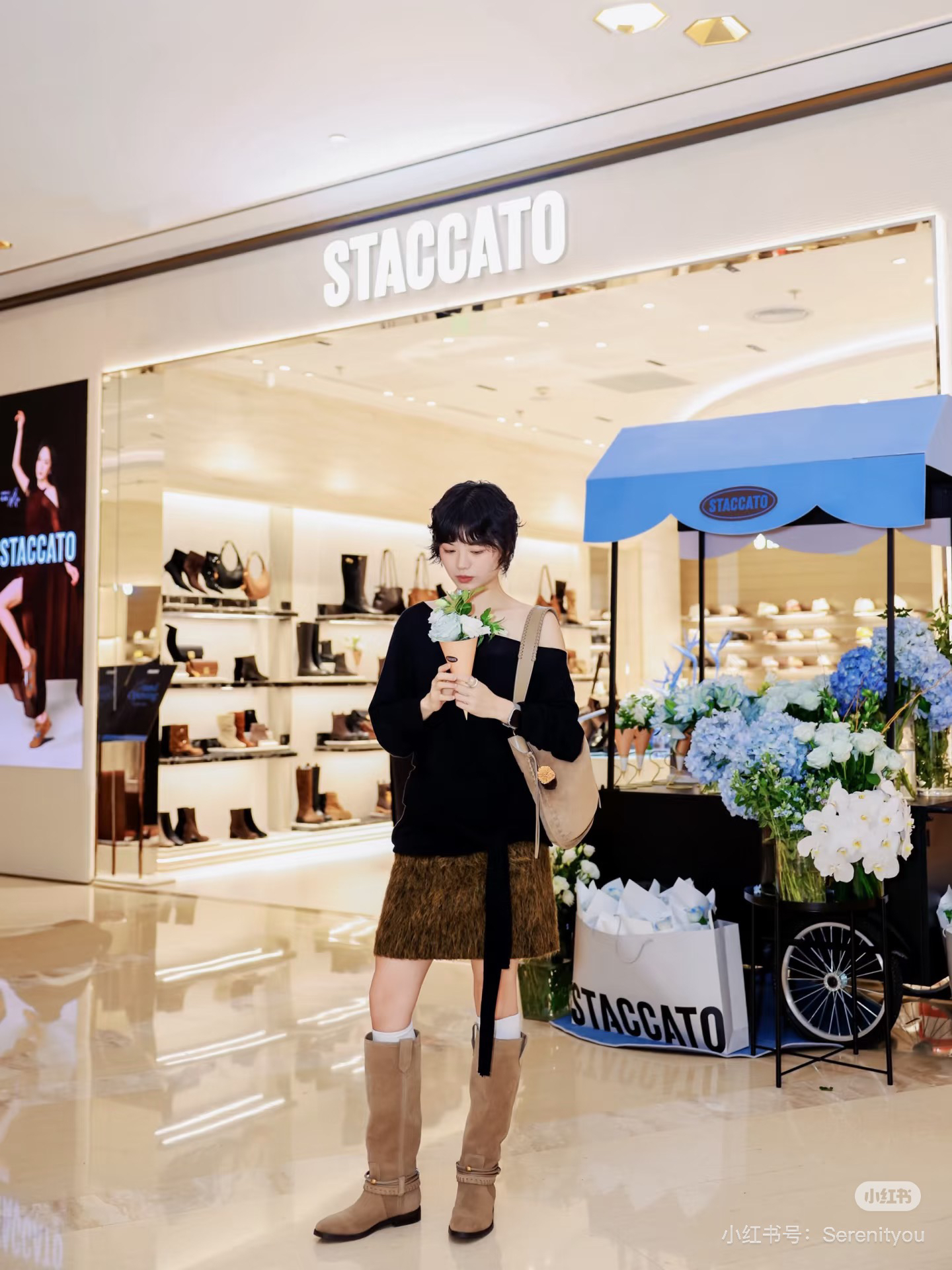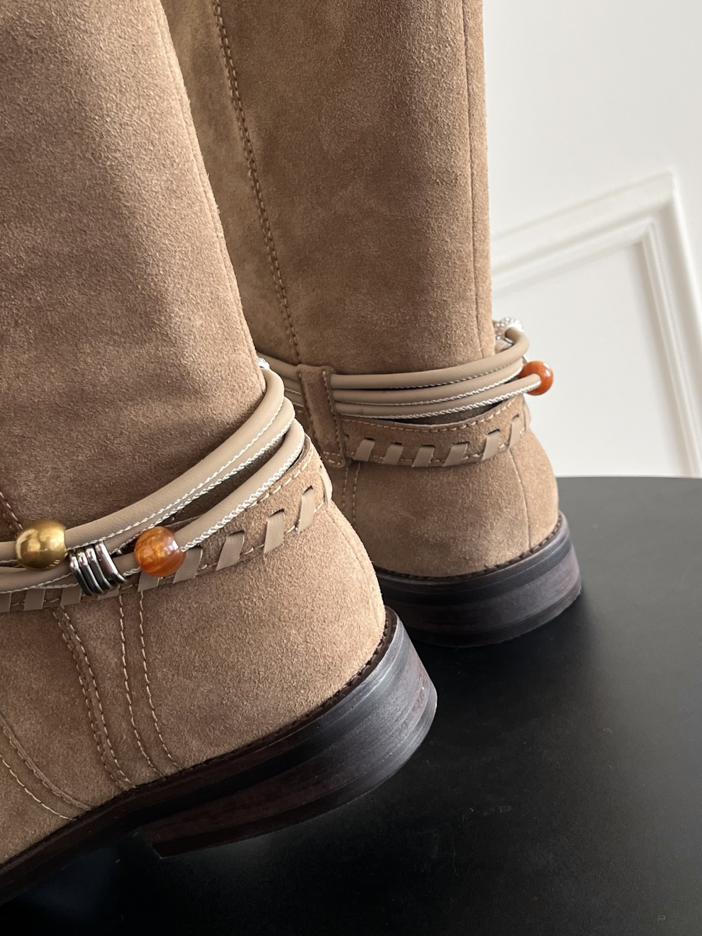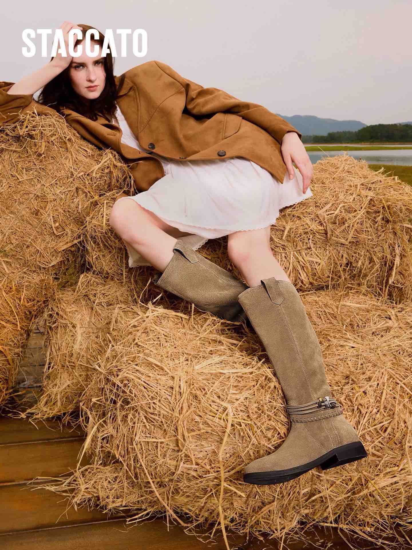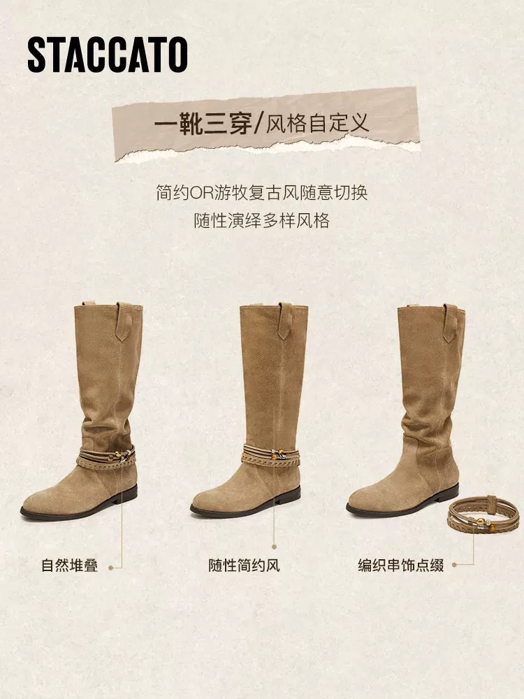 长筒靴自然堆叠的松弛感!直立又是另外一番味道!串珠装饰 点缀经典