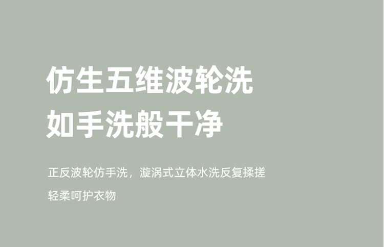 7、【仿生五维波轮洗】:正反波轮仿手洗,旋涡式立体水洗反复揉搓,轻柔呵护衣物;