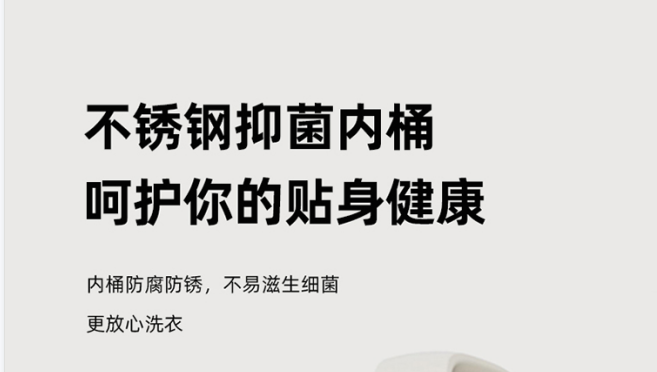 8、【桶自清洁】:一键启动桶内自清洁,清除桶内细菌,一机可洗多种衣物,无需担心交叉感染;