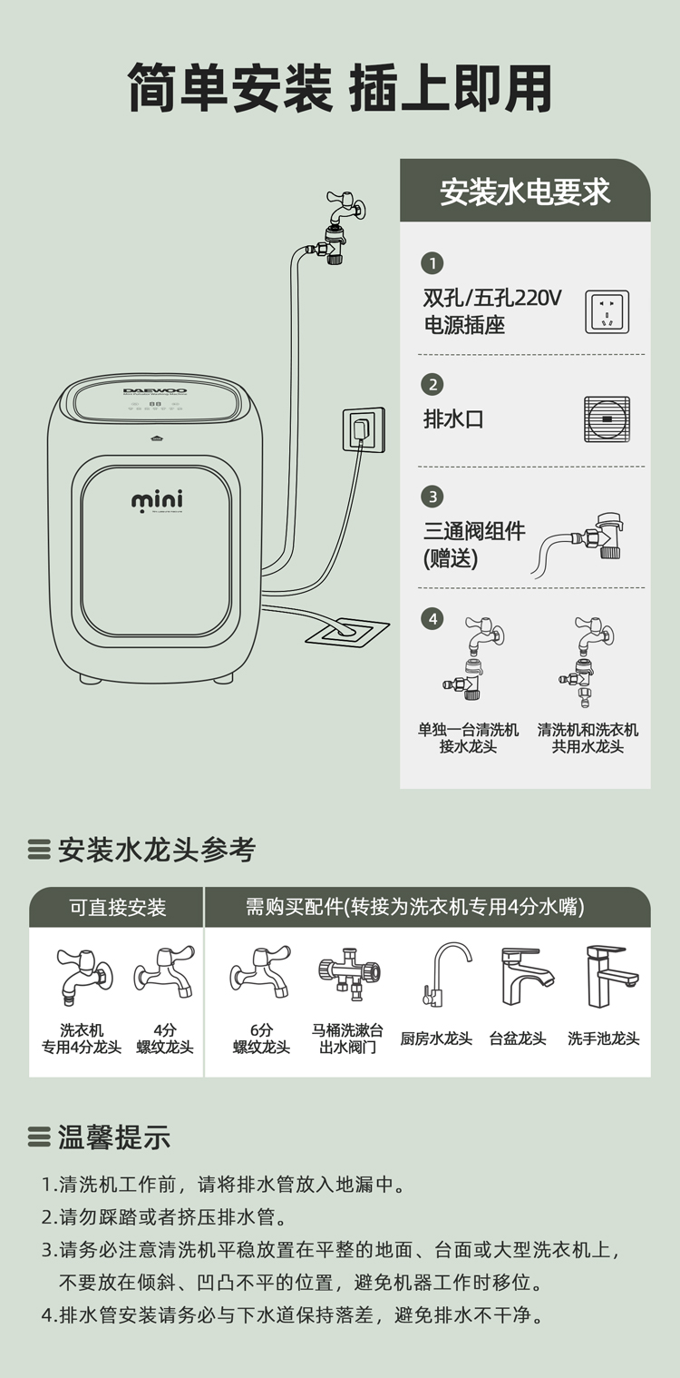 【包装清单】:主机+进水管+排水管+三通阀+说明书
