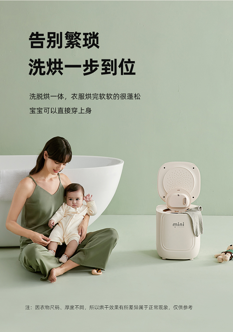 1、【一键洗脱烘】:洗脱烘一体,免晾晒,烘干后直接穿,解放双手,告别繁琐;