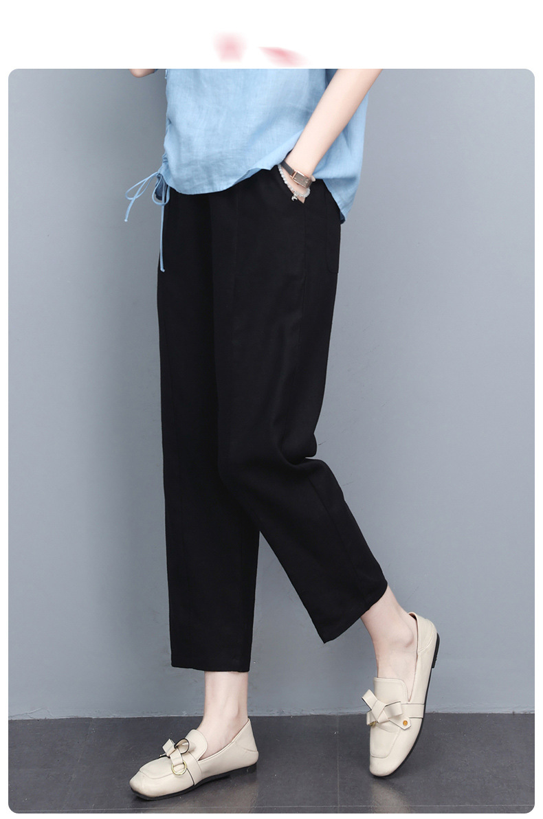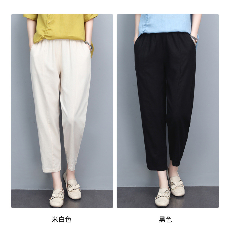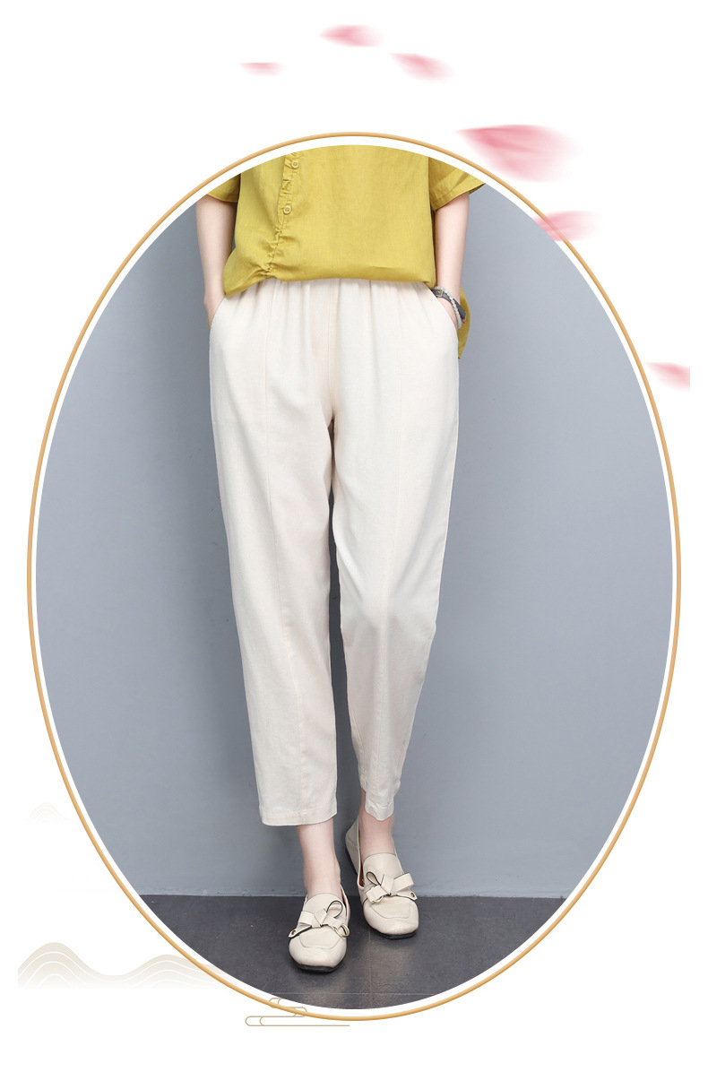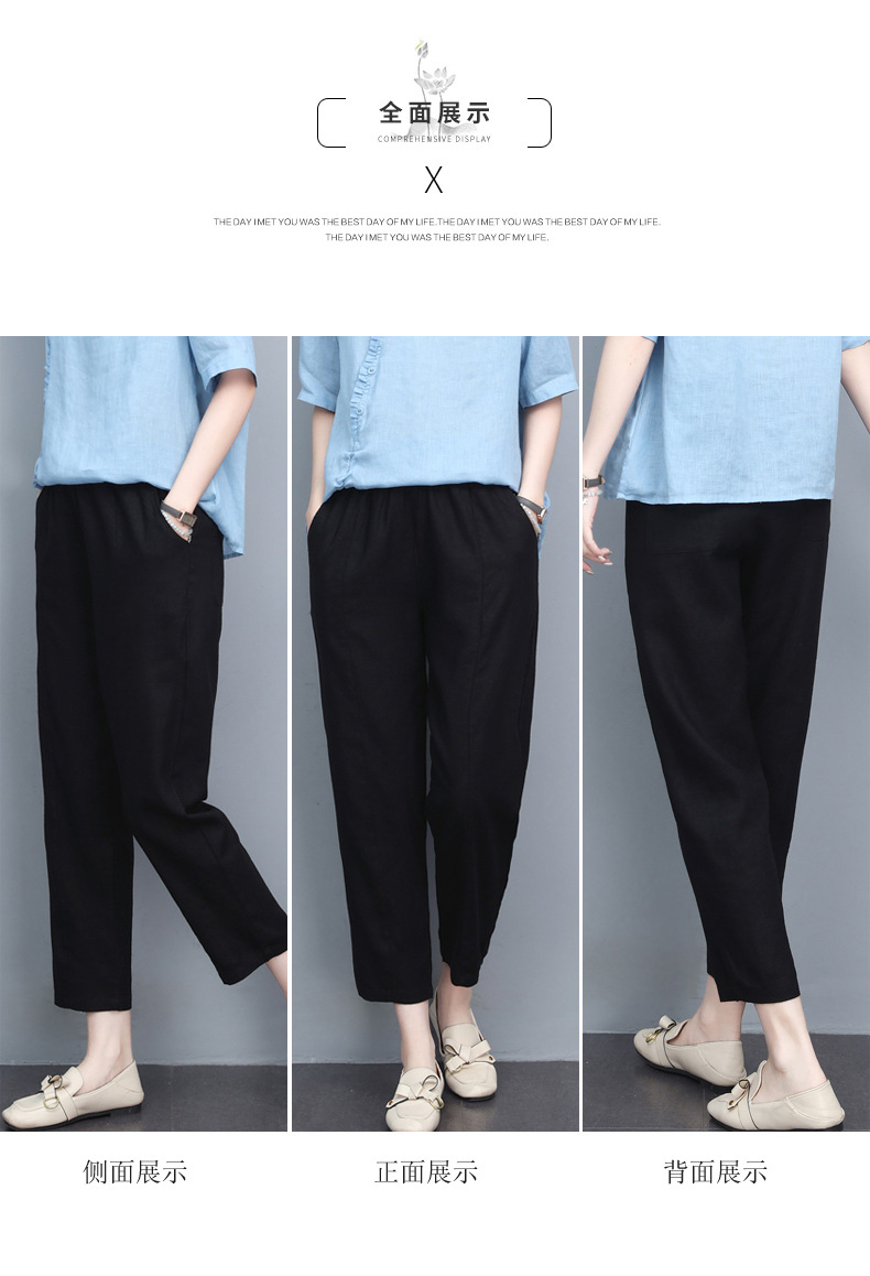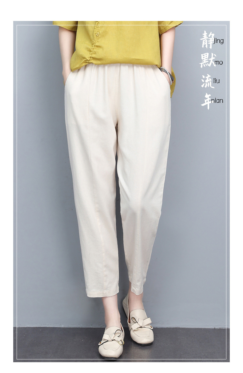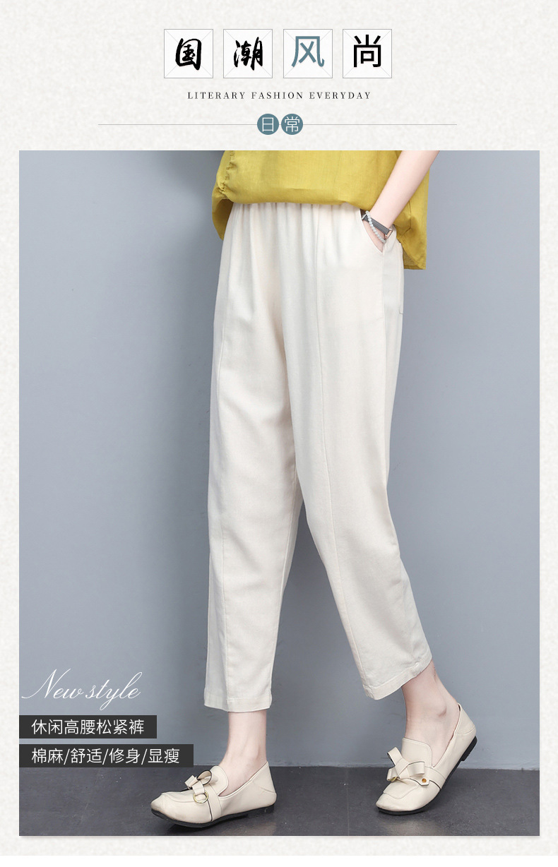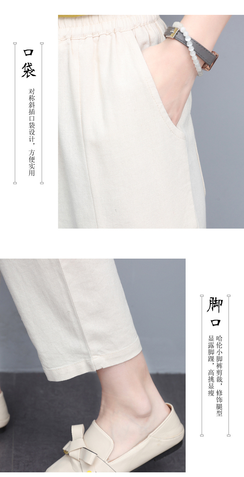 丁摩 夏装棉麻休闲时尚九分裤新款女装薄款松紧腰裤子5ZF-2207