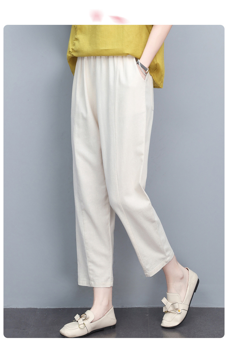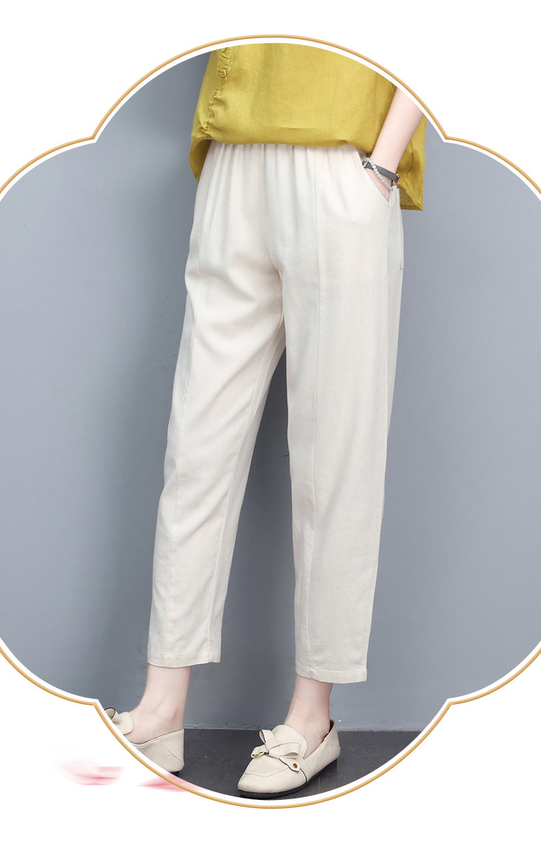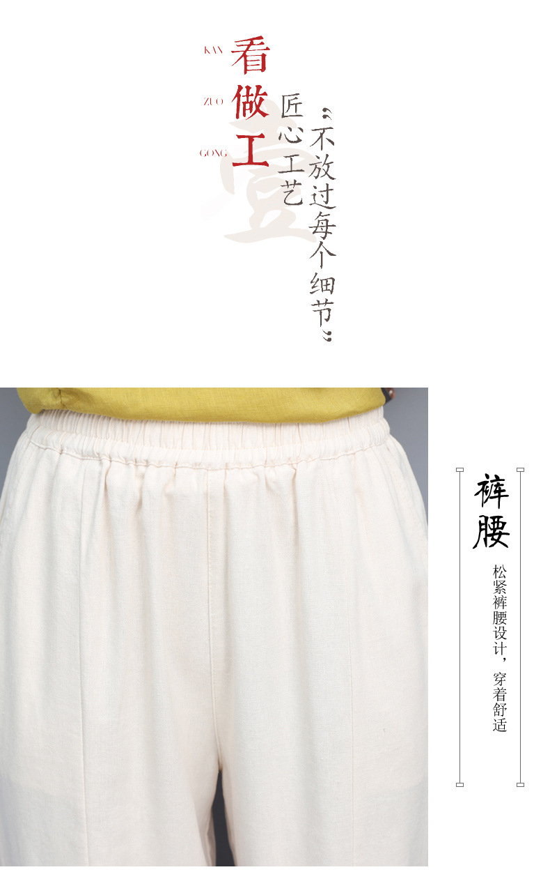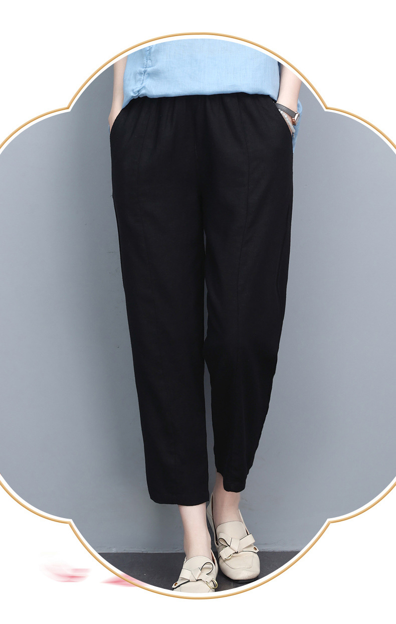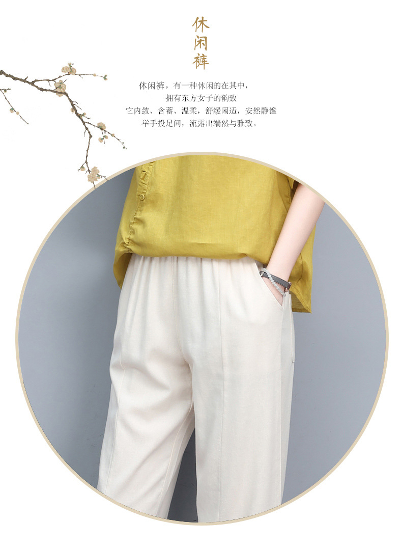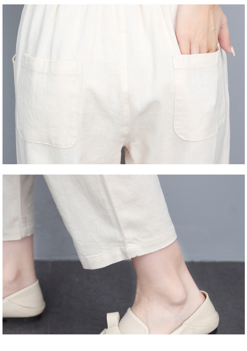 丁摩 夏装棉麻休闲时尚九分裤新款女装薄款松紧腰裤子5ZF-2207