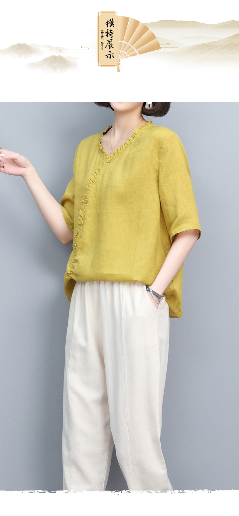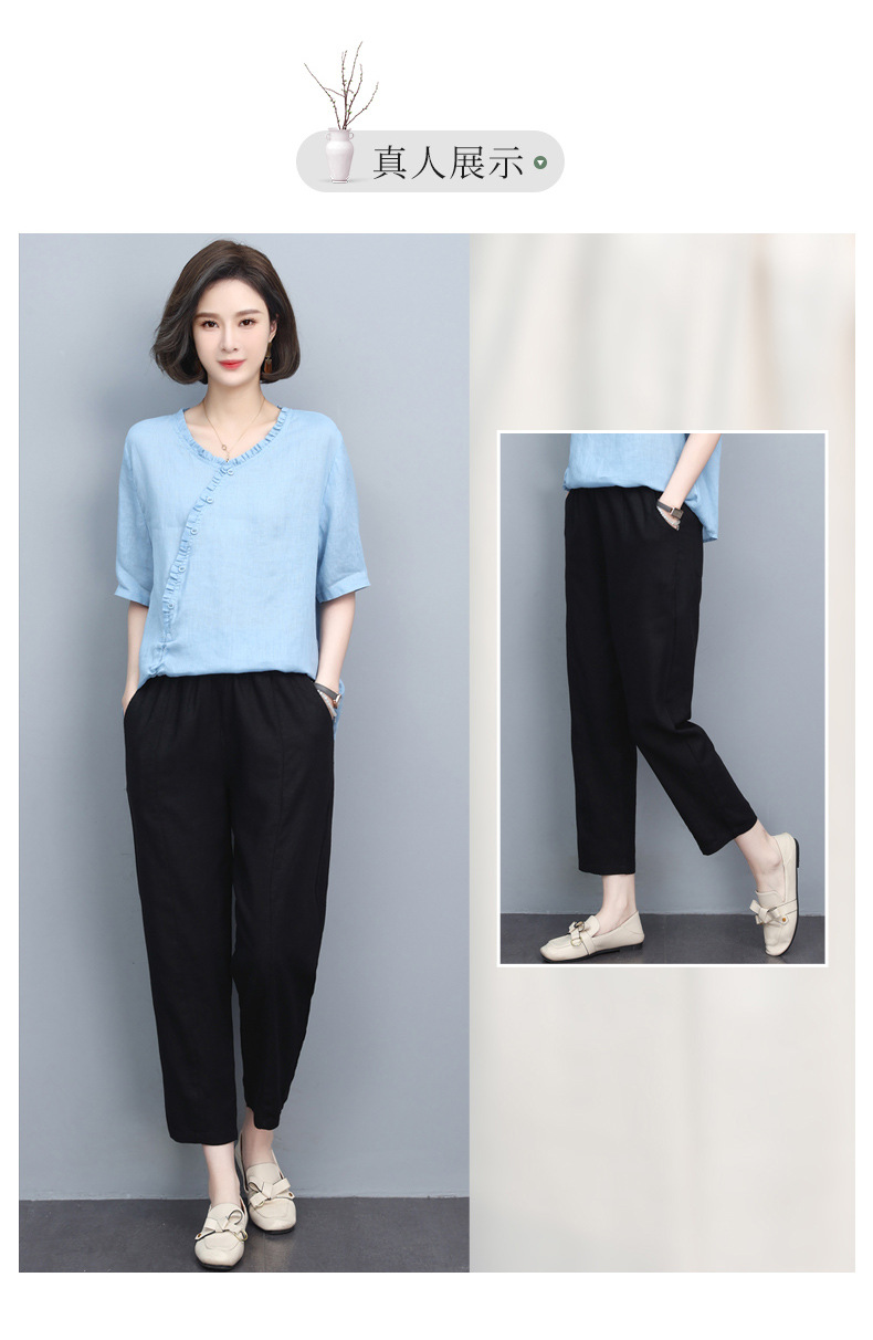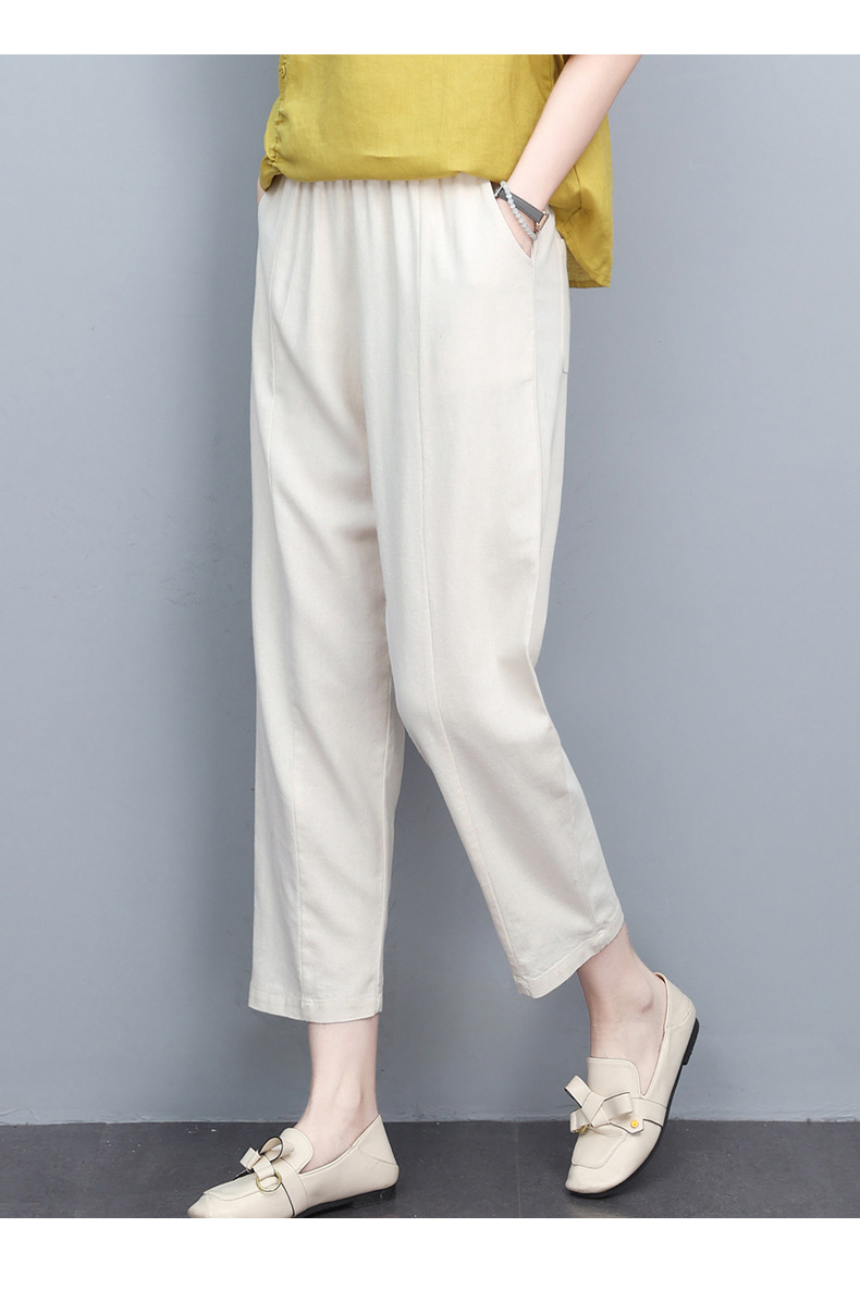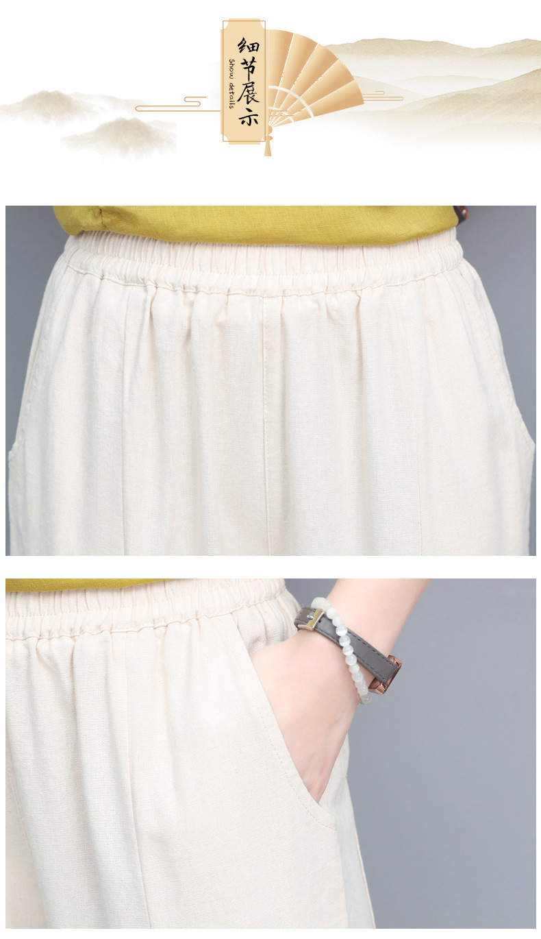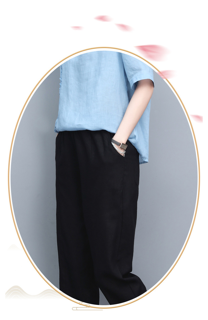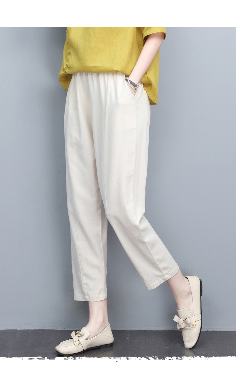 丁摩 夏装棉麻休闲时尚九分裤新款女装薄款松紧腰裤子5ZF-2207