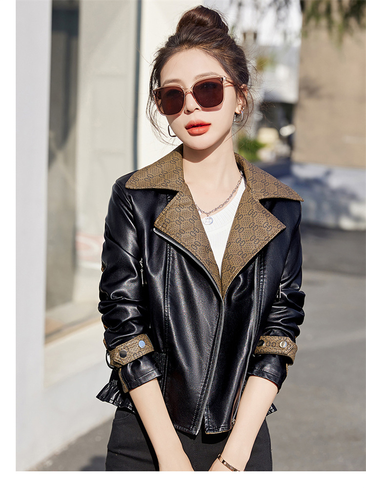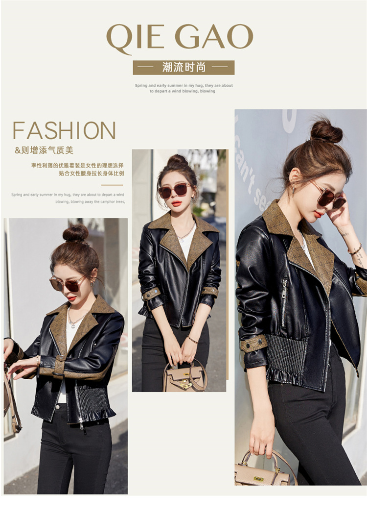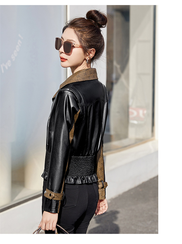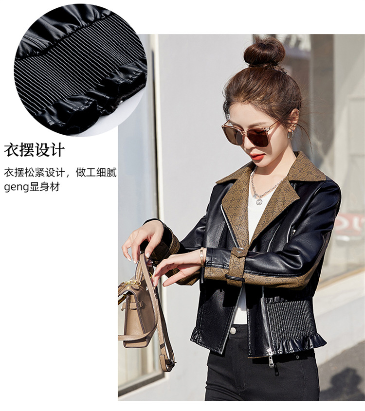欧洲站皮衣外套春季新款韩版修身百搭下摆拉牛筋工艺小皮衣HR-WW880079
