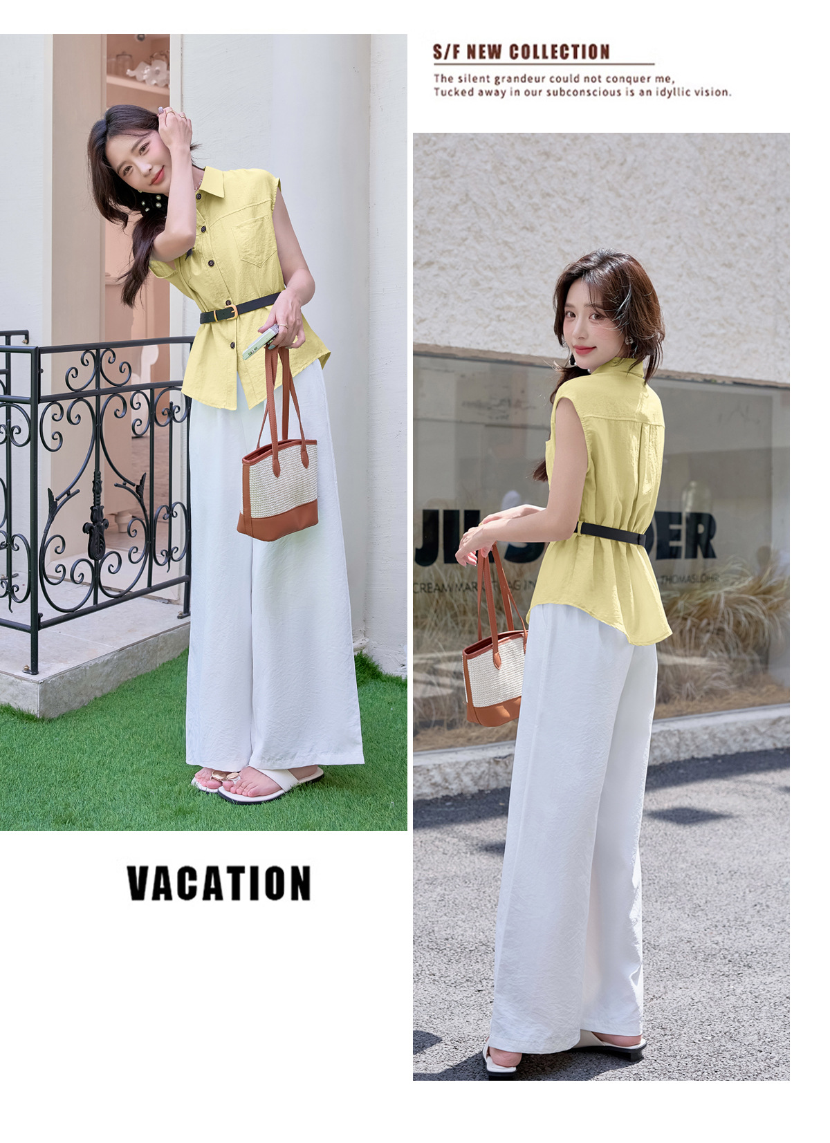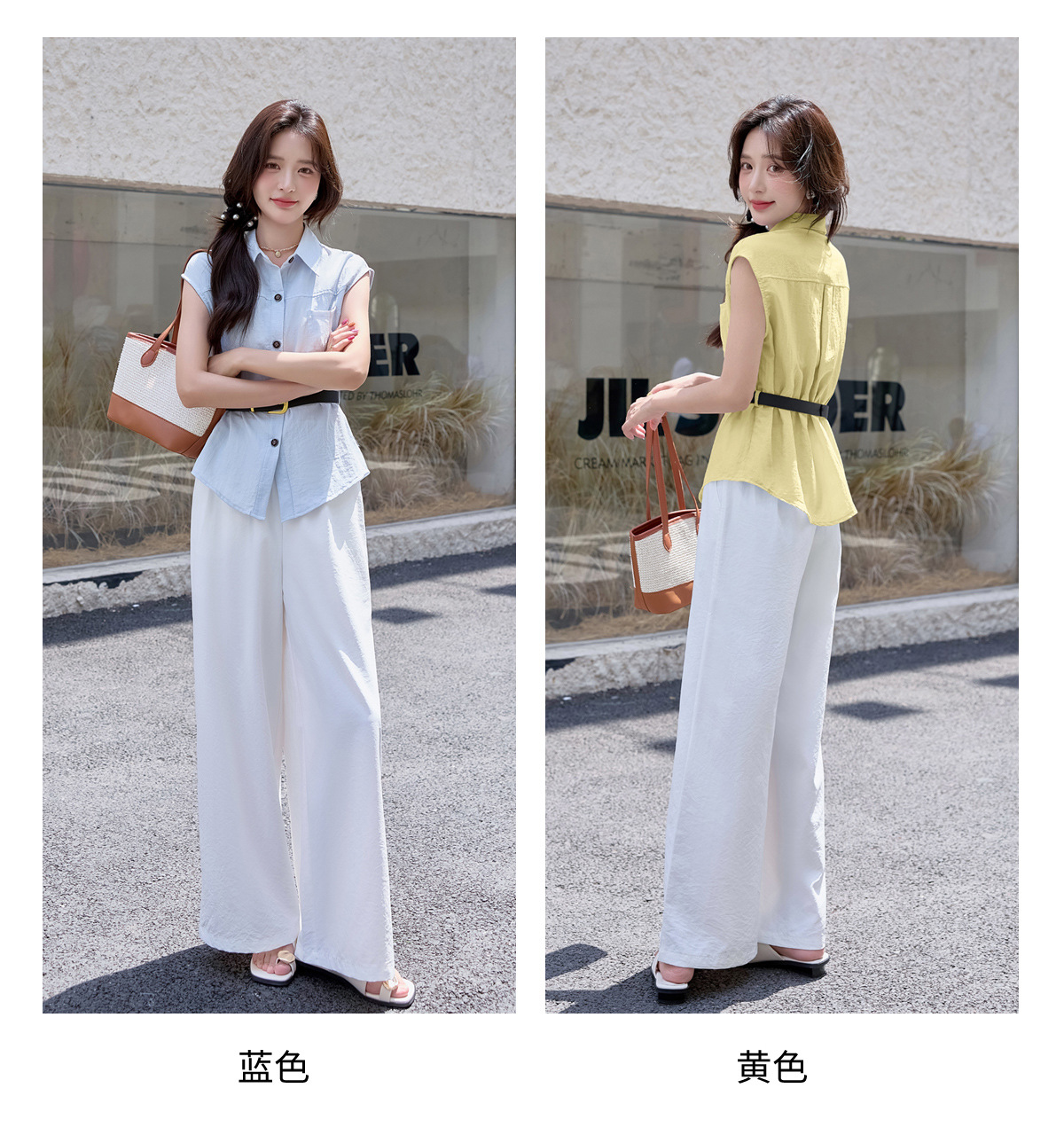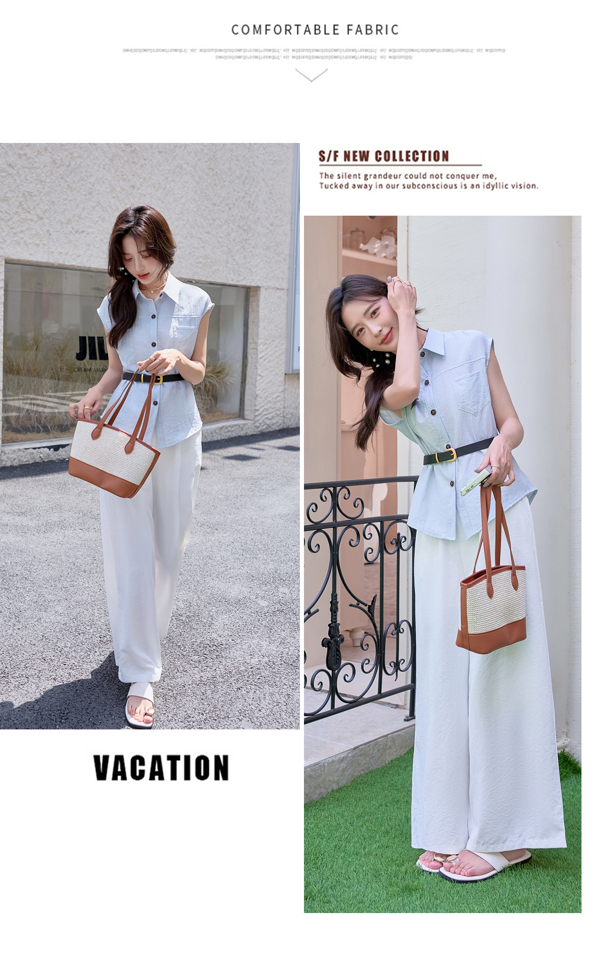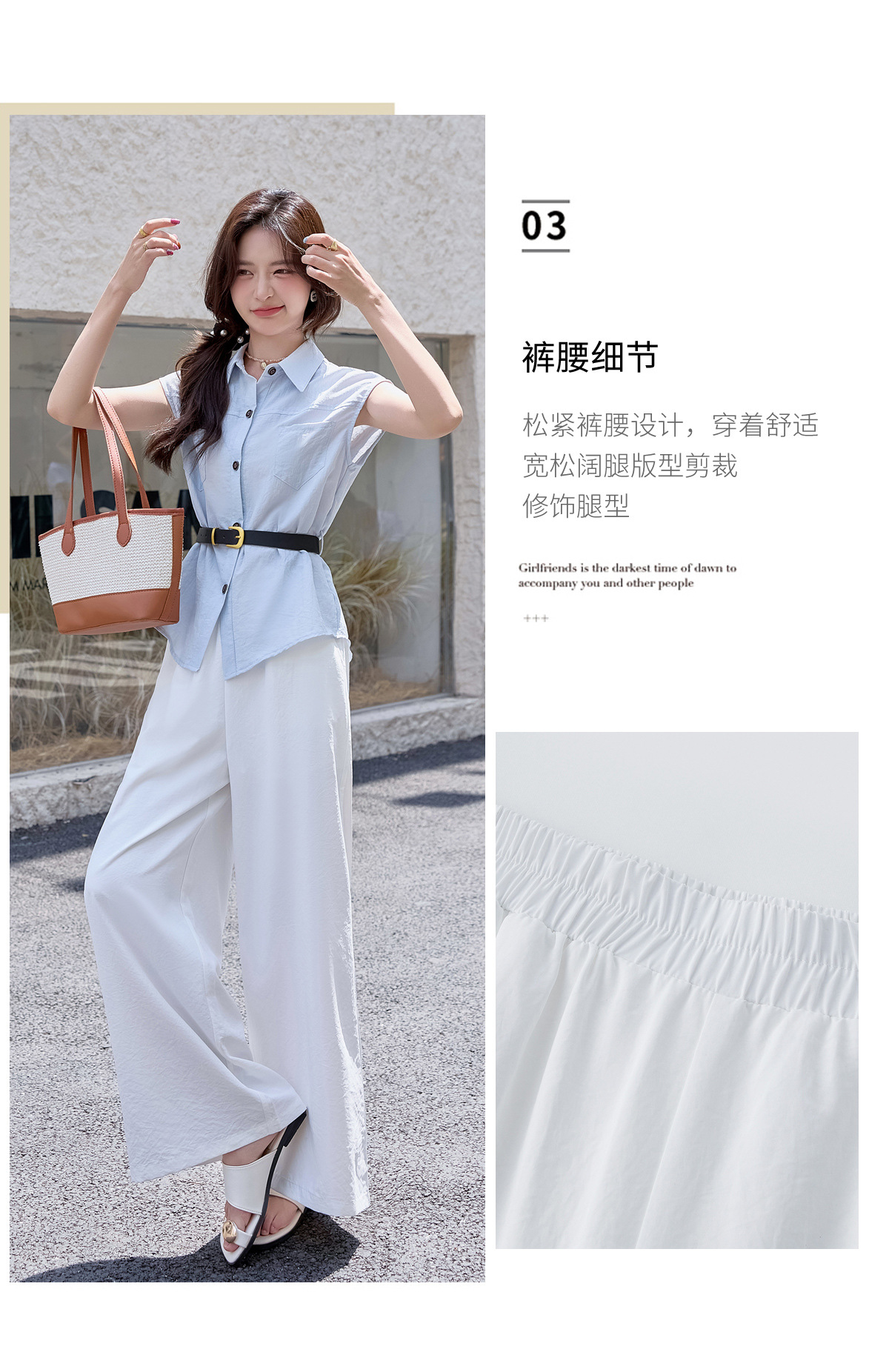 2025夏季新款清纯系夏日穿搭时尚套装女无袖上衣高腰阔腿裤两件套NSYY66111