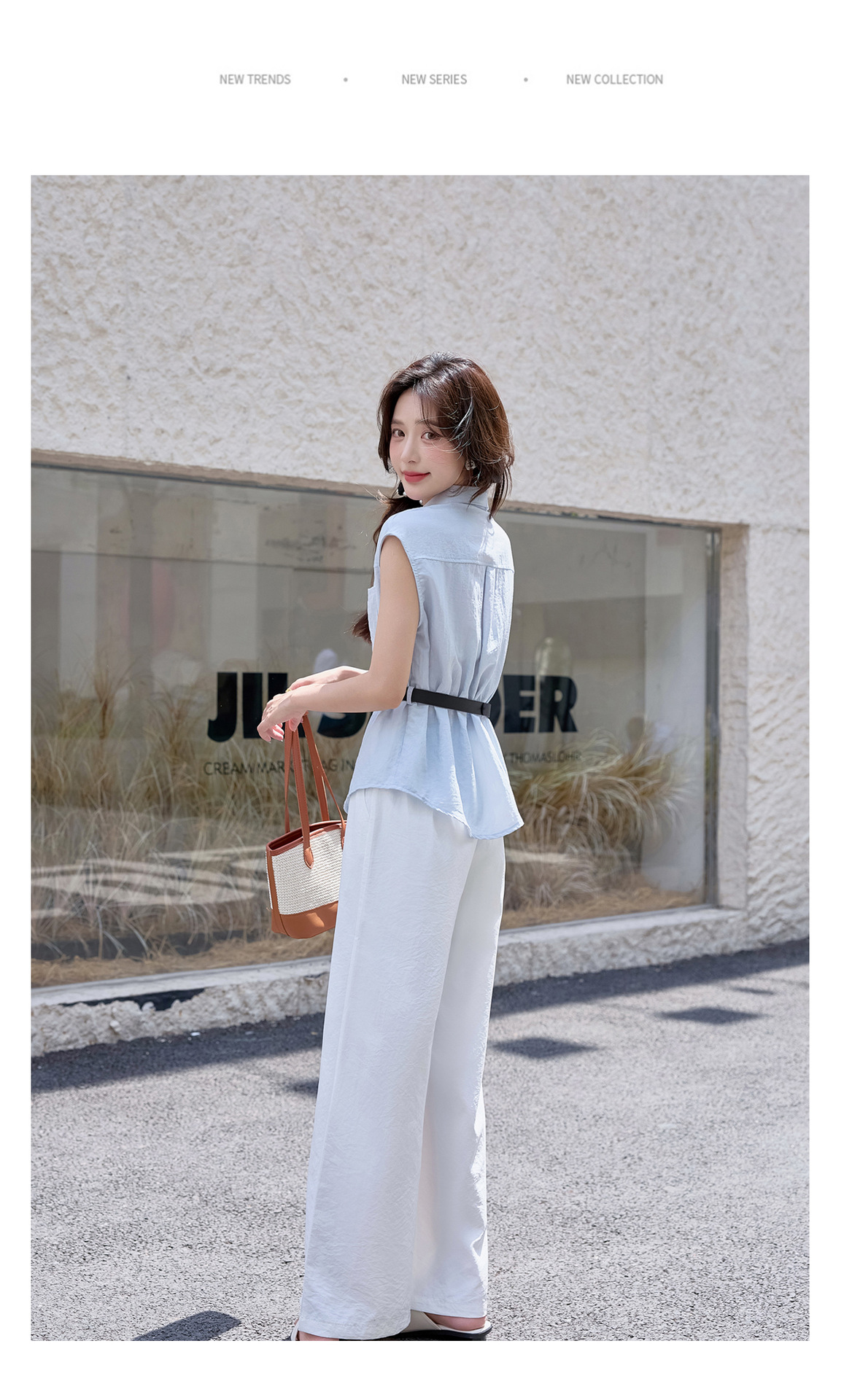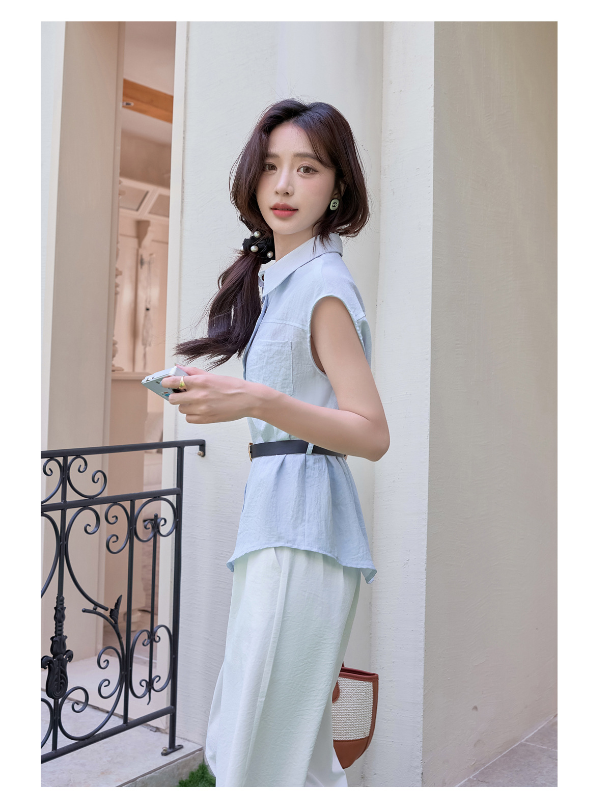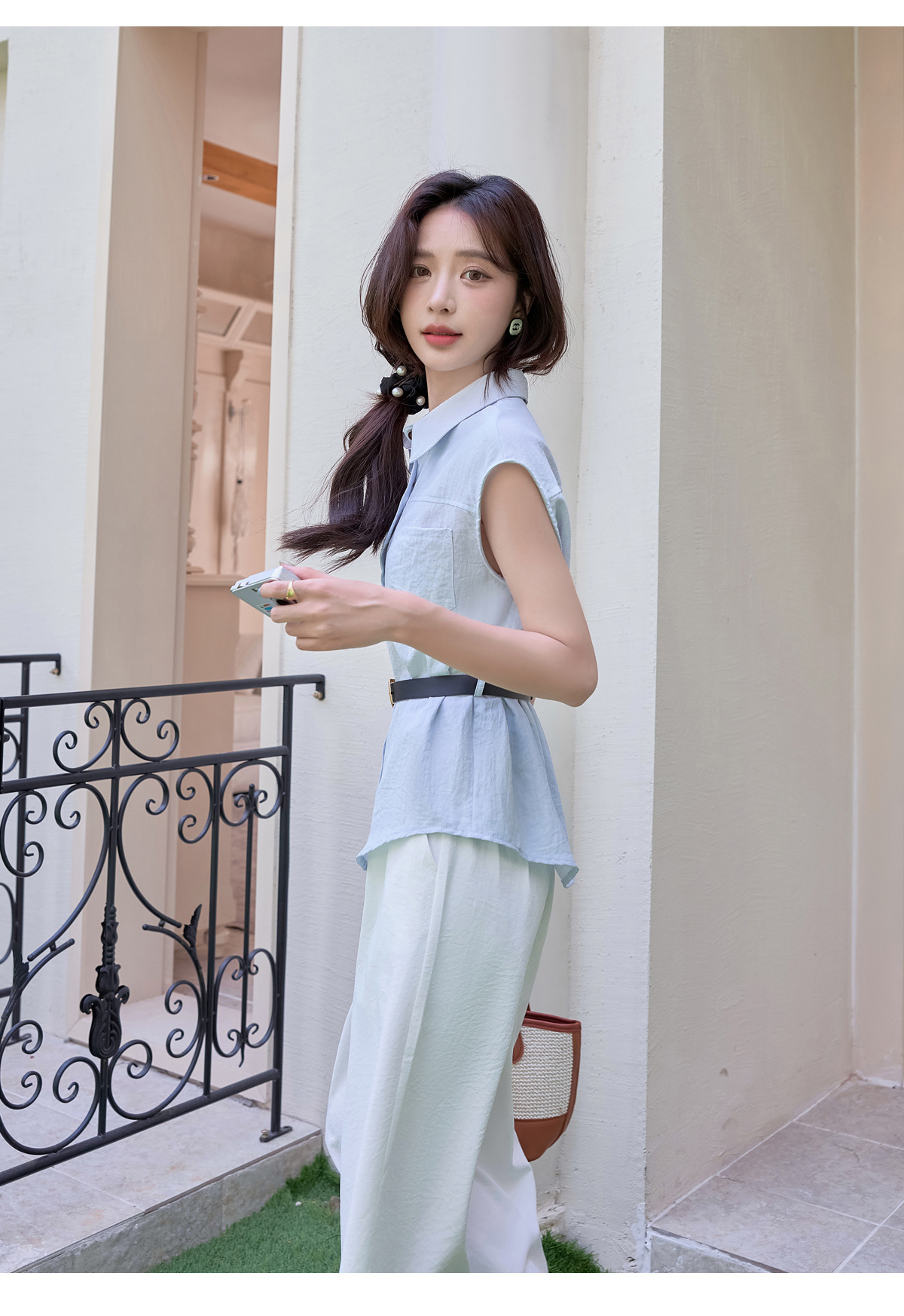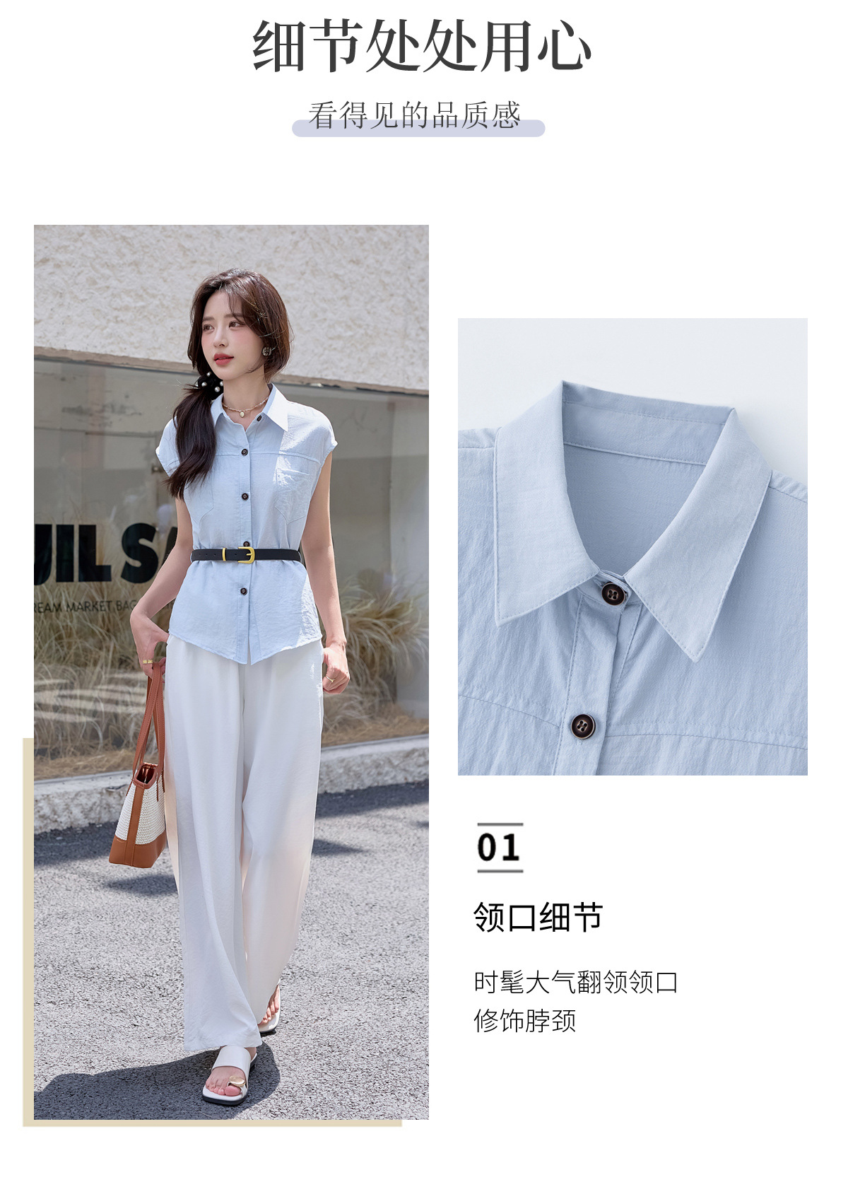 2025夏季新款清纯系夏日穿搭时尚套装女无袖上衣高腰阔腿裤两件套NSYY66111