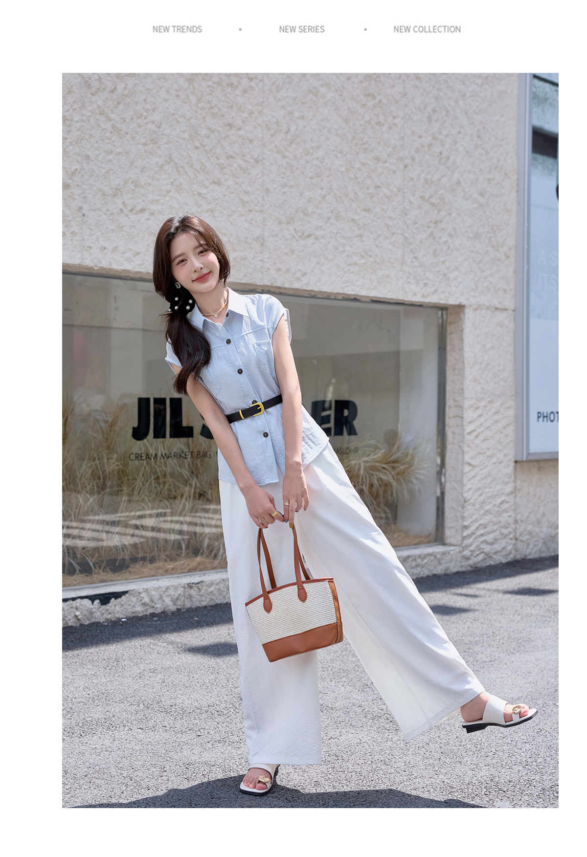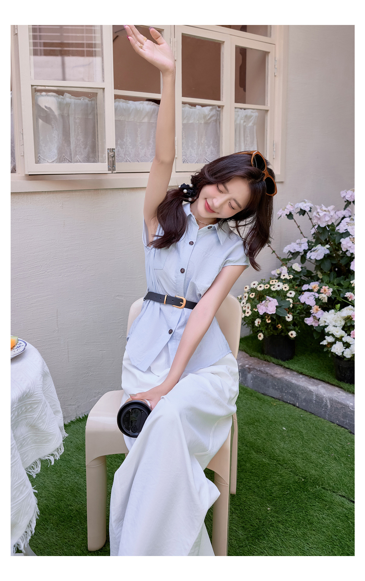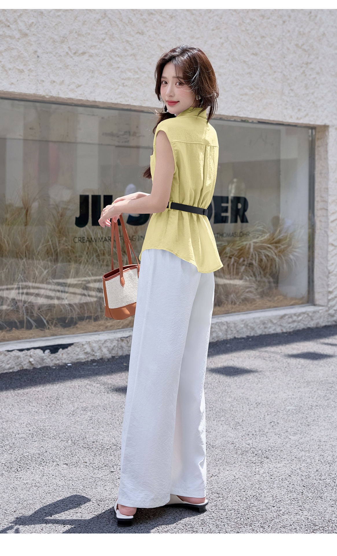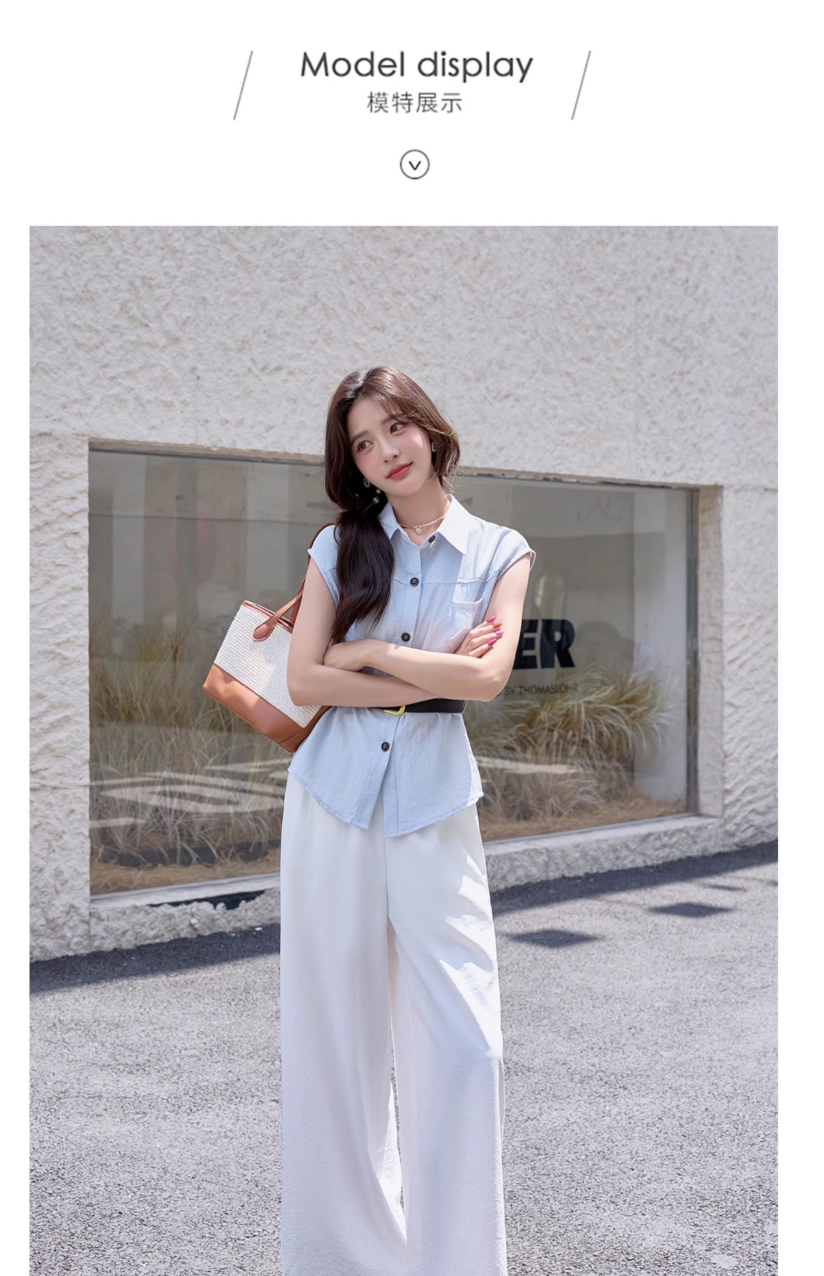 2025夏季新款清纯系夏日穿搭时尚套装女无袖上衣高腰阔腿裤两件套NSYY66111