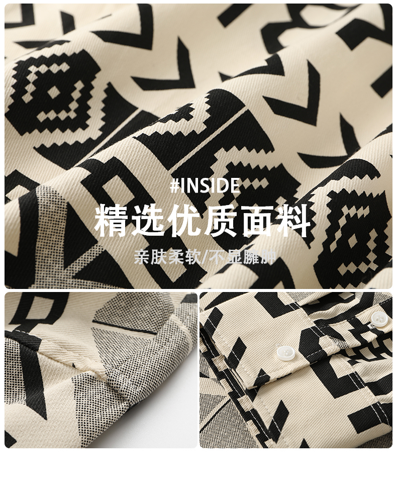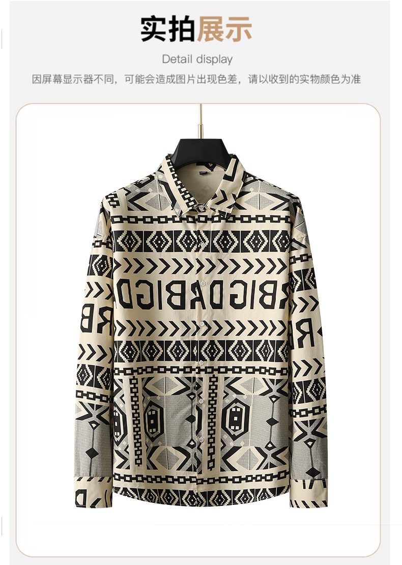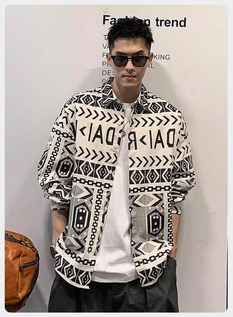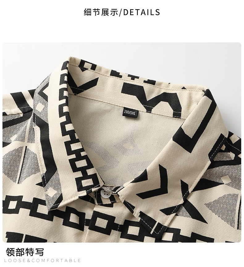 【新款DPX】大依优型大码满印衬衫长袖外套潮牌男装胖子翻领工装夹克宽松外套男