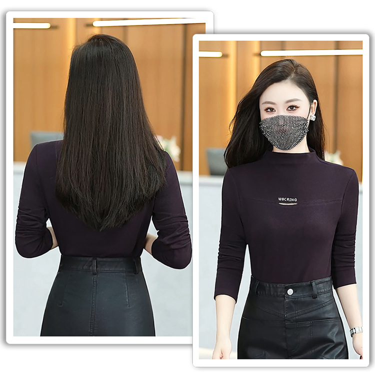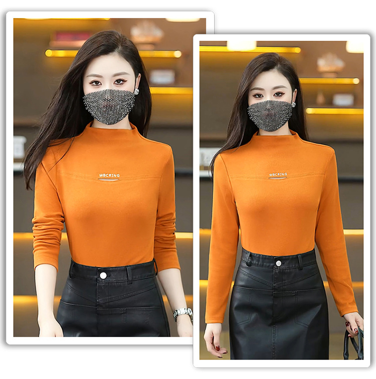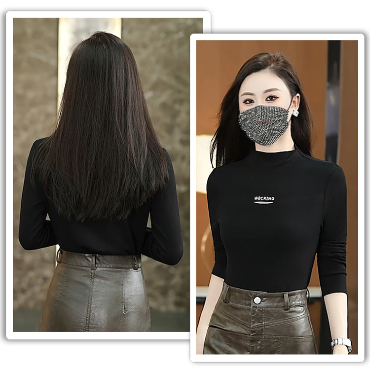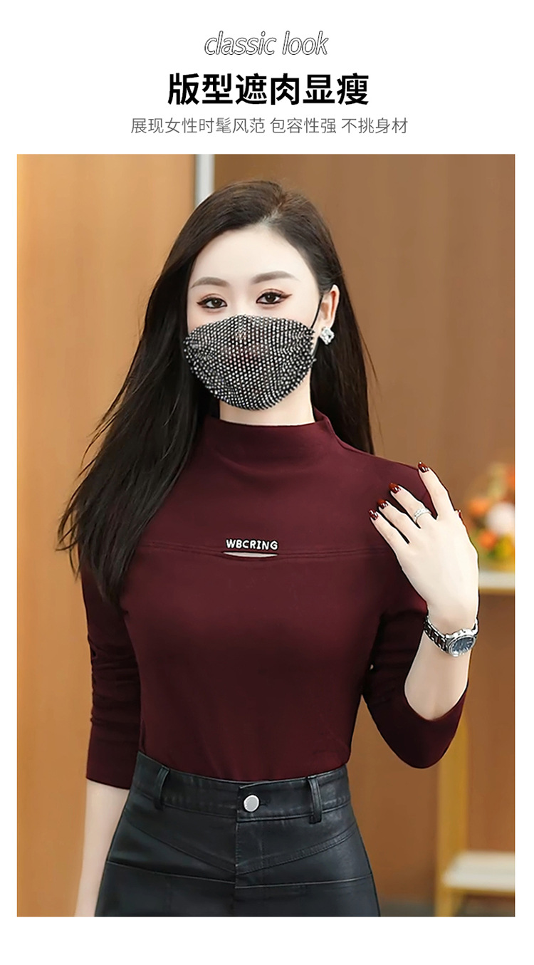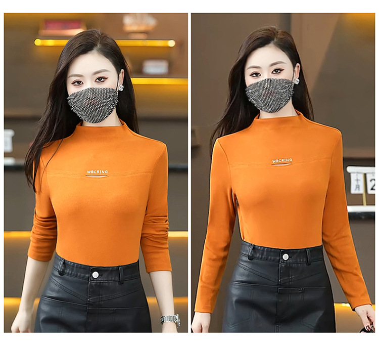 YM A510135半高领字母修身正肩长袖磨毛T恤 商品图4