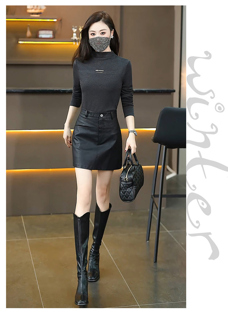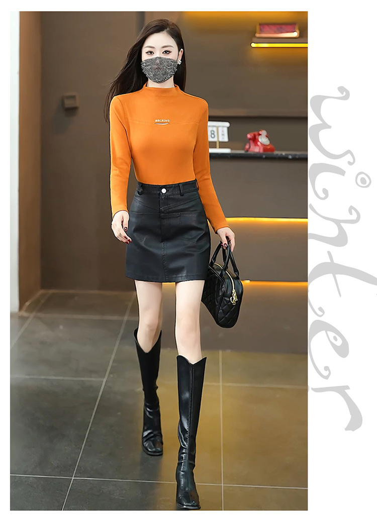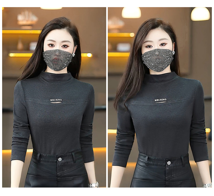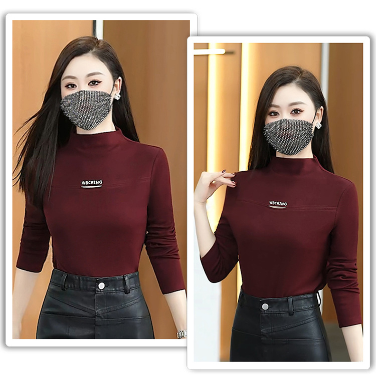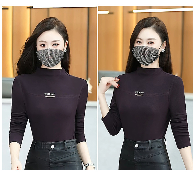 YM A510135半高领字母修身正肩长袖磨毛T恤 商品图4