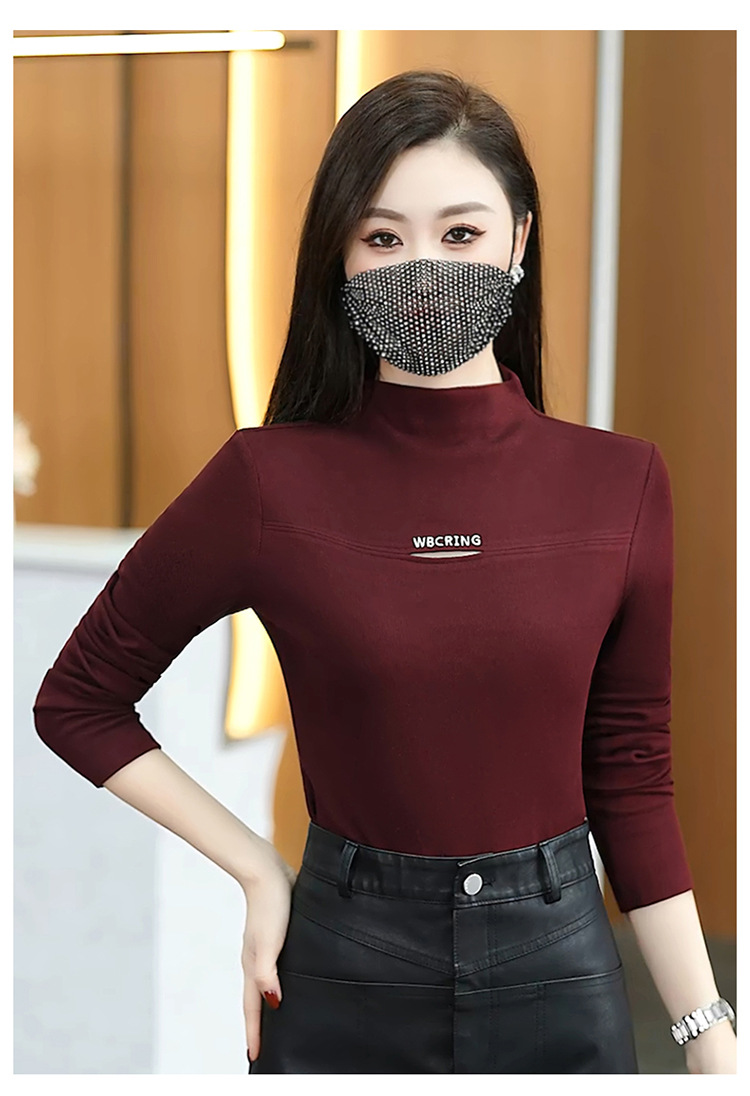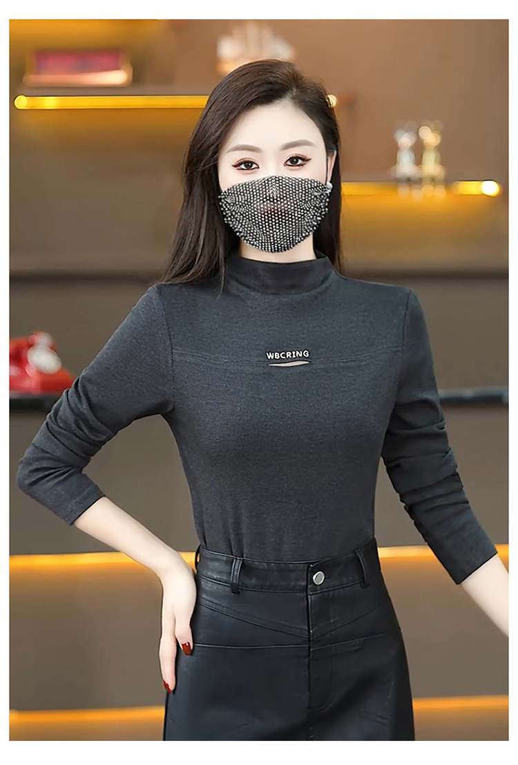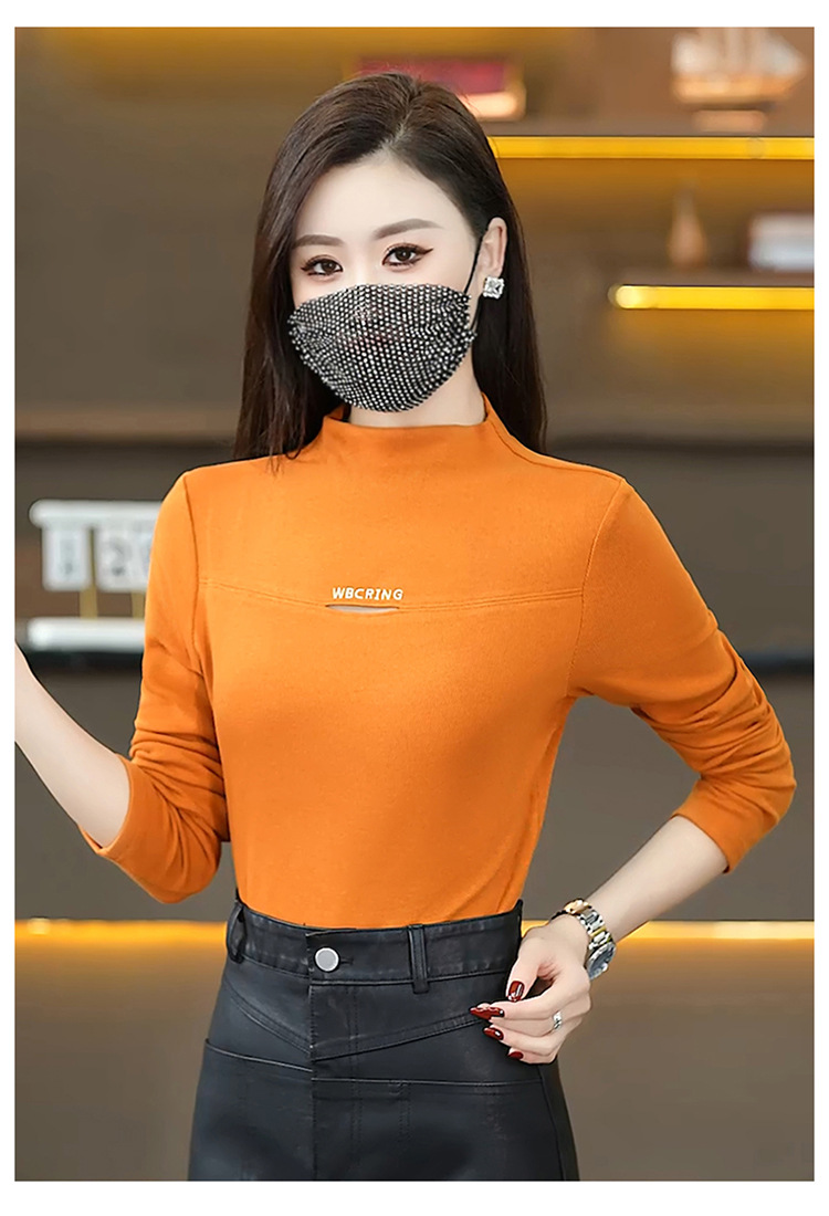 YM A510135半高领字母修身正肩长袖磨毛T恤 商品图2