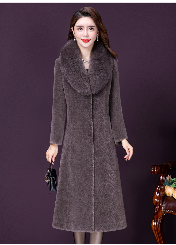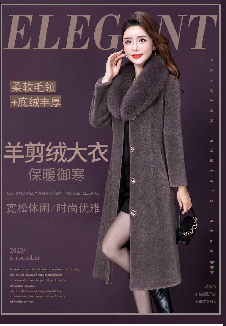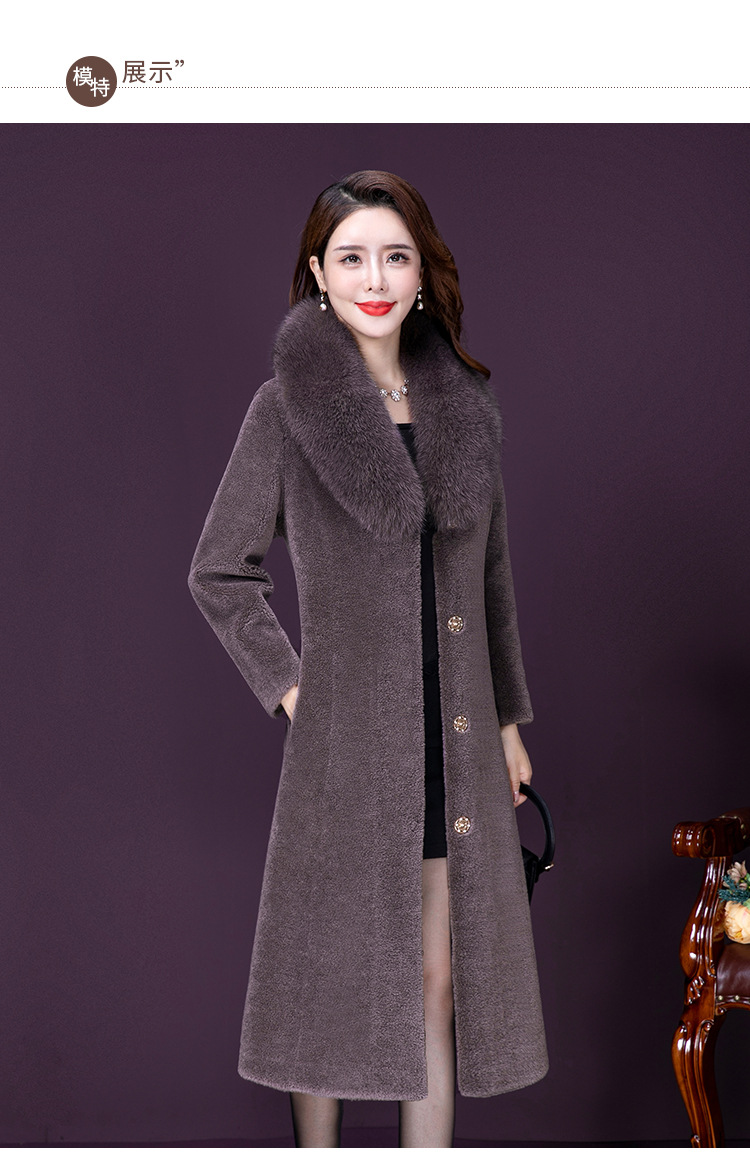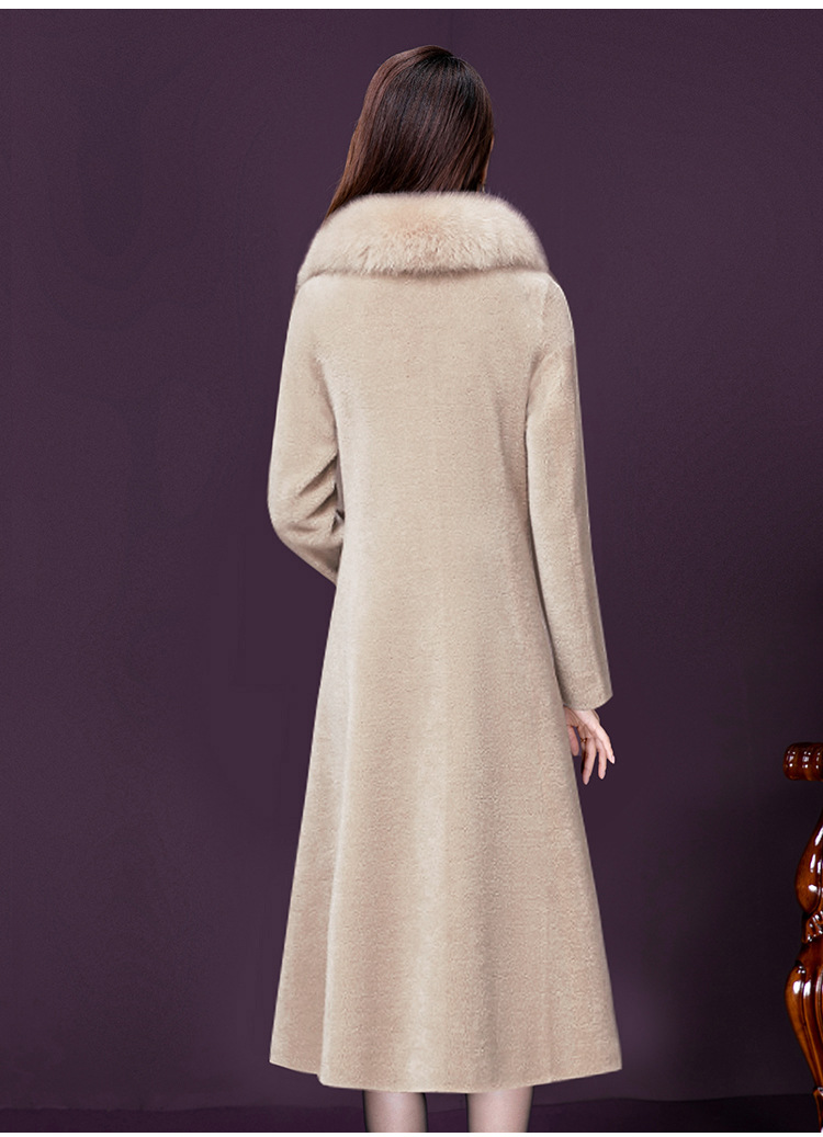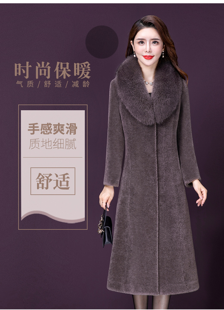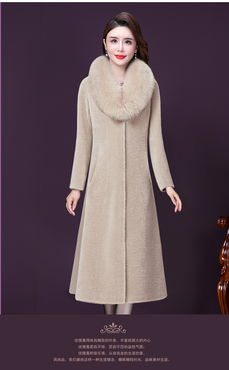 YMR-8380新款时尚优雅气质大毛领中长款羊剪绒皮毛一体大衣外套