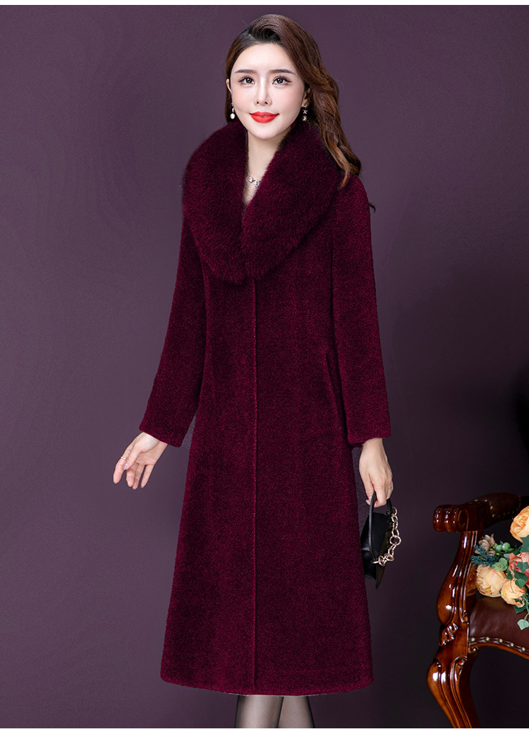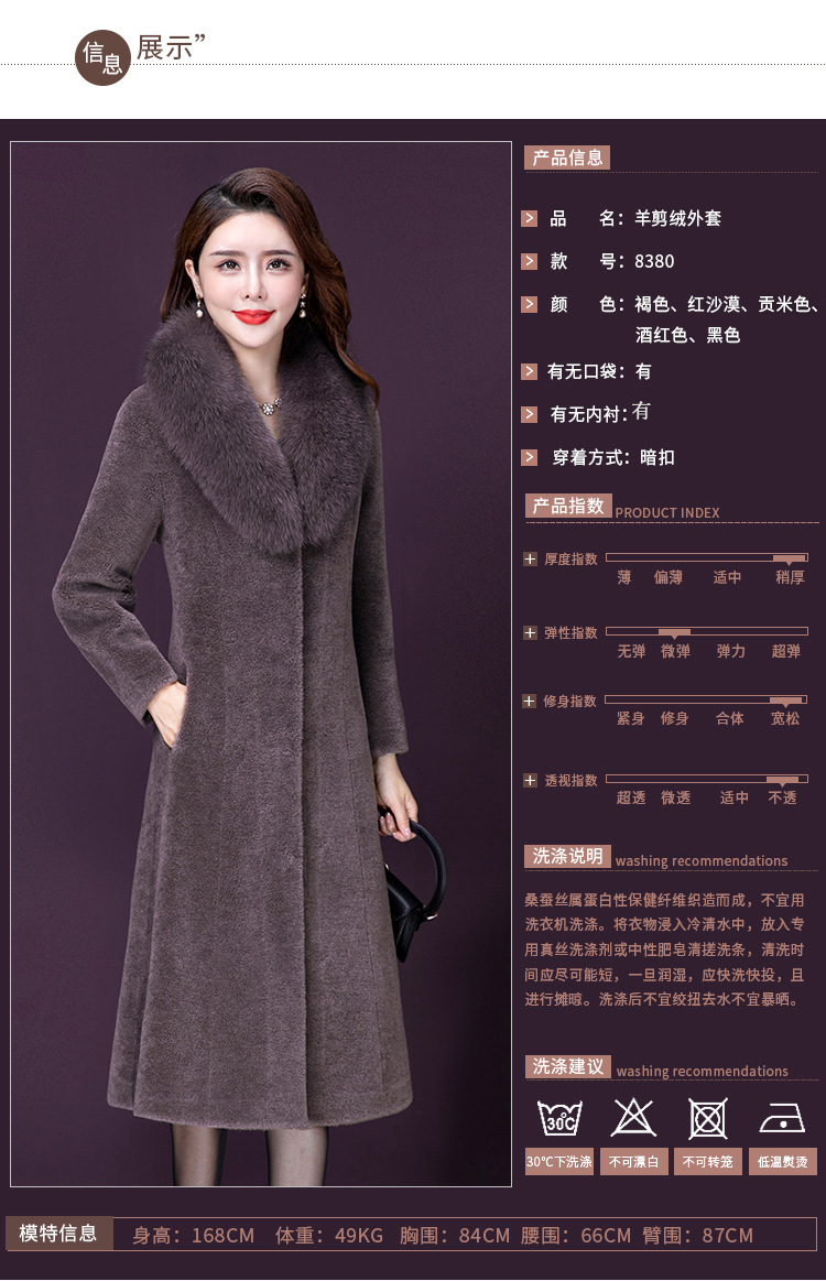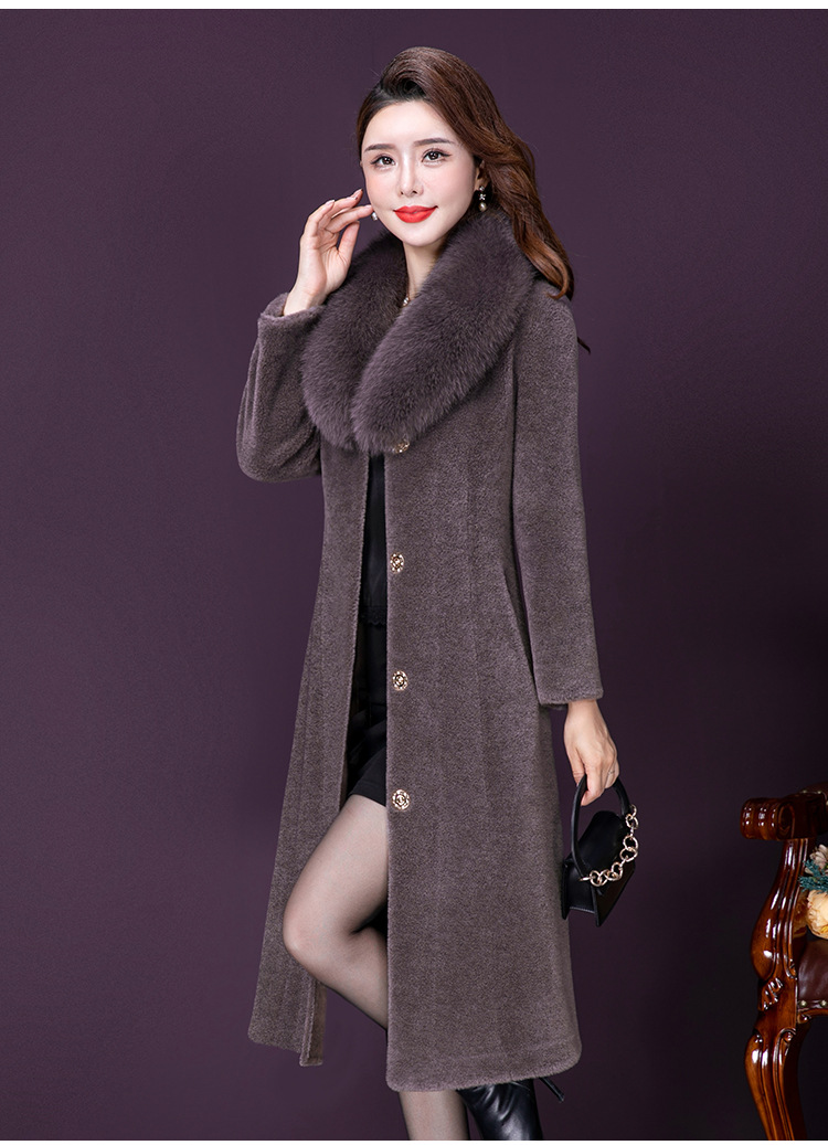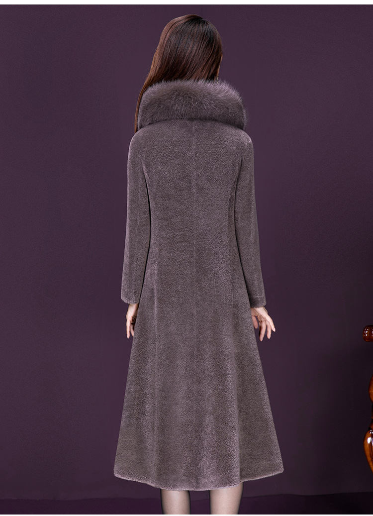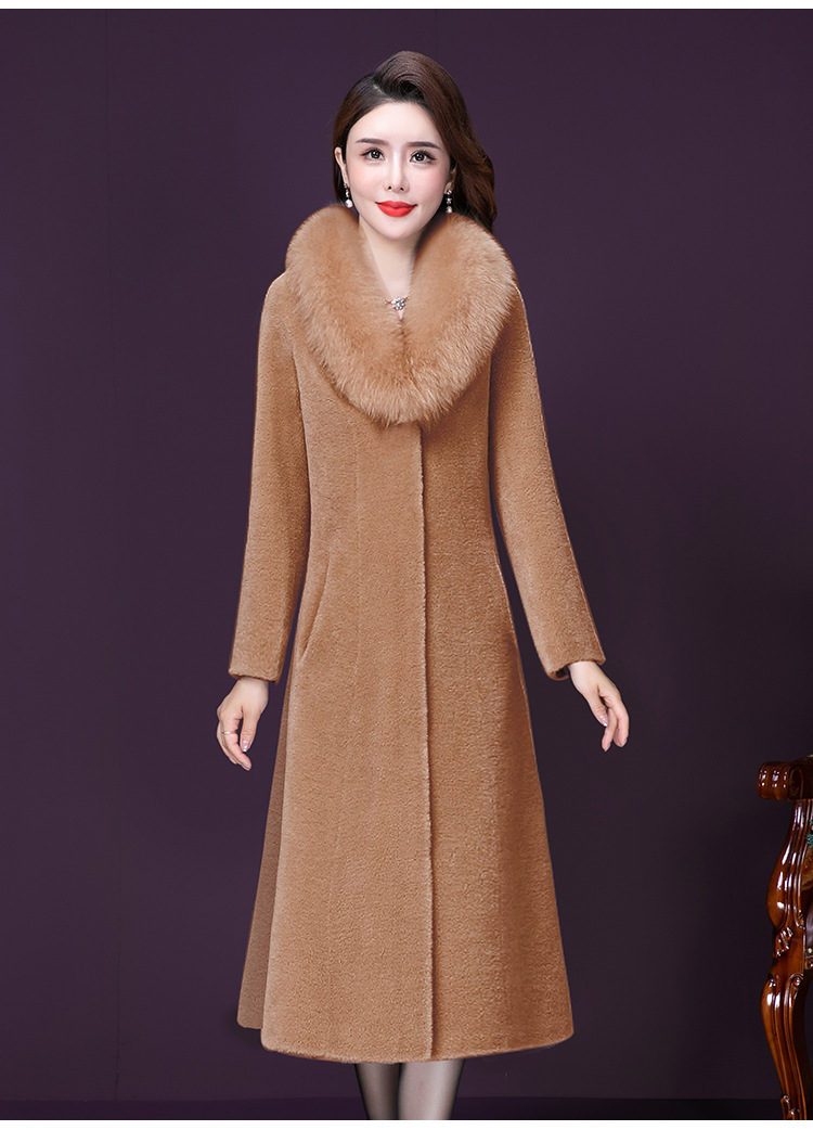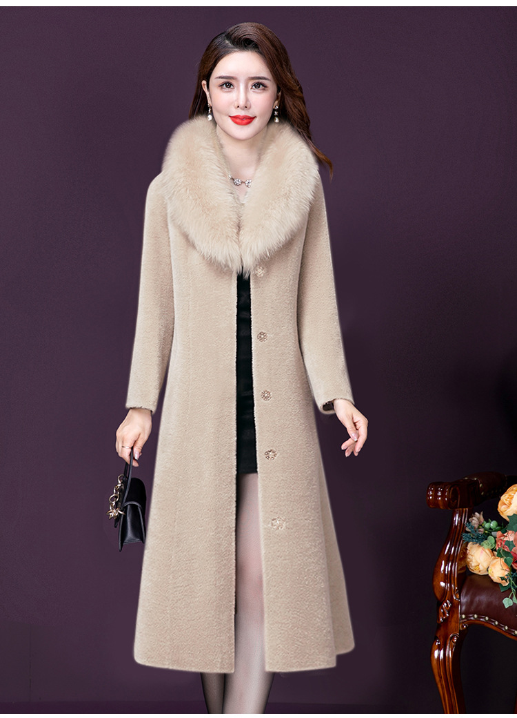 YMR-8380新款时尚优雅气质大毛领中长款羊剪绒皮毛一体大衣外套