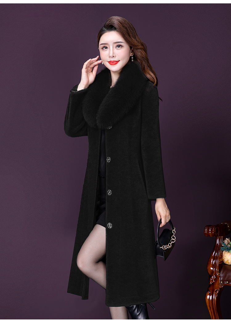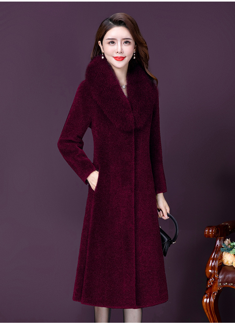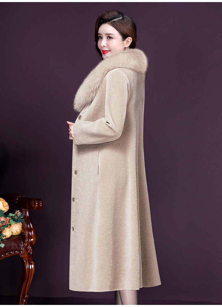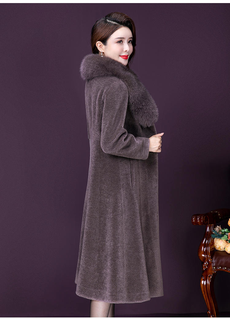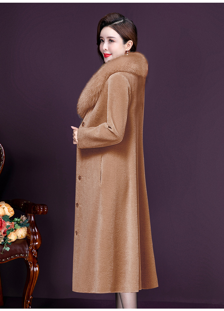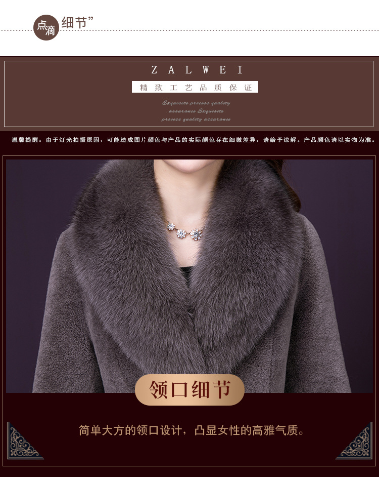 YMR-8380新款时尚优雅气质大毛领中长款羊剪绒皮毛一体大衣外套
