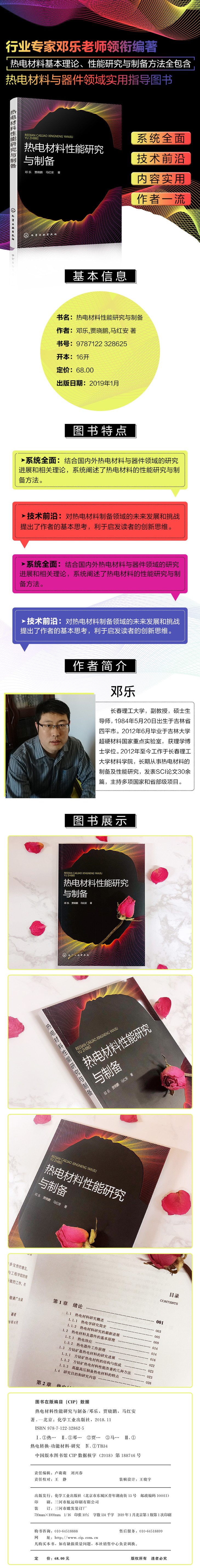本书共9章,主要分为四个部分,即热电材料的发展现状与理论基础(第1章)、热电材料的制备、测试及应用(第2章)、高性能方钴矿热电材料的制备和性能研究(第3~8章)、热电材料研究结论和展望(第9章)。在内容具体安排上,本书第1章介绍了热电材料国内外研究现状和相关的理论基础。第2章从材料制备角度出发,介绍了现今比较成熟高效的制备手段,并在此基础上介绍了材料的性能测试方法以及现阶段相关材料的应用情况。第3~8章介绍了利用高压合成方法制备系列CoSb3基方钴矿热电材料。通过掺杂和填充,结合压力的调控,对该类体系热电材料的热电性能进行了综合优化,并研究了合成压力、掺杂等对材料热电性能的调制规律。