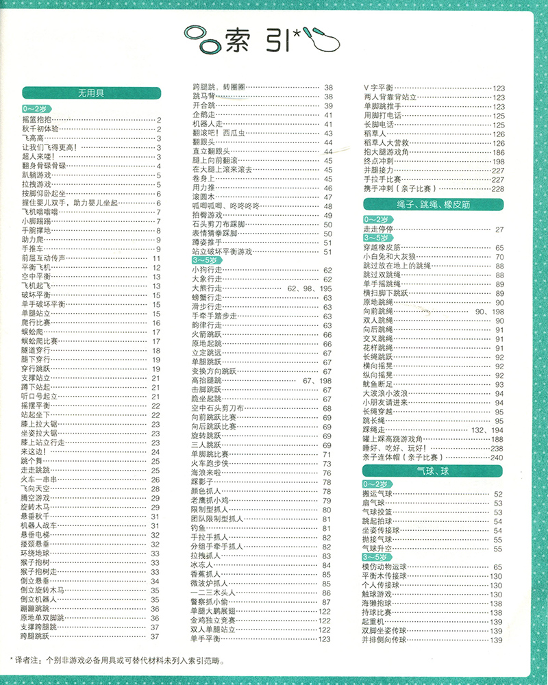游戏是儿童的基本需要,游戏是儿童探索世界的方式。本书倡导玩中学、玩中成长的理念,在概述0~6岁婴幼儿身体、运动发展规律和特点的基础上,按照各年龄段的身心发展需求设计了数百例运动游戏,涵盖移动类、平衡类、操作类、固定设施类、组合类等多个类型。其中既有适合家庭中玩耍的亲子游戏,又有适合在托幼机构中开展的体育游戏。每个游戏案例从游戏目标、所获能力、游戏玩法、游戏要点、小贴士等多个维度入手,配合童趣、精美的示范动作插图及成人指导建议,简洁生动、富有特色。书中穿插介绍了各种运动游戏的理论、小建议及相关发育测评工具,让成人们理解运动游戏的价值,让孩子尽享运动游戏的乐趣!