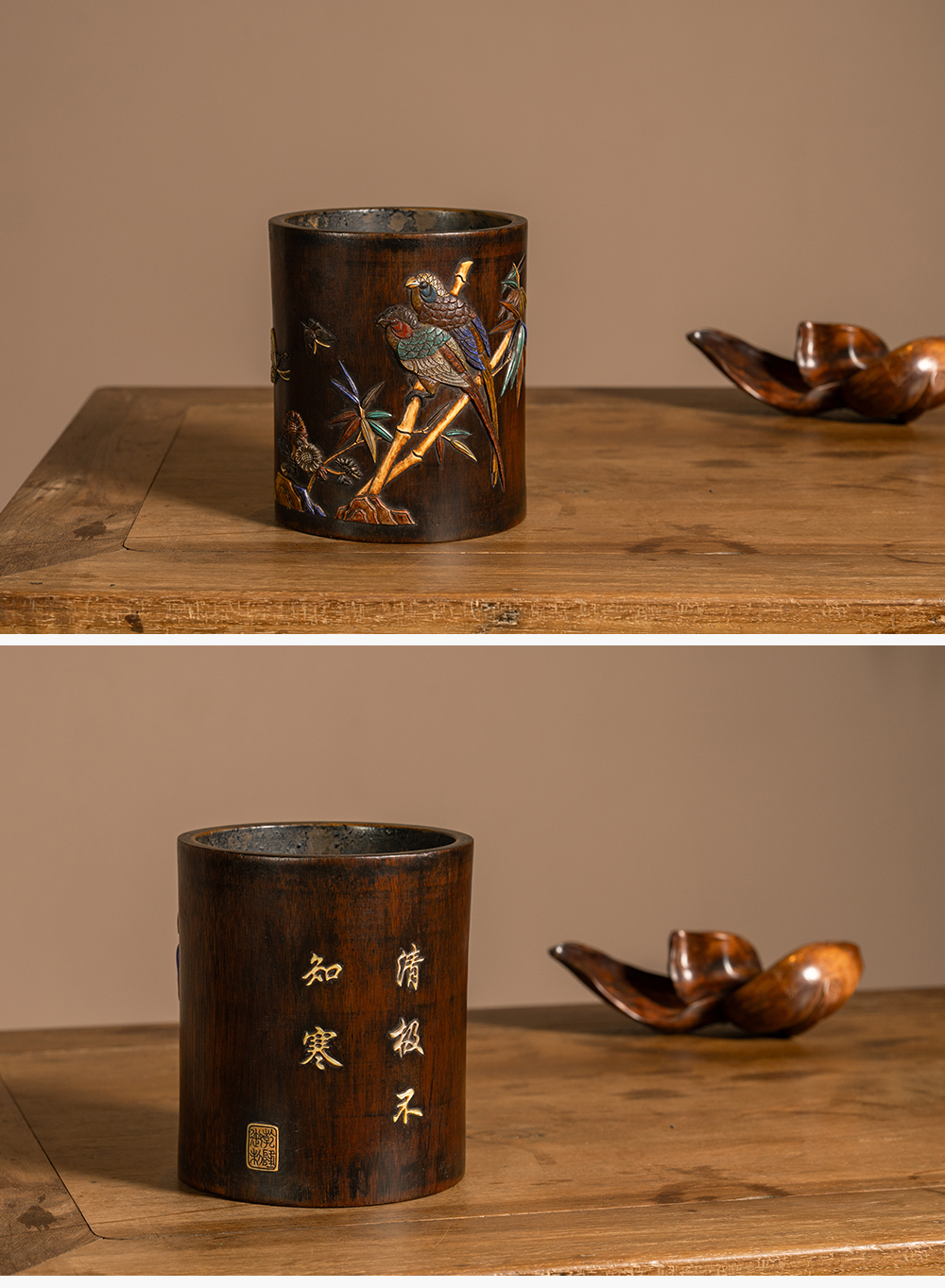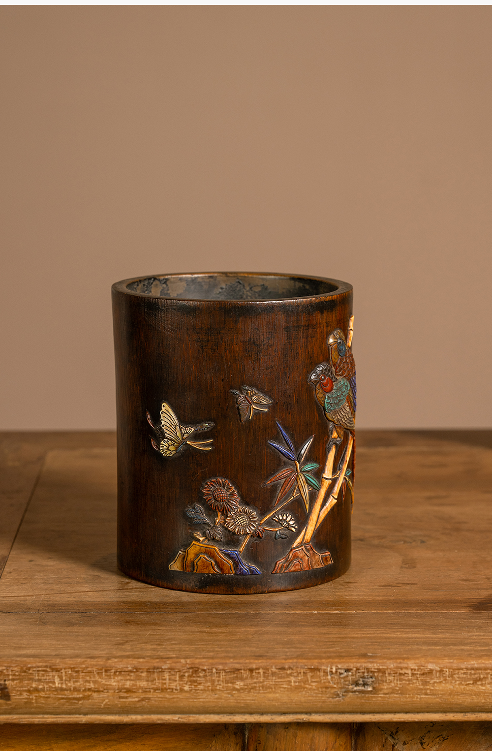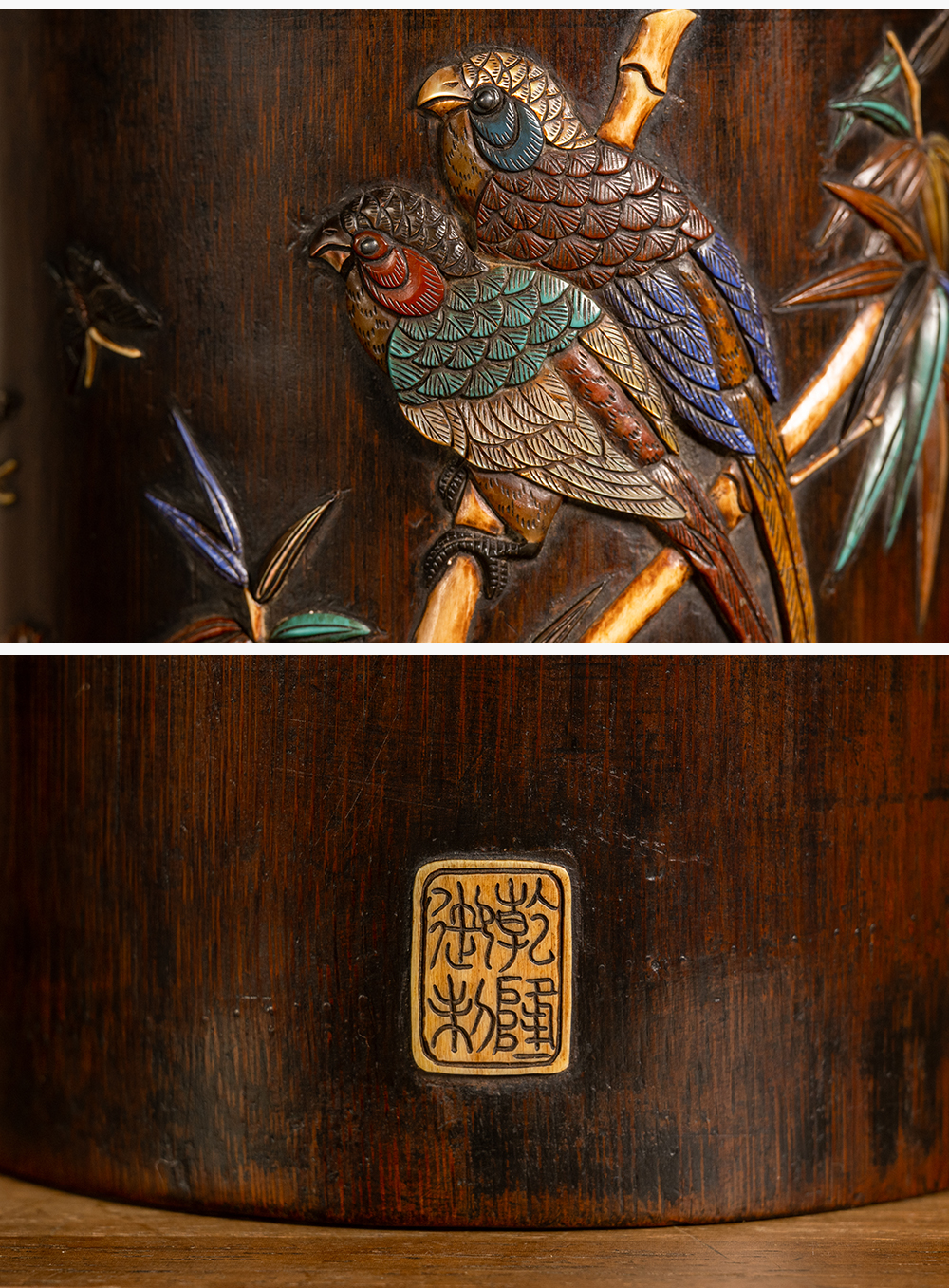清 青金石嵌绿松石莲花盖盒(红木座)