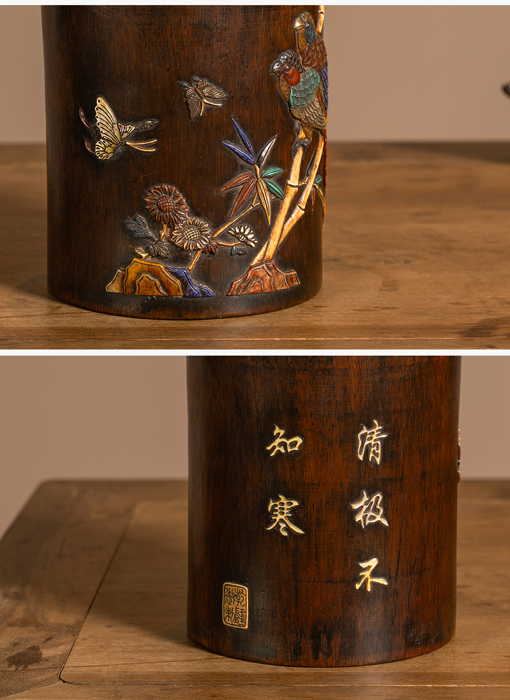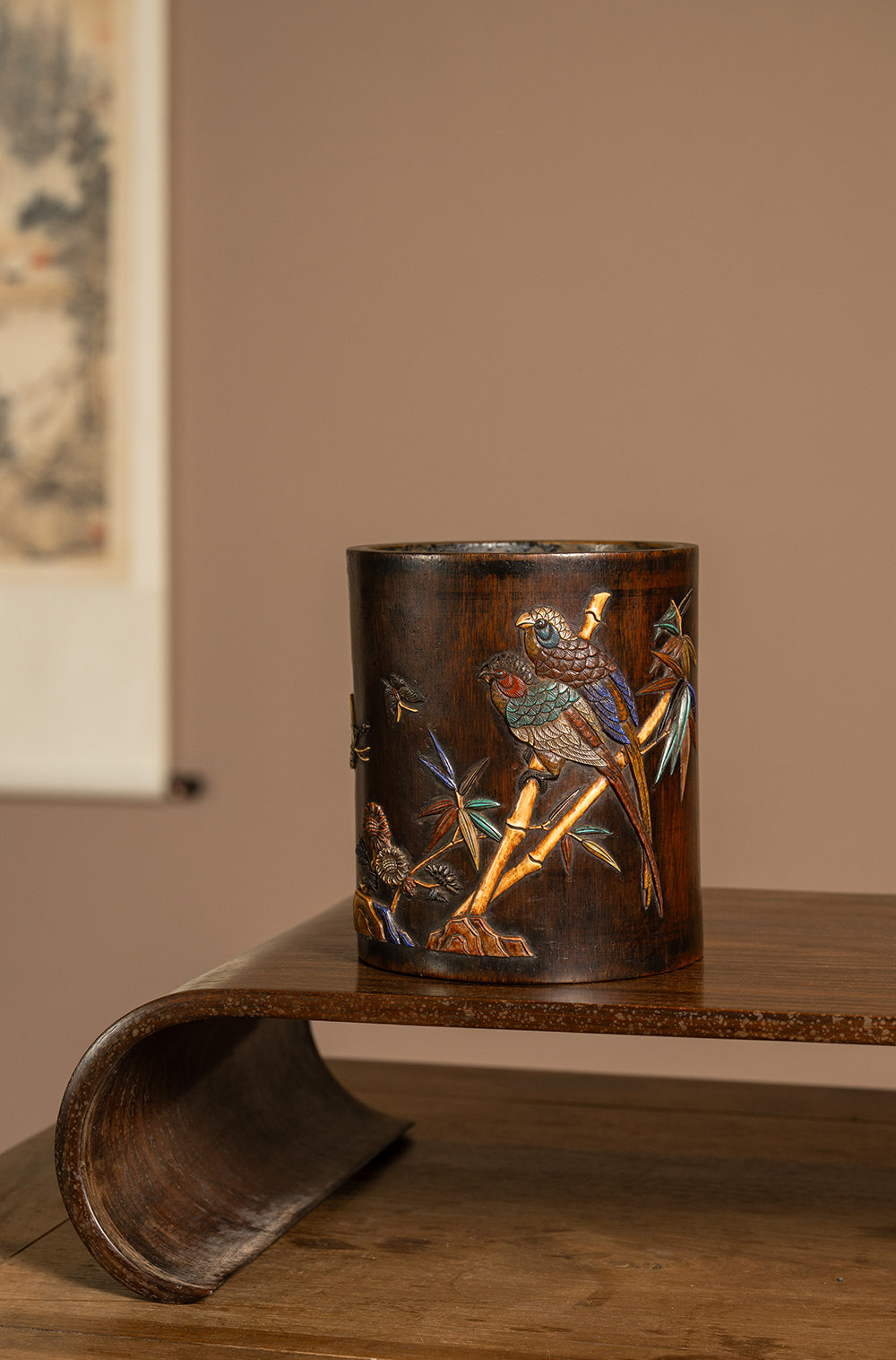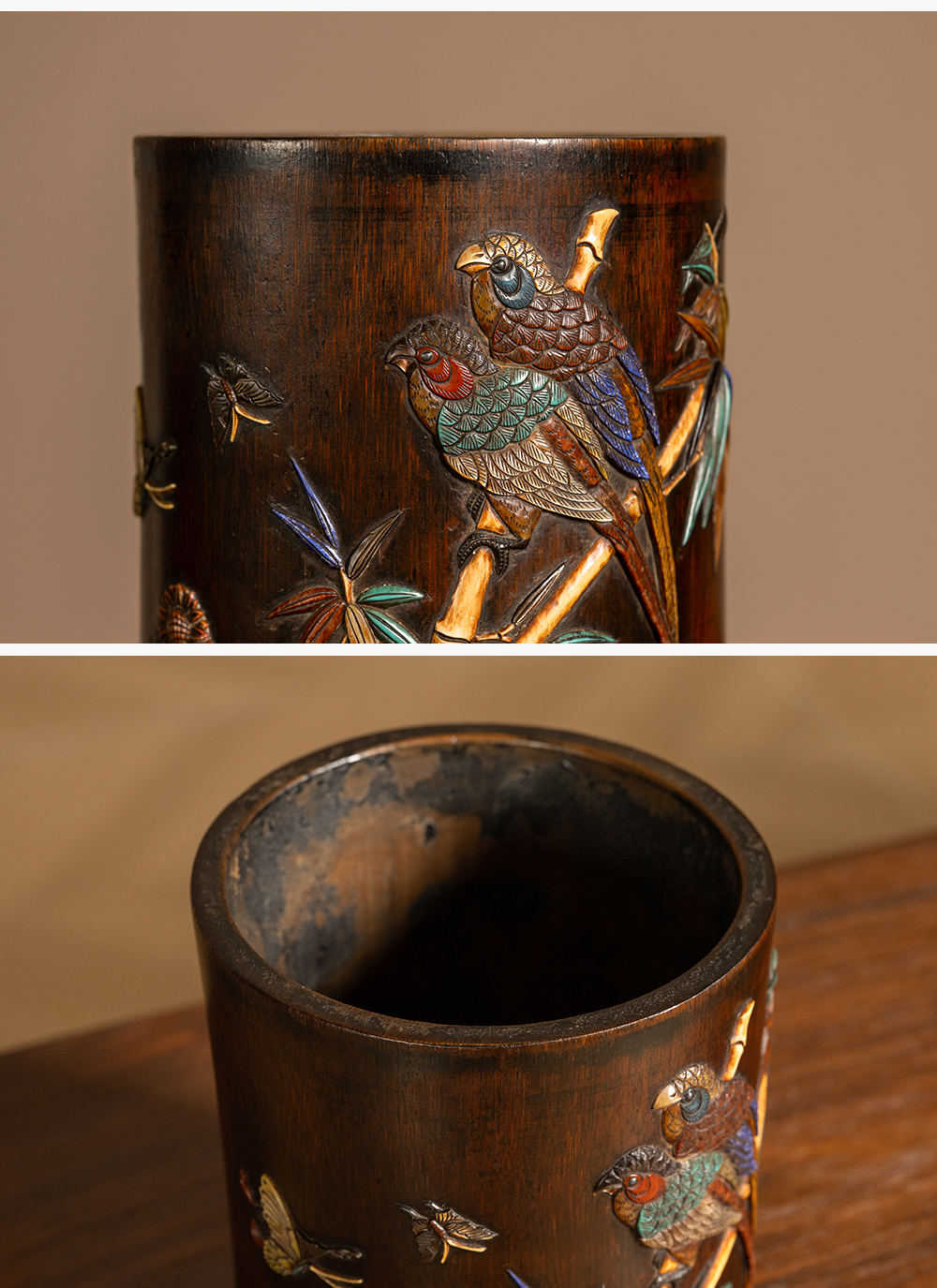 清 青金石嵌绿松石莲花盖盒(红木座)