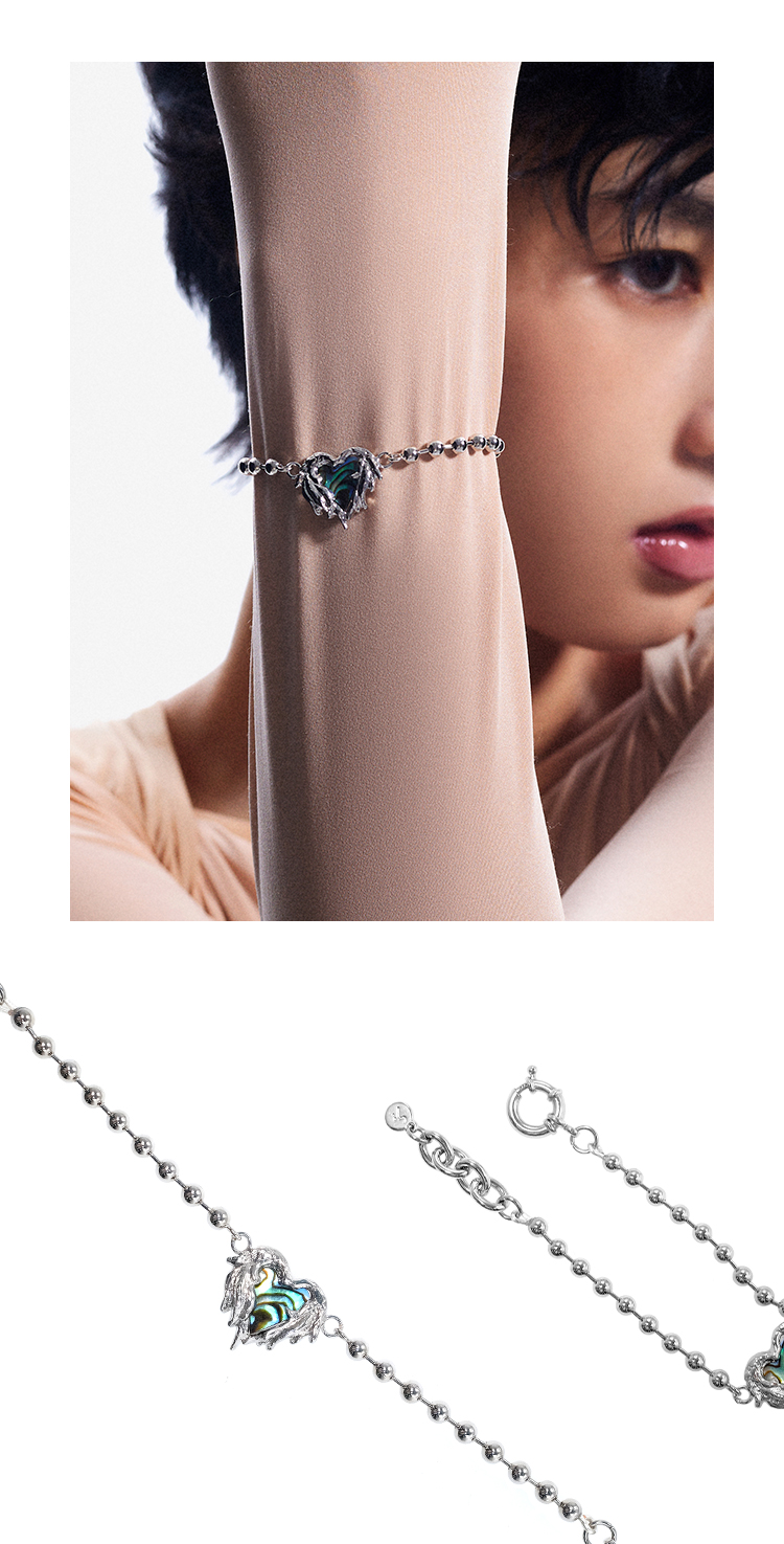 ATELIERSO 22AW天使系列 鲍鱼贝羽毛爱心手链