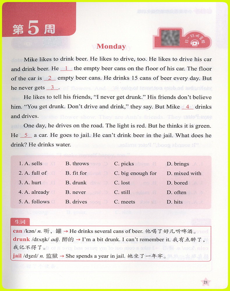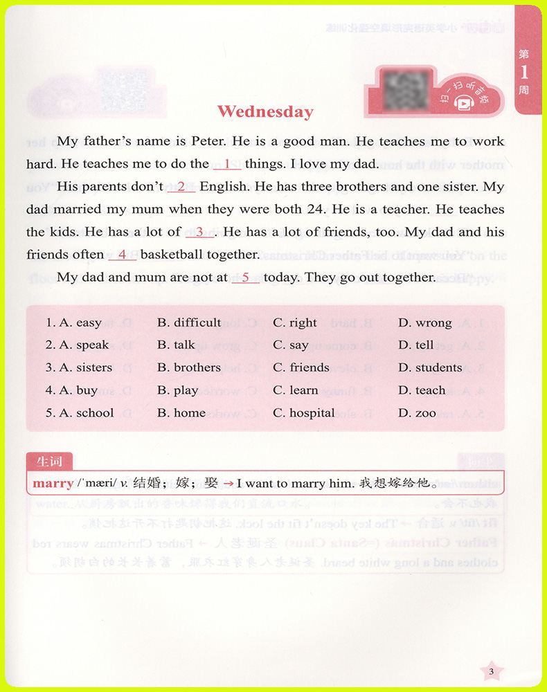 2025周计划小学英语完形填空强化训练三四五六年级热点题型朗读音频全文翻译