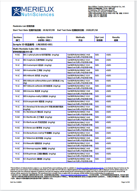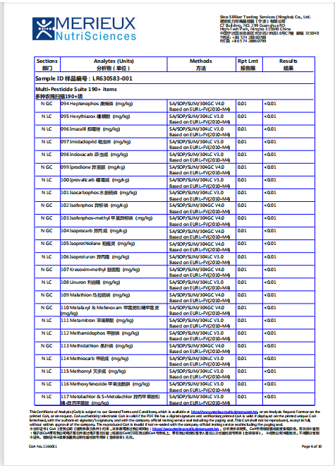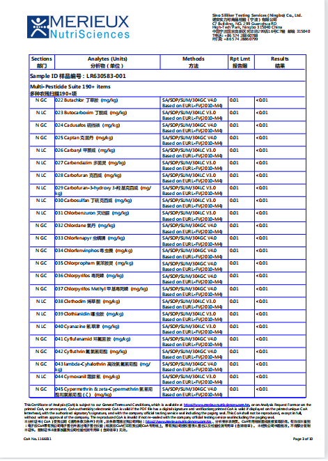191项农残检测(零检出)