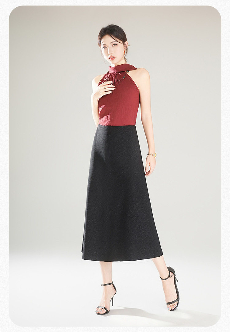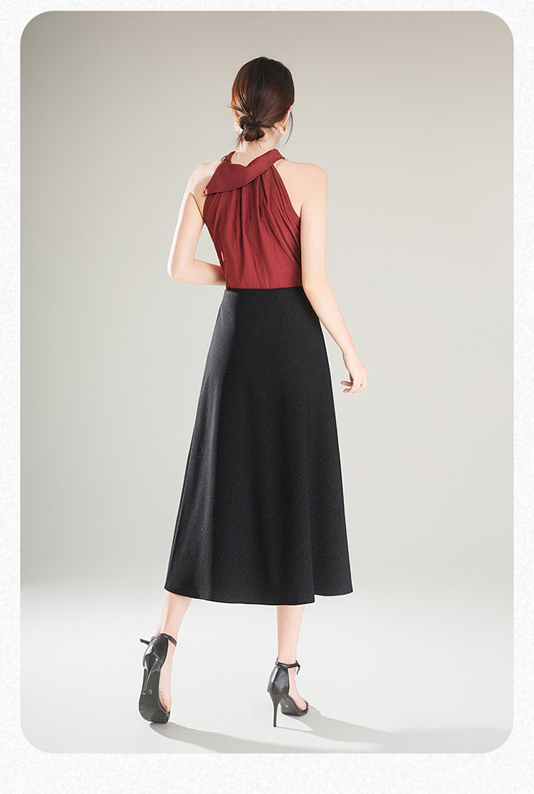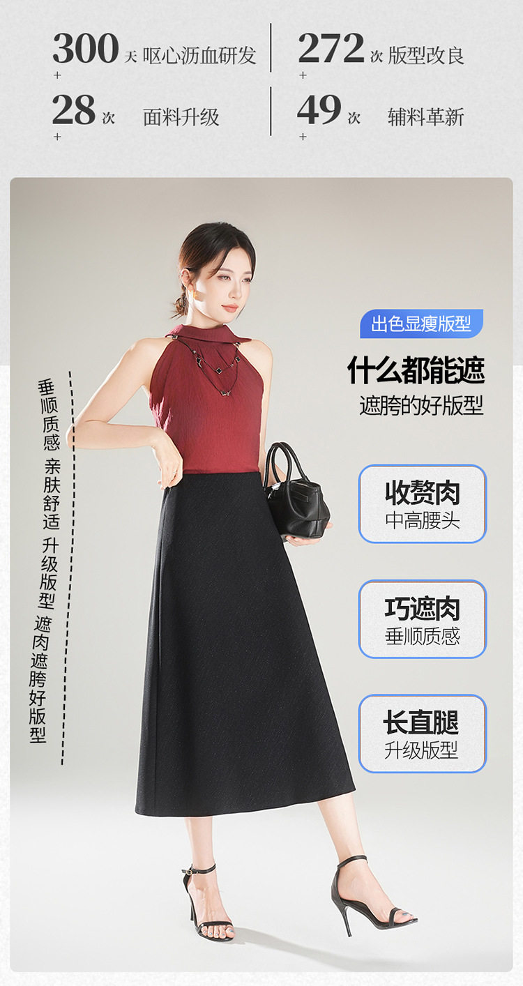 「自」全新升级【铂金会员146/天猫199/差价53】(21411)洛诗琳时尚简约亮丝半身裙女2026夏季新款版高腰通勤A字裙